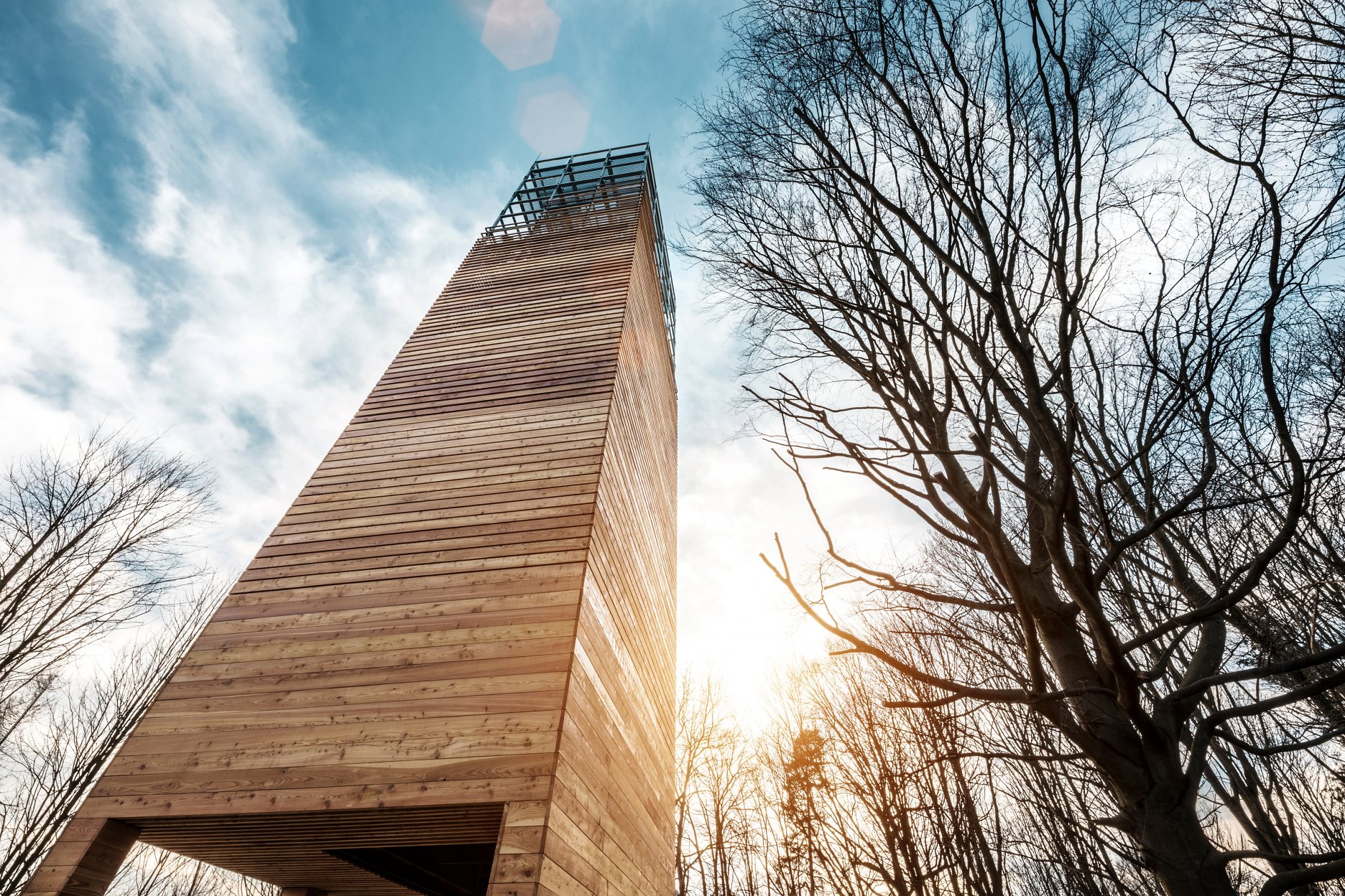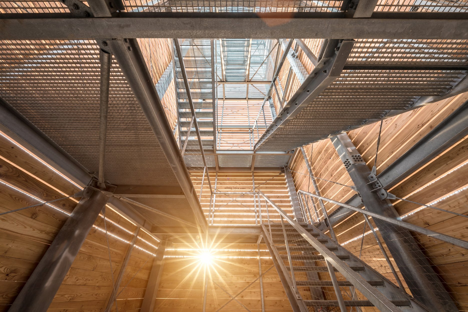 V návrhu sa vzťah medzi prírodou a architektúrou smerom nahor postupne rozvíja. Konštrukcia sa vizuálne rozpúsťa do okolia, čím sa veža stáva symbolickým putom medzi nebom a zemou.