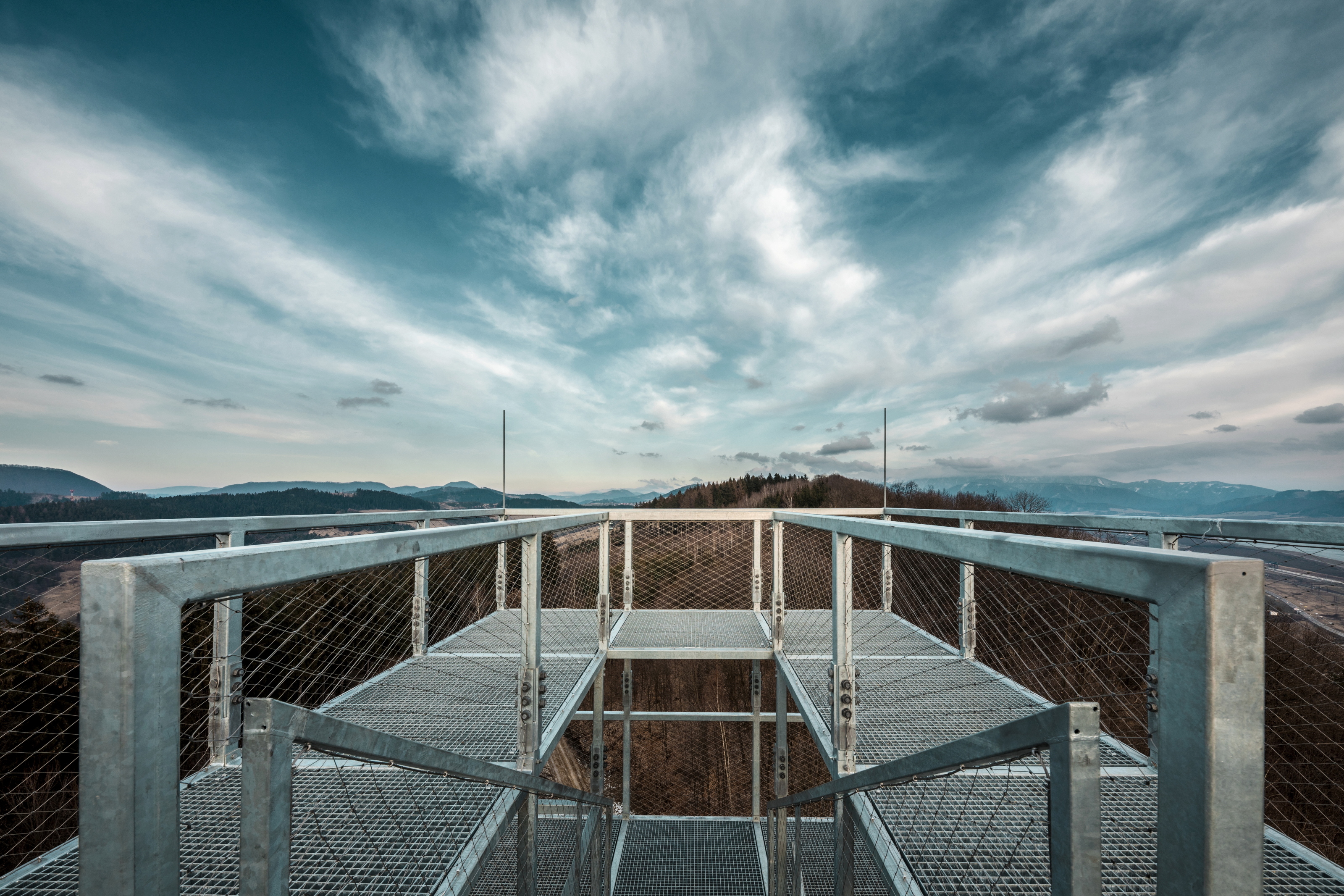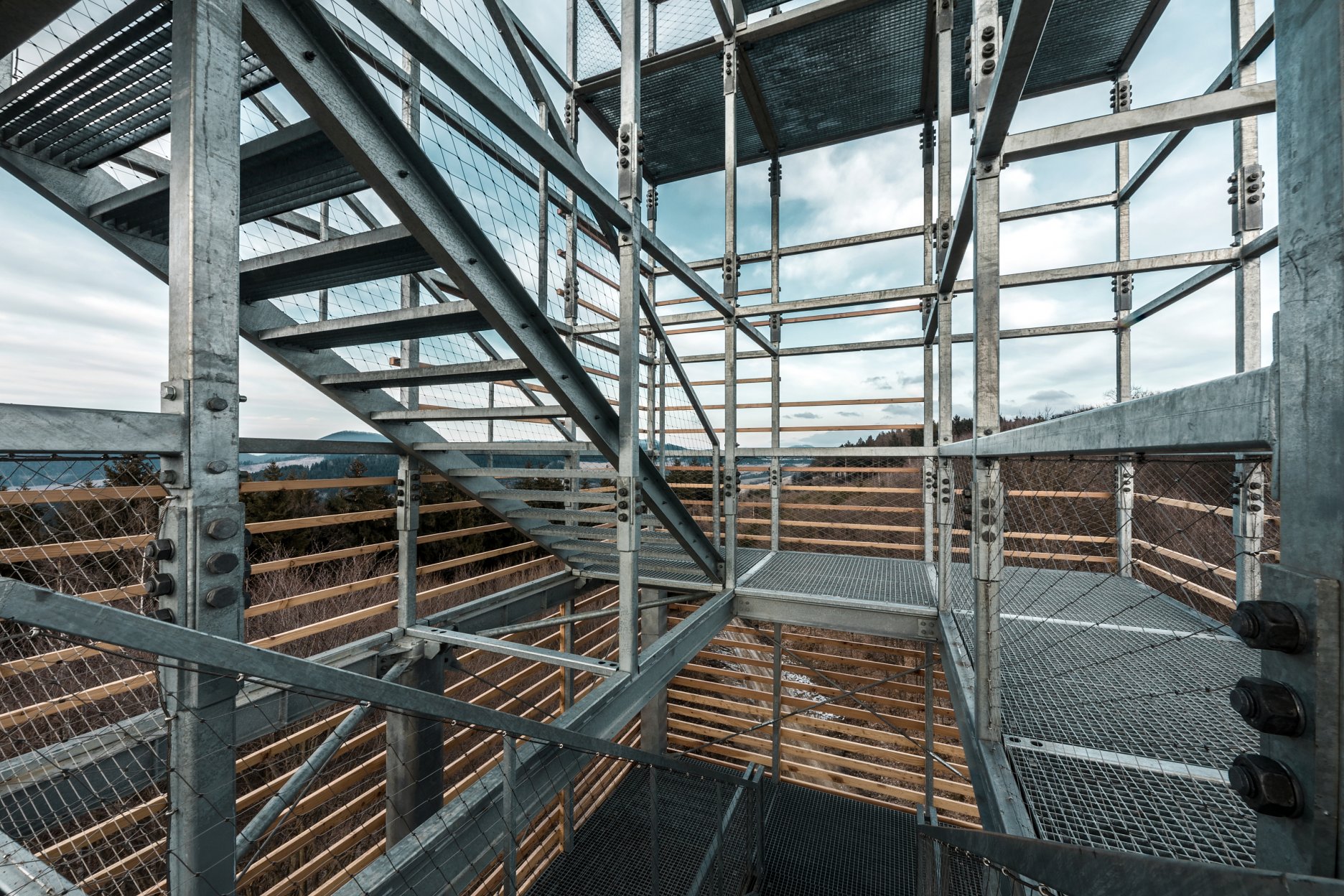 (GN): Vedenie mesta žiadalo, aby sme dávali čo najväčší dôraz na životnosť stavby. S pozinkovanou oceľovou koštrukciou majú už veľmi dobré skúsenosti. V roku 2016 realizovali turistickú lávku a prístrešok na kopci Straník (Ateliér 2021). Nosná koštrukcia tejto stavby je tiež z ocele.