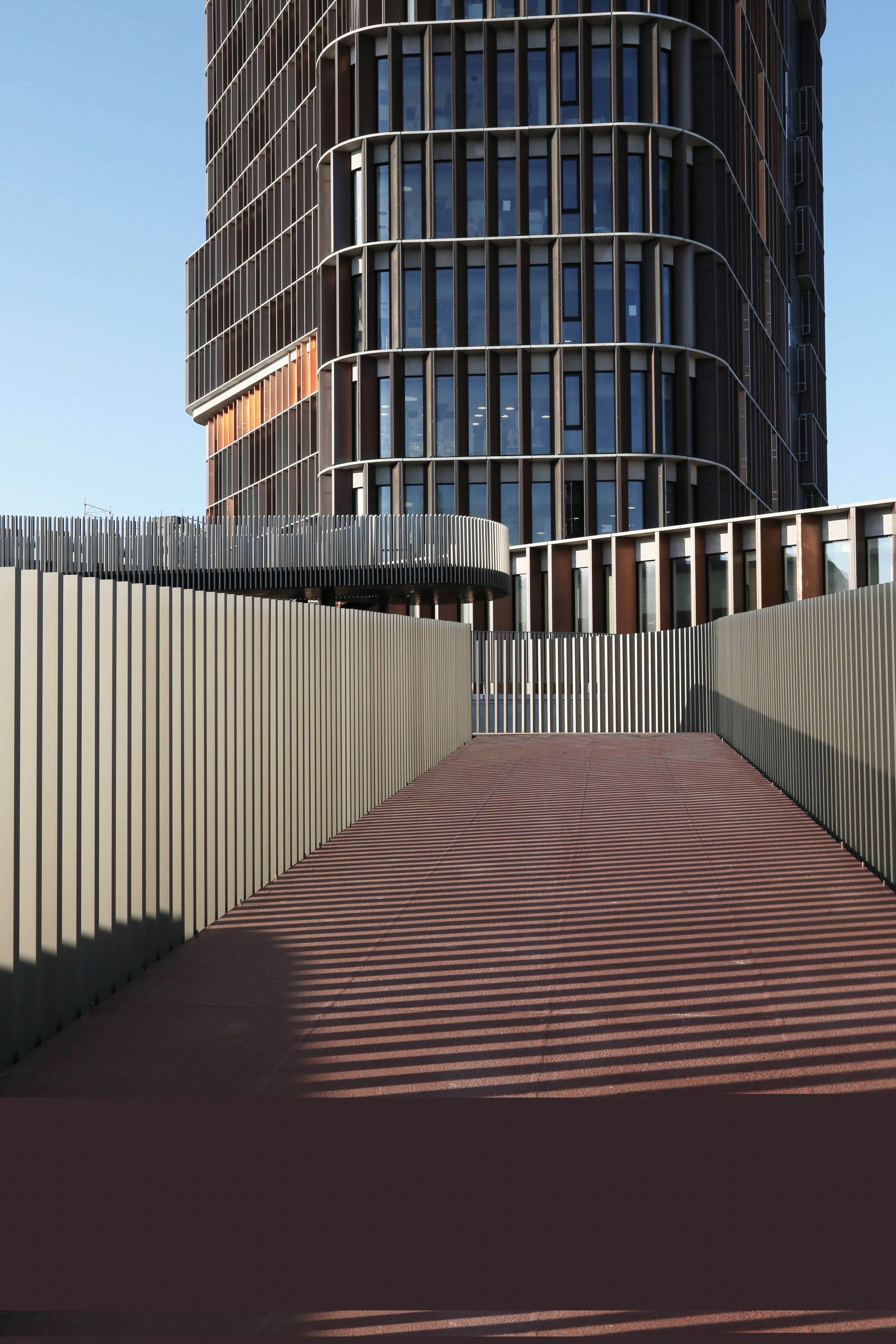 Tretina vertikálnych lamiel je pohyblivých, čo fasáde umožňuje neustále meniť mieru zatienenia. Skladanie lamiel je riadené v závislosti na polohe slnka. Každá sekcia sa po aktivácii rozdelí na dve polovice, pričom jedna zostane statická, zatiaľ čo druhá polovica sa posunie pred sklo a poskytne tak účinnú ochranu pred prienikom tepla do laboratórií.