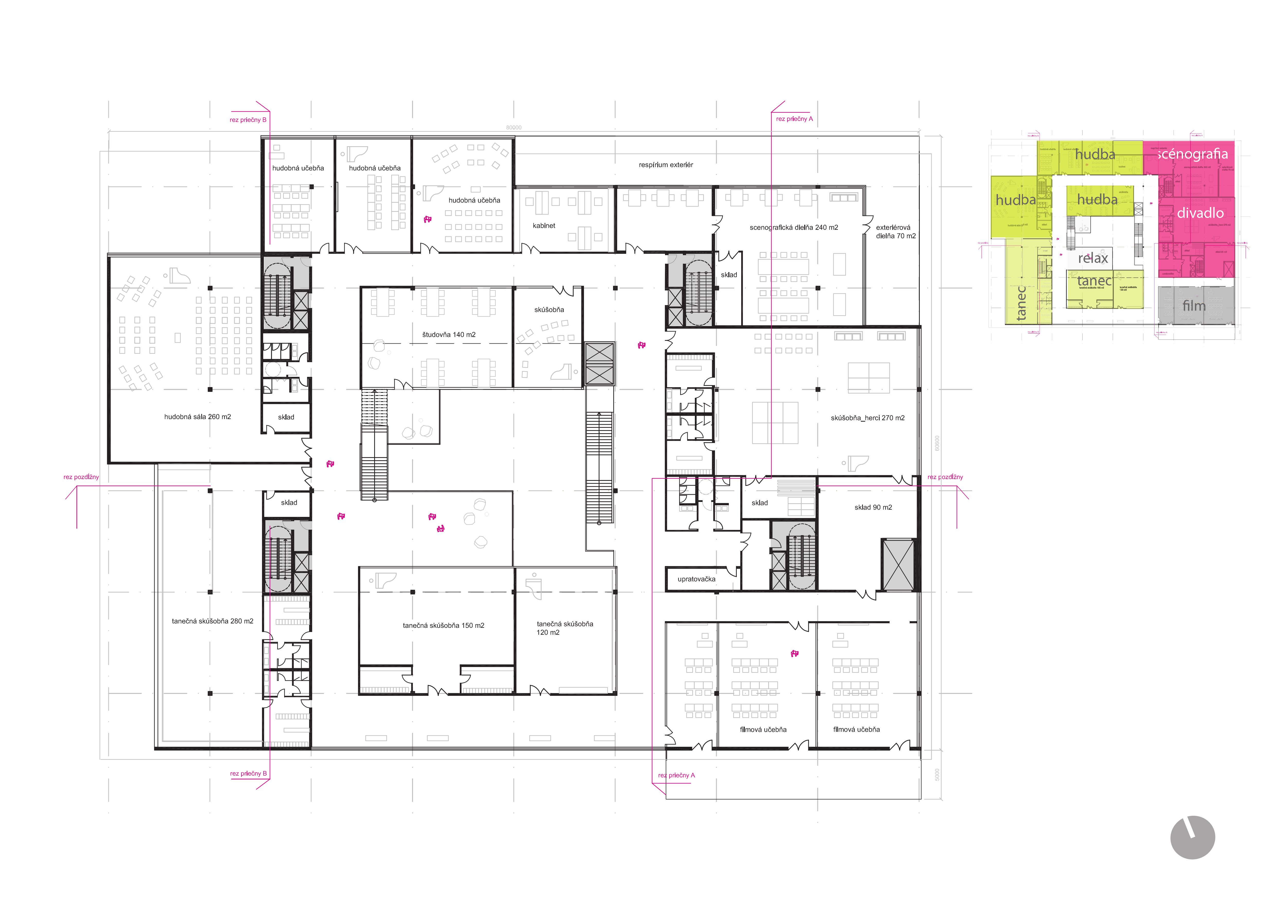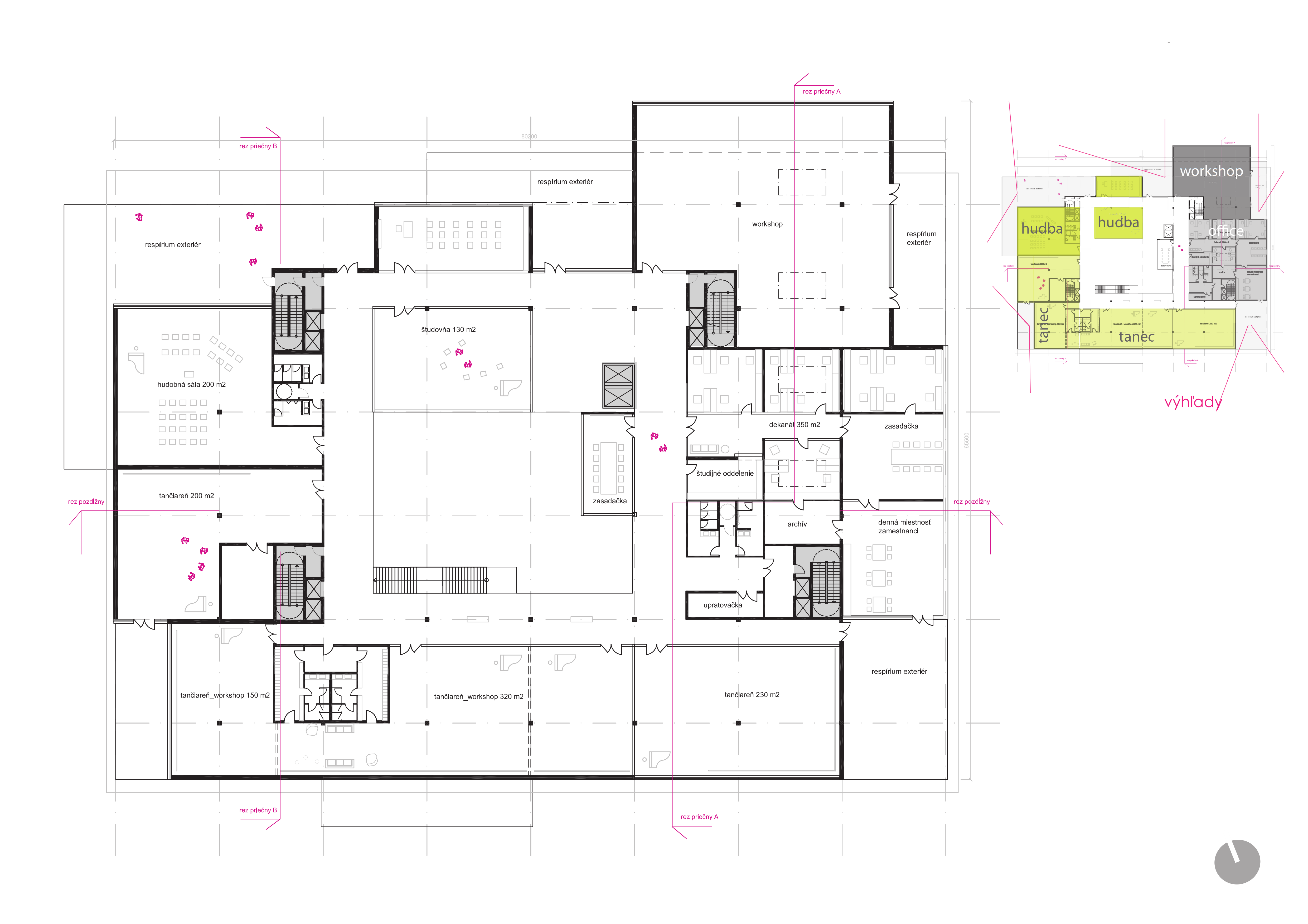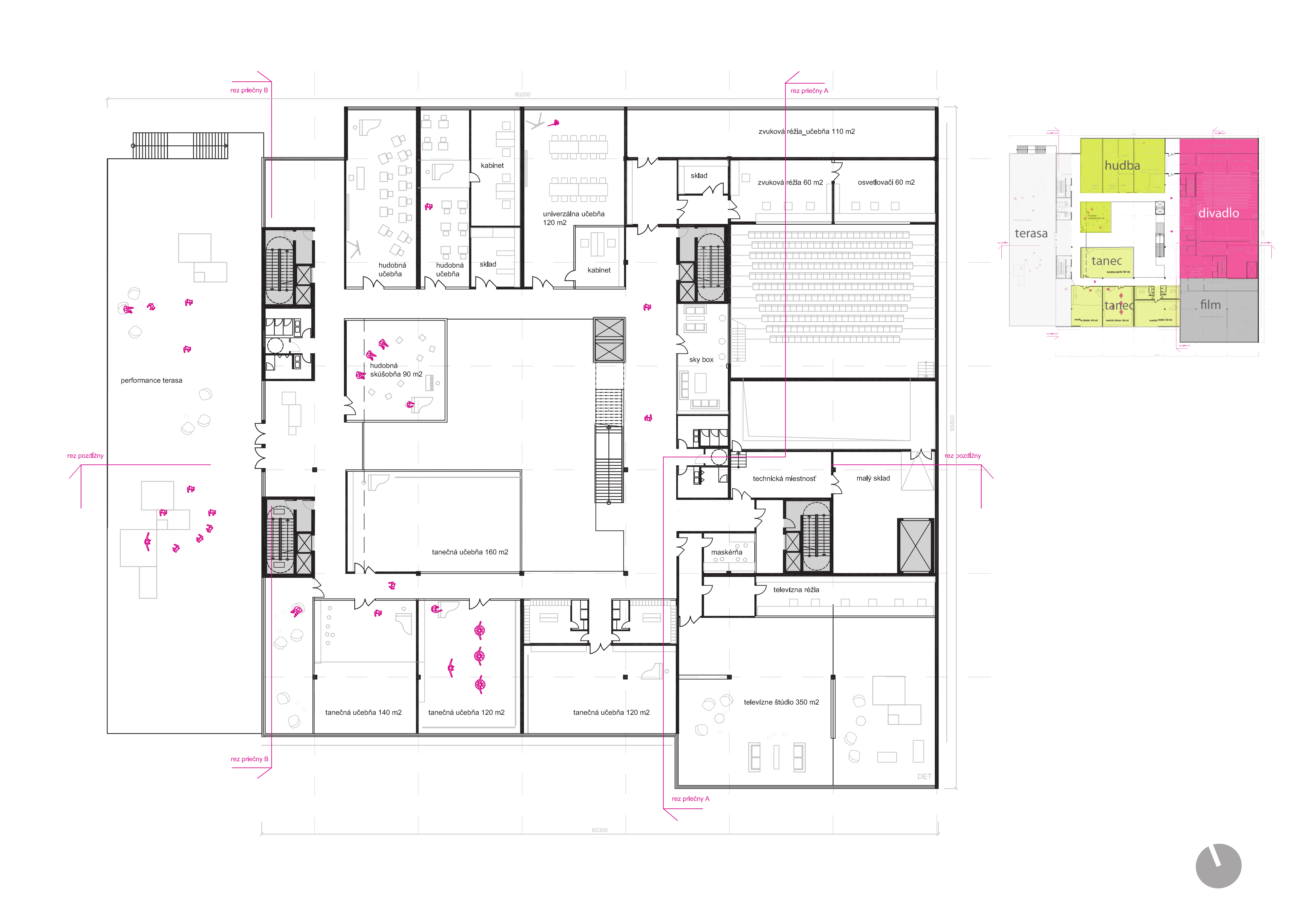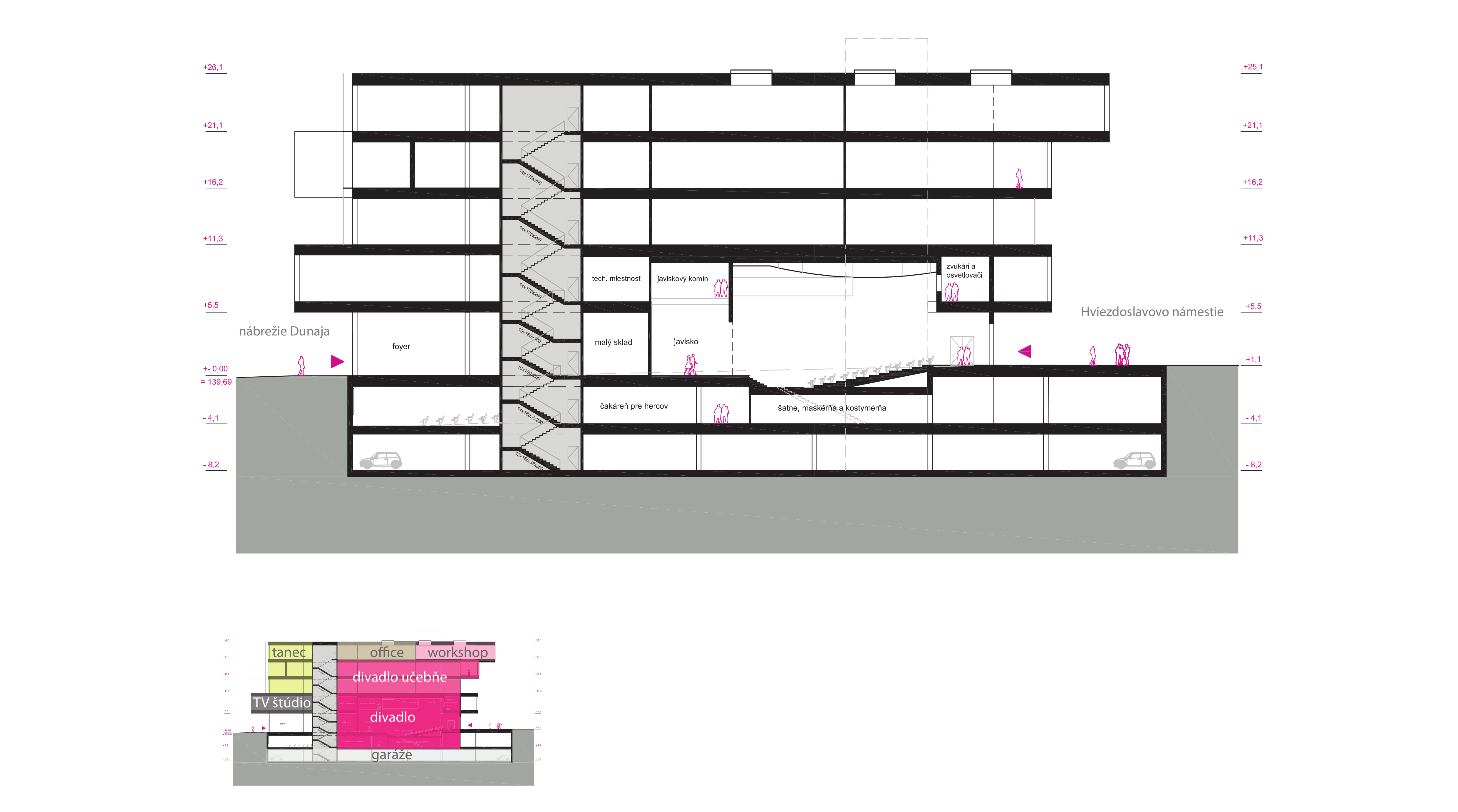 Vysoká škola muzických umení, nie je, len škola. Je to komplexný polyfunkčný kultúrny objekt, ktorom sa spájajú hudba, tanec, divadlo a film v jeden celok. V tomto objekte sa spájajú tri fakulty Fakulta hudby a tanca, Divadelná fakulta a Fakulta televíznej a filmovej produkcie. Tieto odbory sú spolu úzko späté preto je výhodné aby sídlili spolu v jednom objekte. Každý odbor si vyžaduje špecifické priestory, mnohé z nich však môžu zdielať spoločne, napríklad tanečné sály, univerzálne sály alebo televízne štúdio. Tento objekt však nebude čisto introvertný, zámer je vytvoriť aj introvertný priestor pre študentov, ale aj priestory komunikujúce s okolím a verejnosťou. Nachádzame sa na kultúrnej osi, ktorá vedie od už zničeného Parku kultúry a oddychu, takže kultúrna funkcia tu má svoje opodstatnenie. Budova by mala byť v parteri prechodná aj pre verejnosť, v parteri z Hviezdoslavovho námestia je aj vstup do veľkej univerzálnej sály s kapacitou 380miest a vstup do malej sály od nábrežia. Toto miesto by sa mohlo stať kultúrnym centrom ,,mladej,, umeleckej scény, pre všetkých.