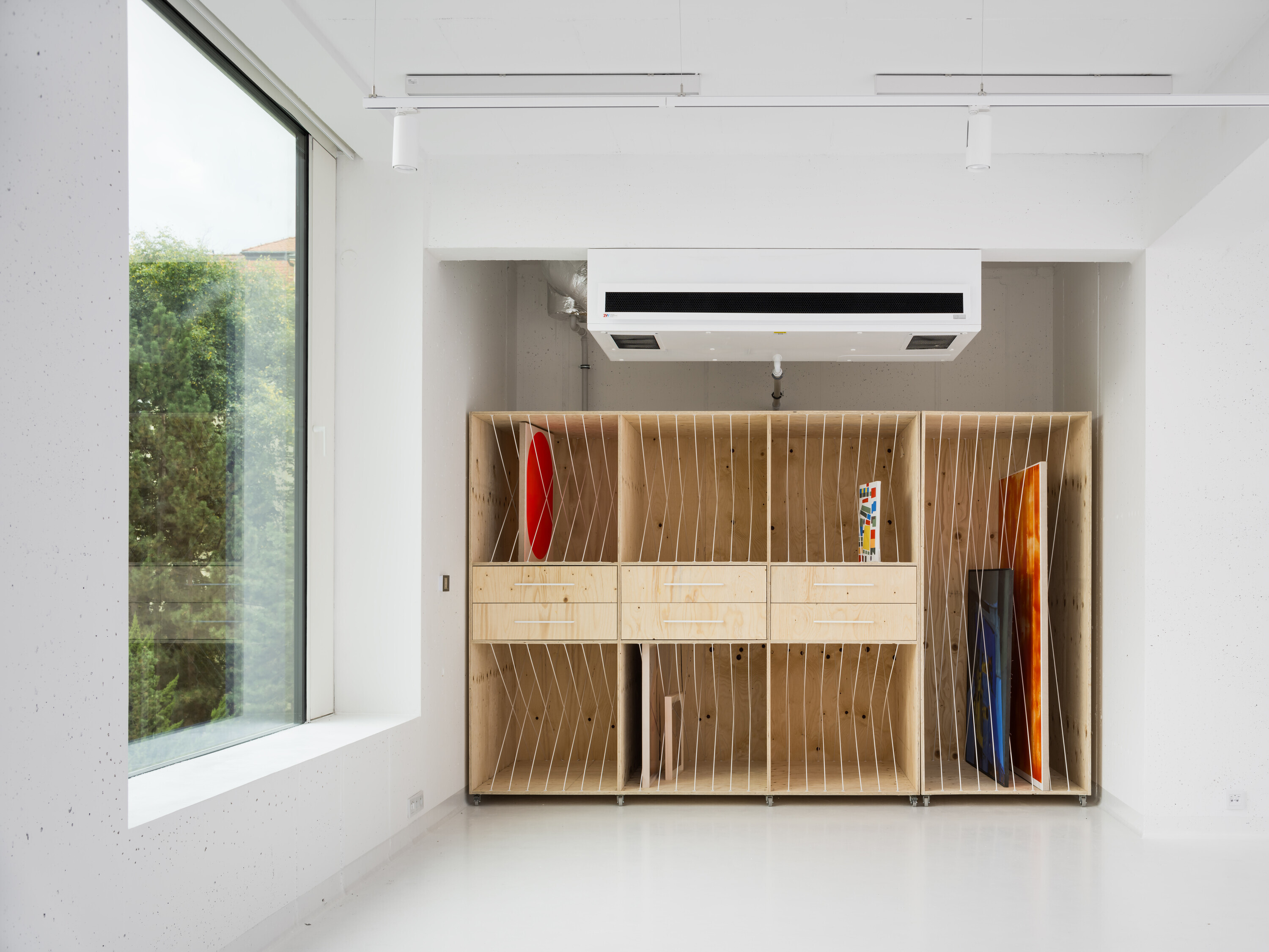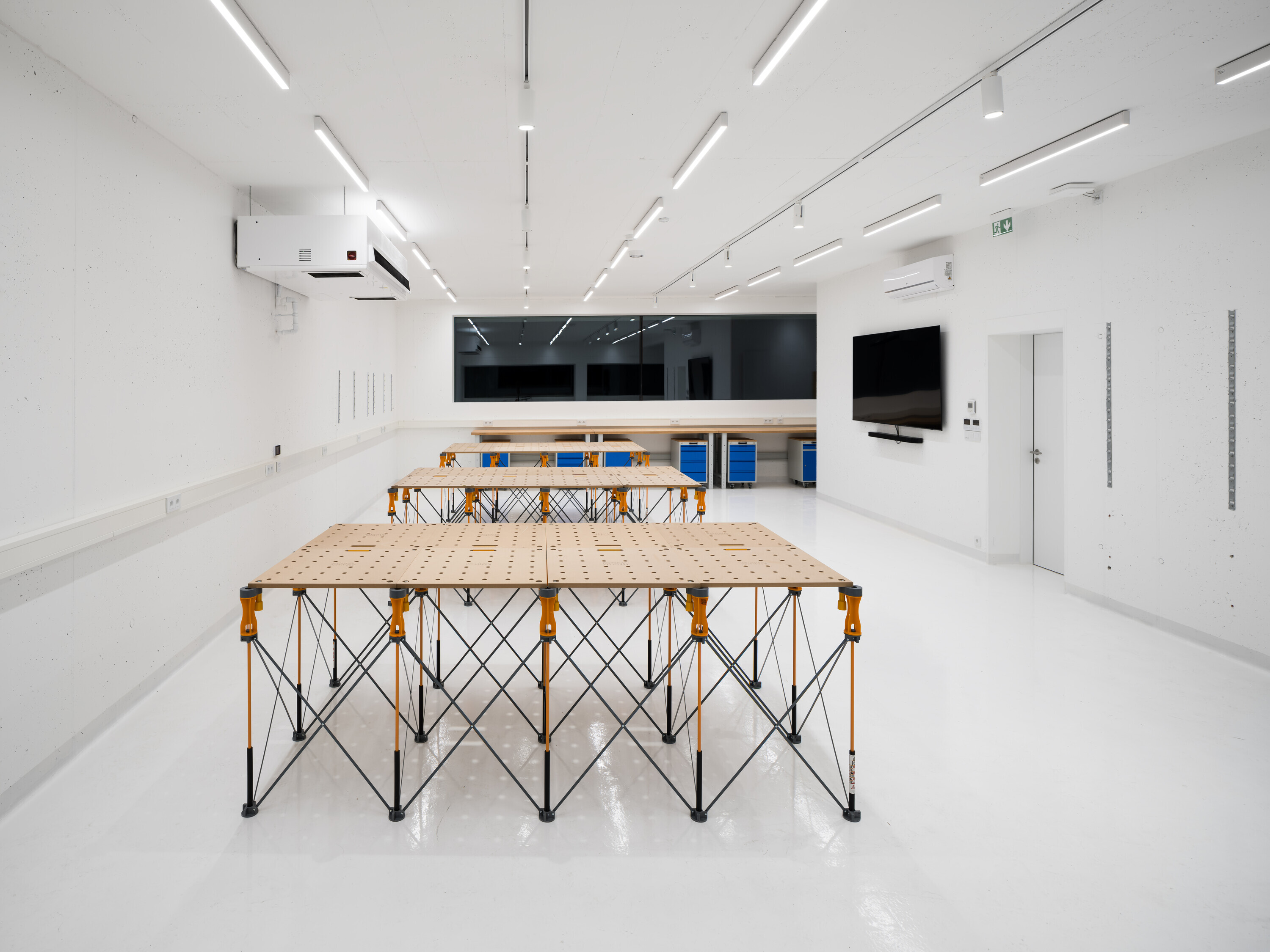 V objekte nájdeme špecializované dielne pre techniky ako rezanie, vŕtanie a zváranie, ateliér maľby s dôrazom na kvalitu prirodzeného osvetlenia, či ateliér multimédií na najvyššom poschodí, ktorý môže byť kompletne zatemnený. Posledný spomínaný priestor je navrhnutý ako white/black box s umelým osvetlením, čo umožňuje jeho variabilné využitie pre rôzne typy multimediálnych projektov.