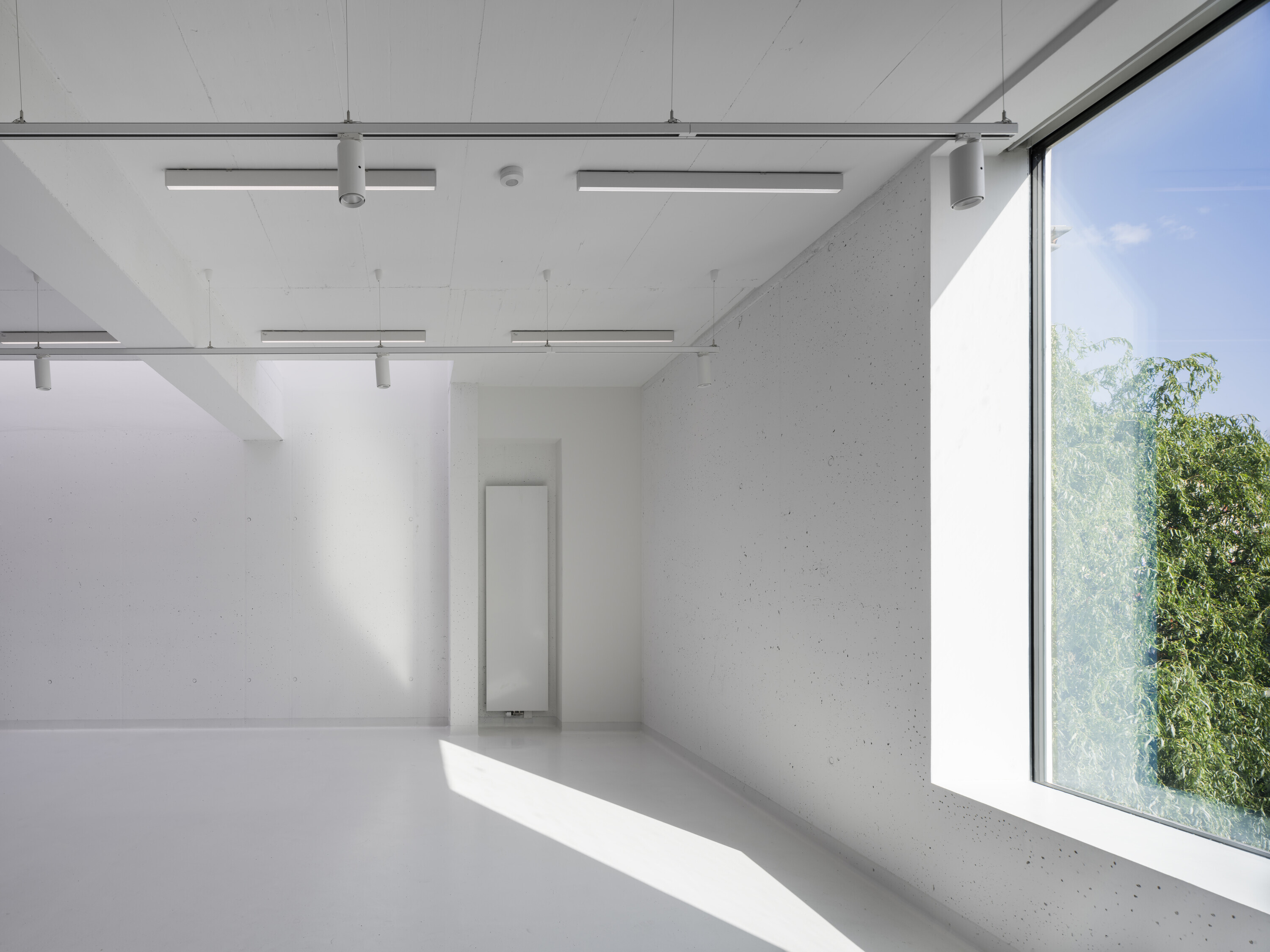 Architektonická kompozícia hmoty prístavby vyniká aj vďaka čistým plochám bielej brúsenej omietky a veľkoplošného bezrámového zasklenia, ktoré predstavujú jediné prvky vymykajúce sa bežnej stavebnej produkcii. Vzhľadom na rozpočtové obmedzenia bola zvyšná časť stavby realizovaná s dôrazom na utilitárny prístup. Vnútorné betónové plochy zjednocuje biela výmaľba a epoxidové podlahy. Technická infraštruktúra je napojená na existujúce rozvody, čo optimalizuje náklady a zaisťuje funkčnú integráciu s okolitými systémami.