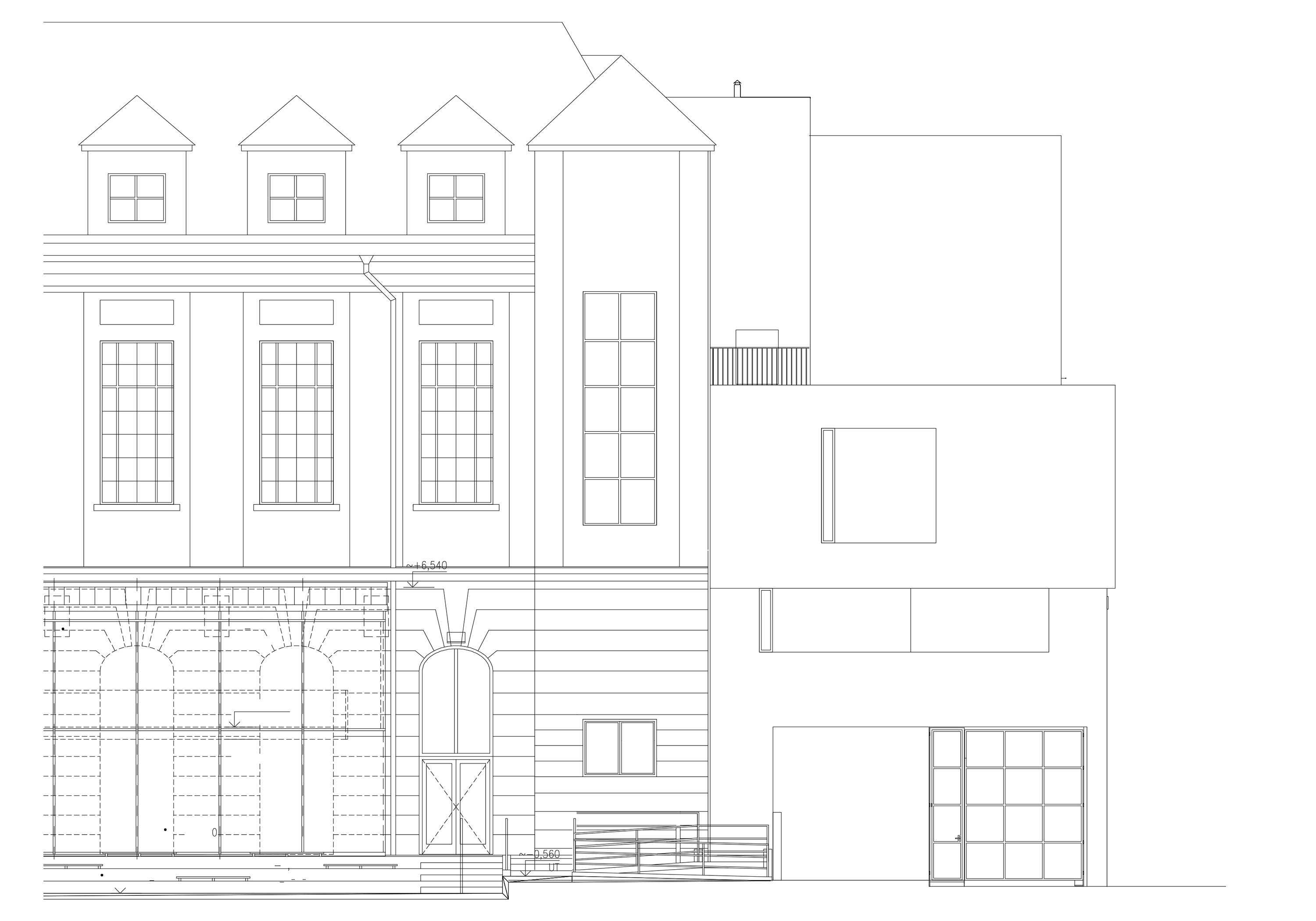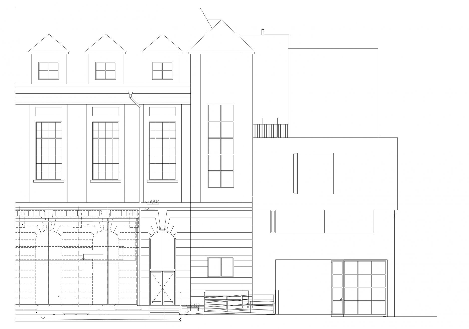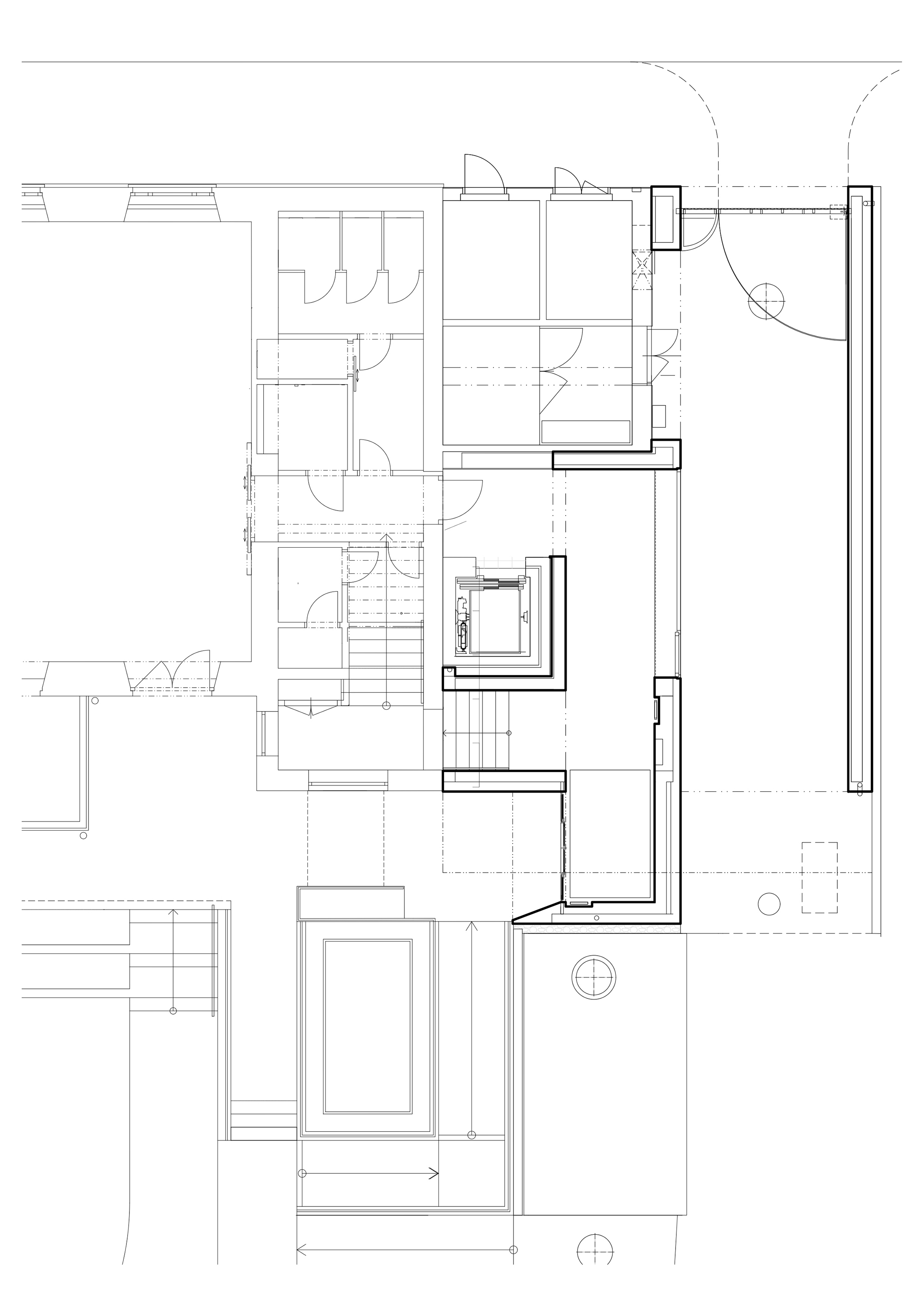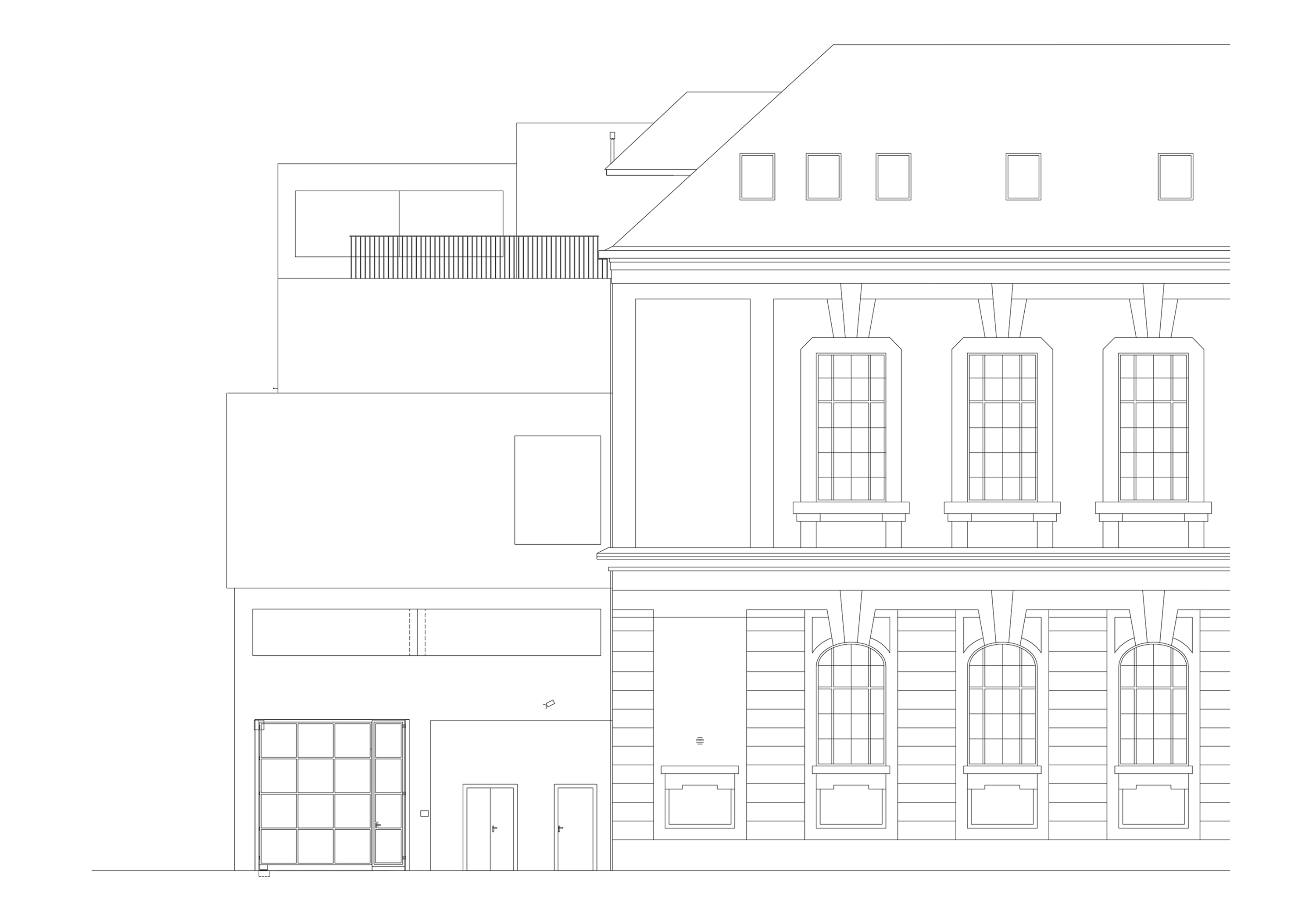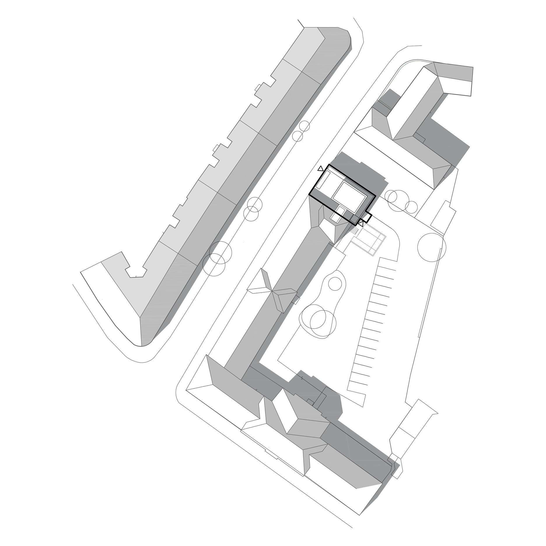 Na mieste stavby sa pôvodne nachádzali tri objekty z rôznych období: pavilón bývalej strelnice katedry brannej výchovy, trafostanica a prístavba s výťahom, ktorý obsluhoval susednú historickú budovu. Pri návrhu novej prístavby museli architekti zohľadniť nielen požiadavky zadávateľa, ale aj celý rad limitujúcich faktorov.