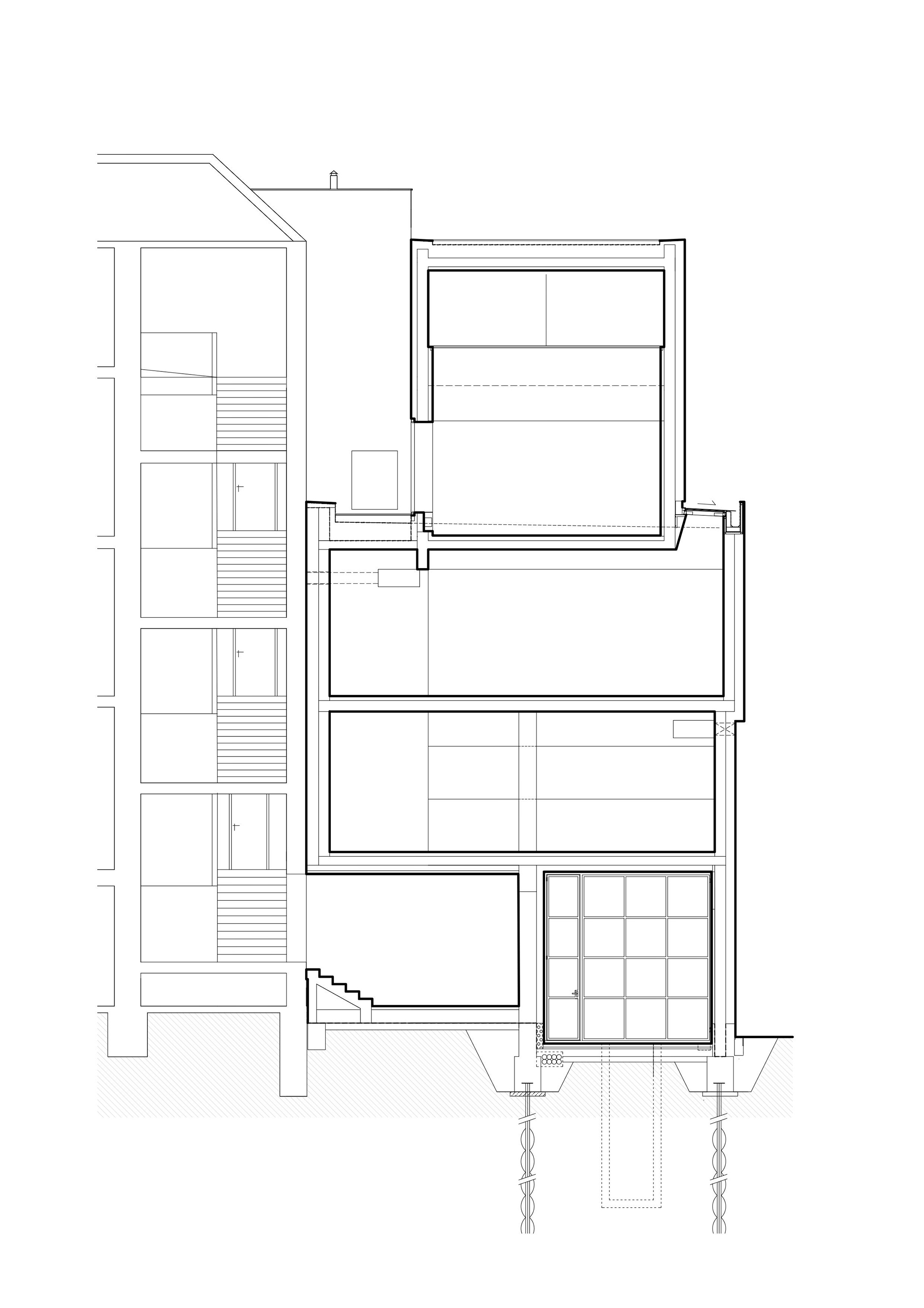 Ďalším dôležitým faktorom bolo zachovanie hygienických štandardov okolitých stavieb a zaistenie dostatočného presvetlenia hlbokých dispozícií ateliérov, ktoré nemohli mať bočné okná. Horizontálny posun jednotlivých podlaží umožnil vytvorenie strešných svetlíkov, ktoré privádzajú denné svetlo do vnútorných priestorov. Finálnu hmotu do značnej miery formovala svetlotechnická štúdia, zohľadňujúca vplyv na preslnenie bytov v susednej historickej budove.
