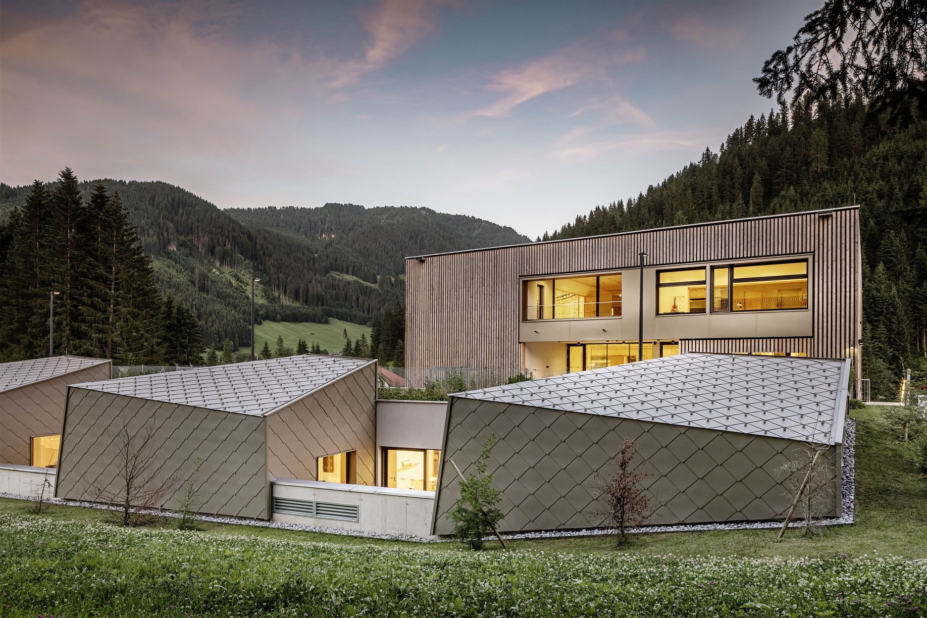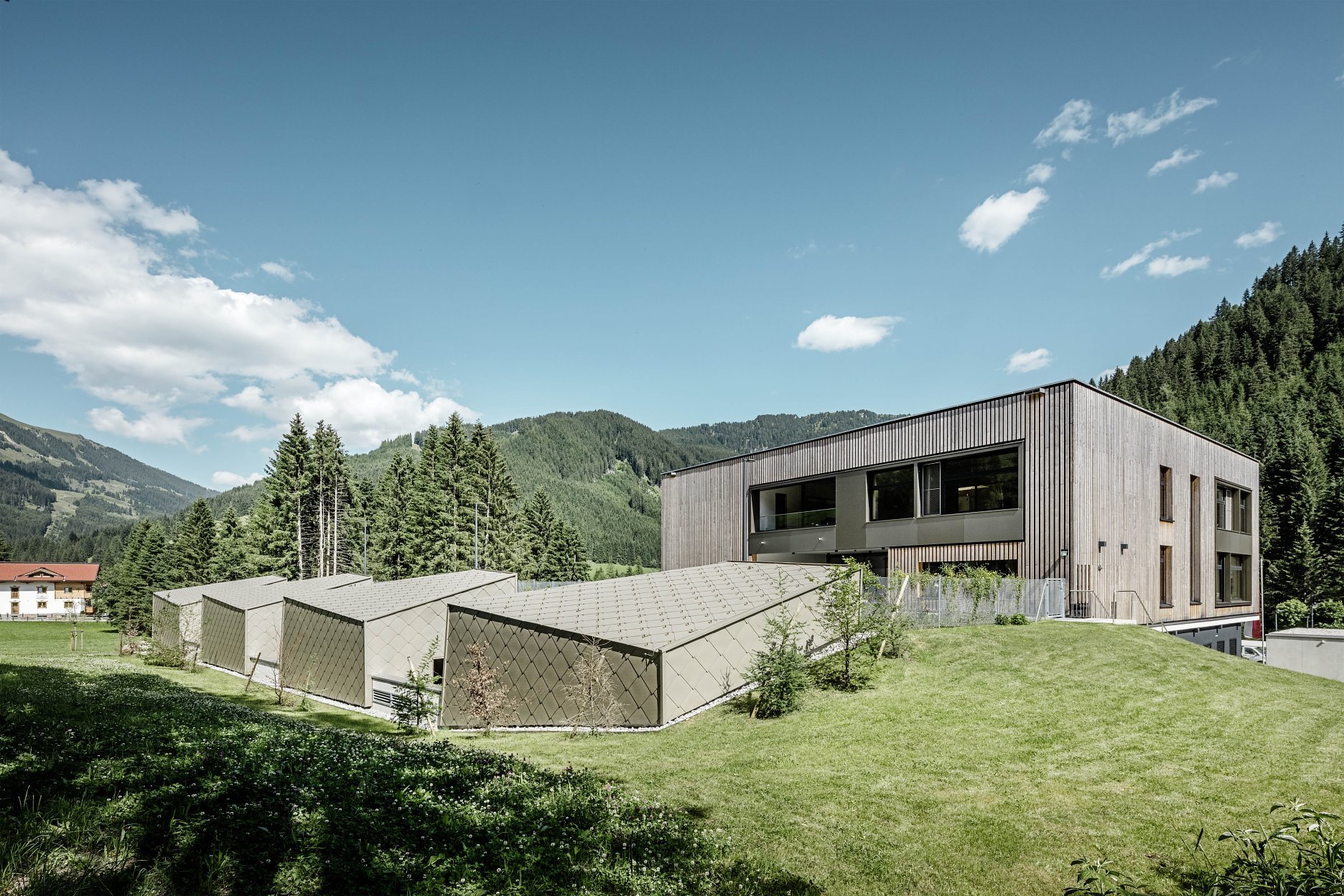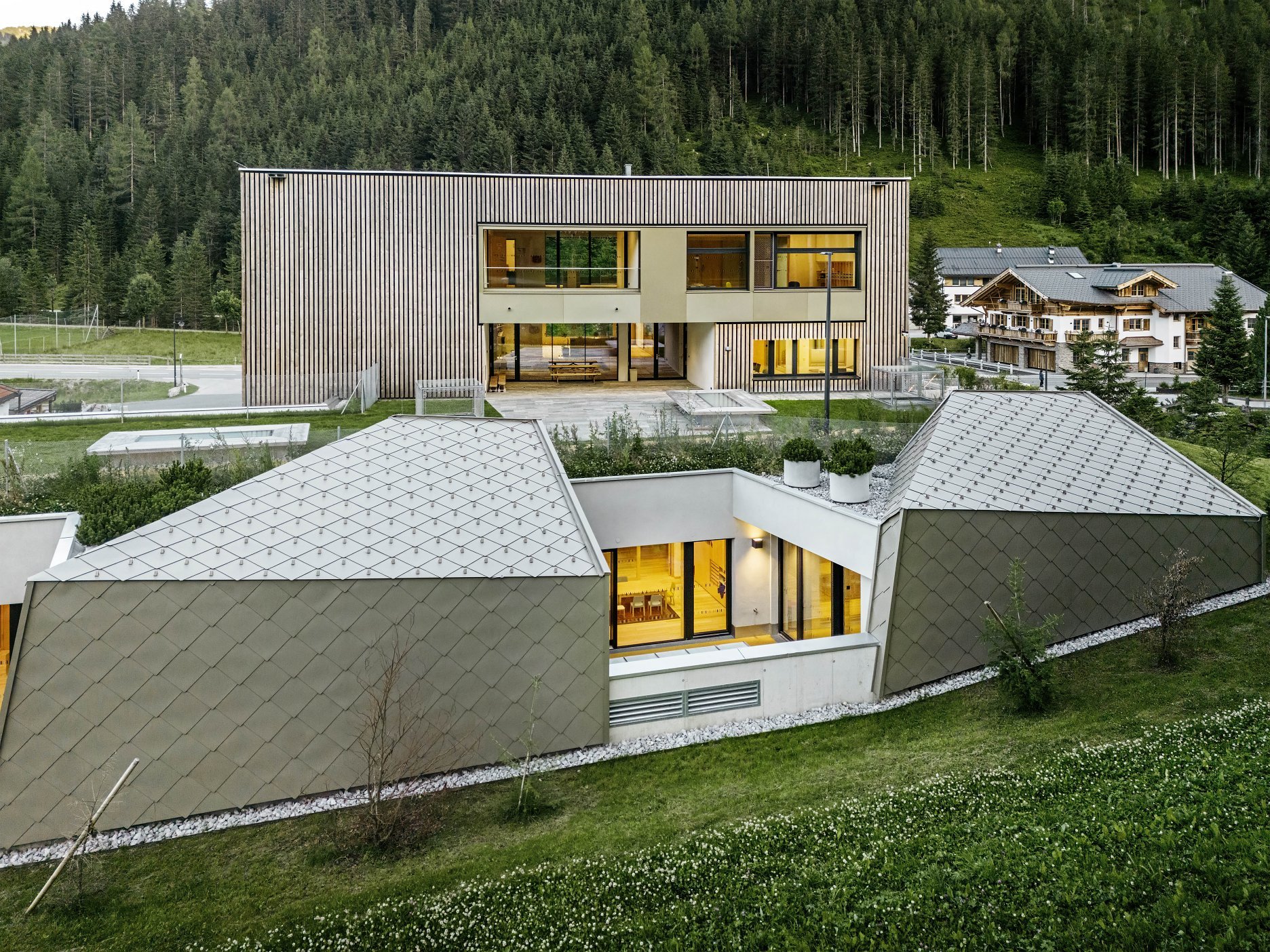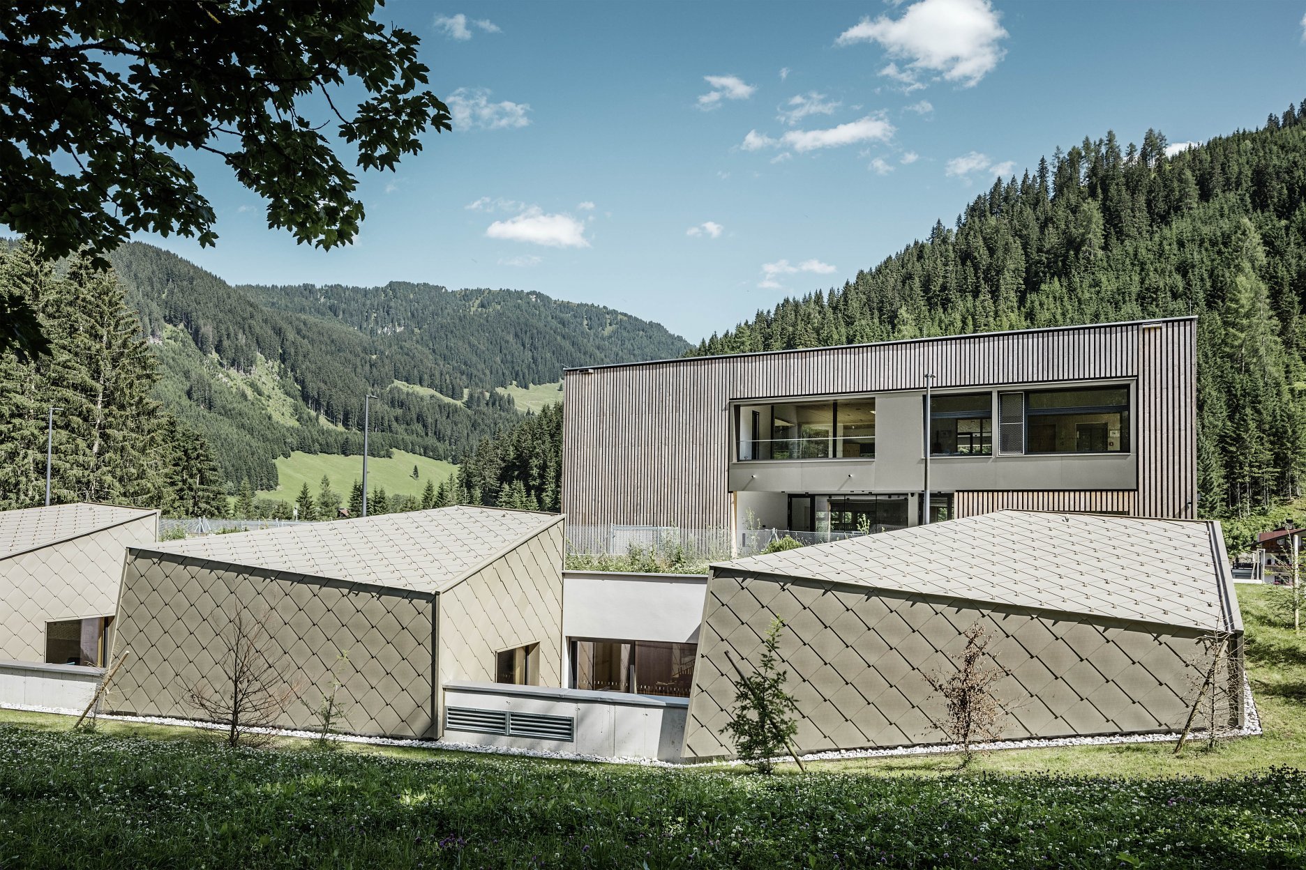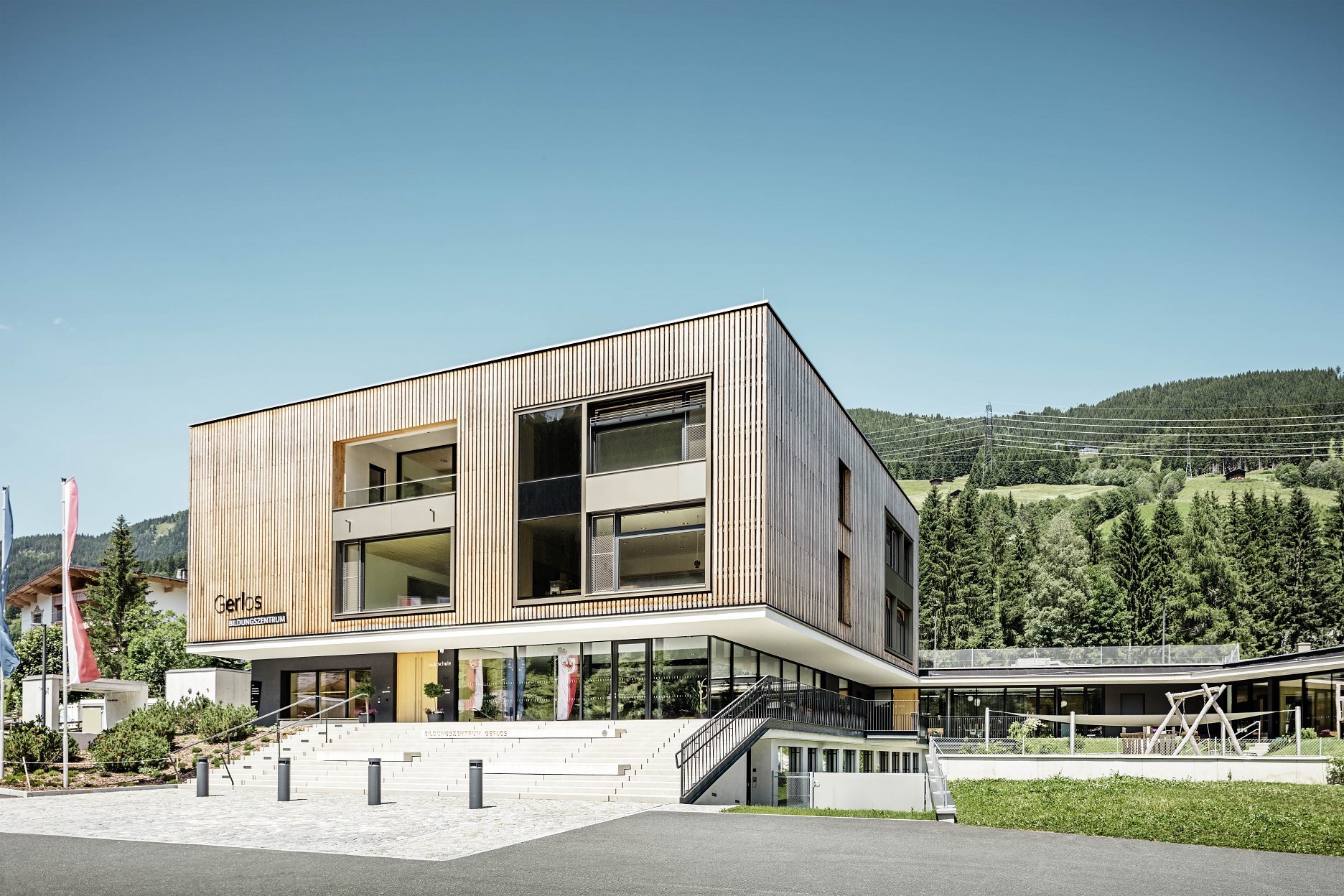 Projekt v malej tirolskej obci Gerlos zastrešuje kapacity miestnej základnej školy, škôlky a jaslí. Realizácia rakúskeho ateliéru UNISONO ARCHITEKTEN vzišla z vyzvanej architektonickej súťaže, vypísanej samosprávou v roku 2018. Areál pre širšiu spádovú oblasť z okolia lyžiarskeho a turistického strediska tvorí prirodzenú súčasť zástavby na rozhraní intravilánu a krajiny.