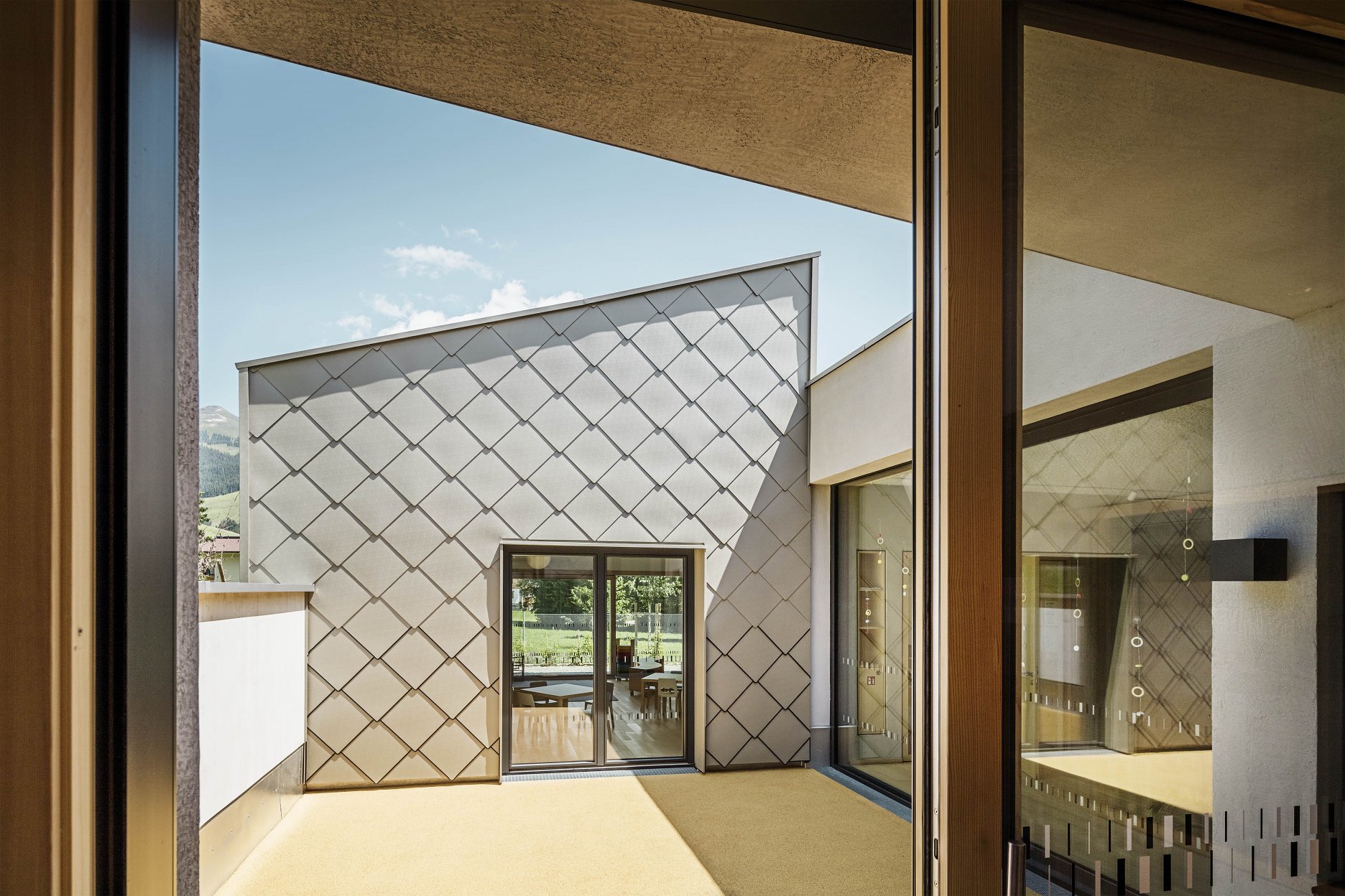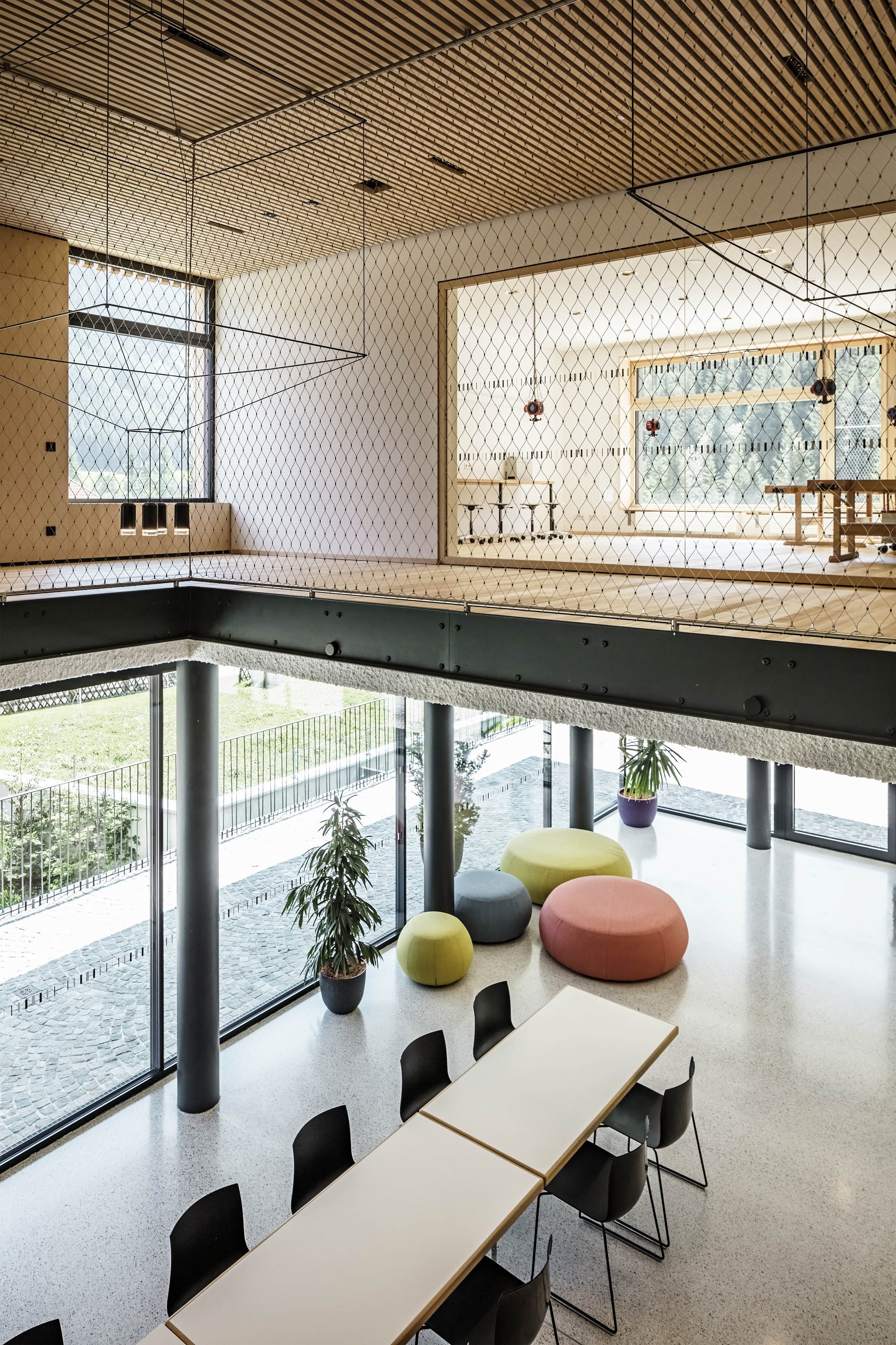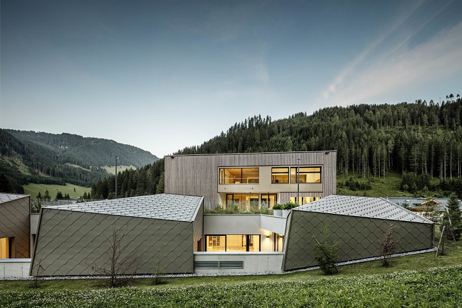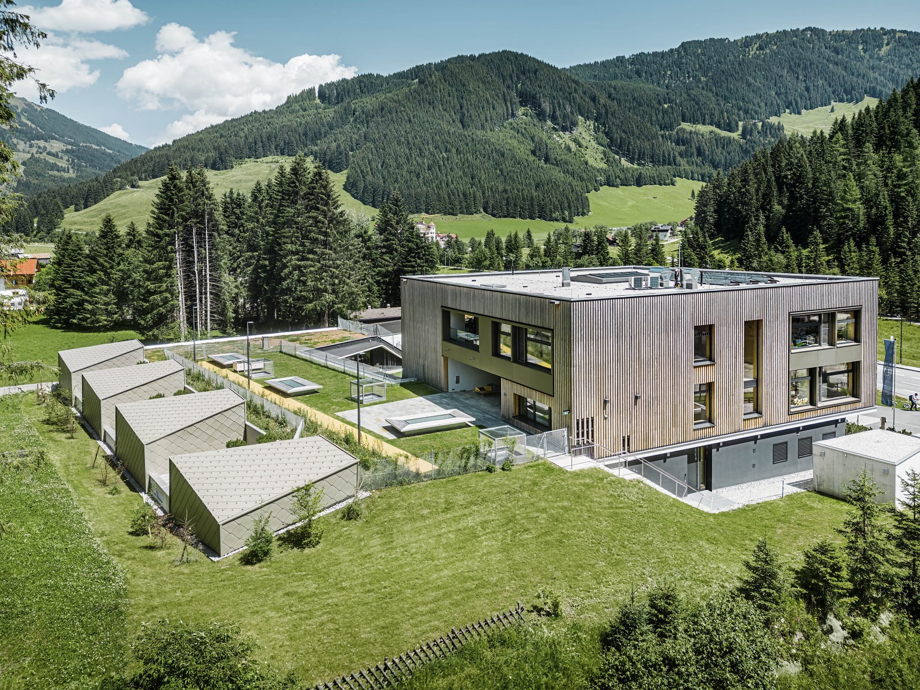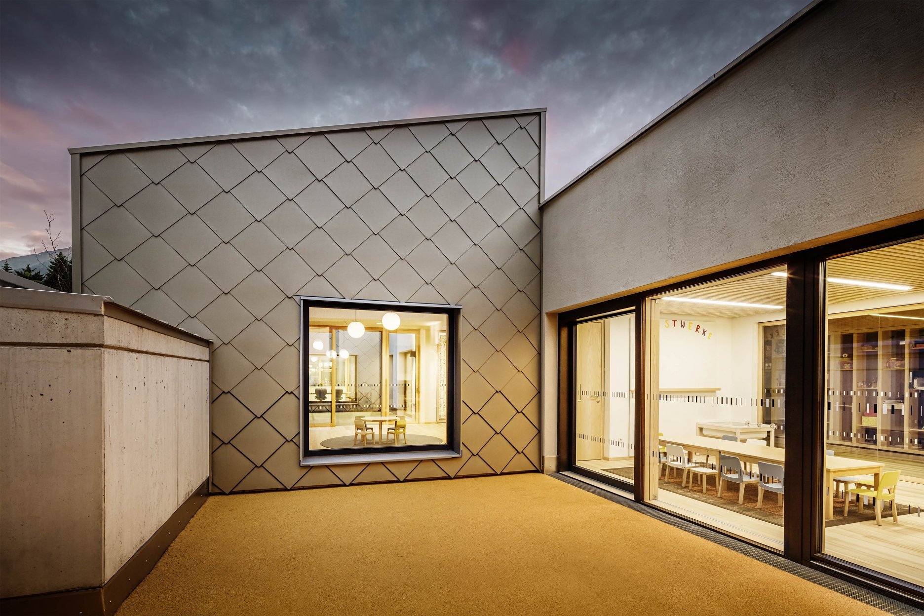 Projekt v malej tirolskej obci Gerlos zastrešuje kapacity miestnej základnej školy, škôlky a jaslí. Realizácia rakúskeho ateliéru UNISONO ARCHITEKTEN vzišla z vyzvanej architektonickej súťaže, vypísanej samosprávou v roku 2018. Areál pre širšiu spádovú oblasť z okolia lyžiarskeho a turistického strediska tvorí prirodzenú súčasť zástavby na rozhraní intravilánu a krajiny.