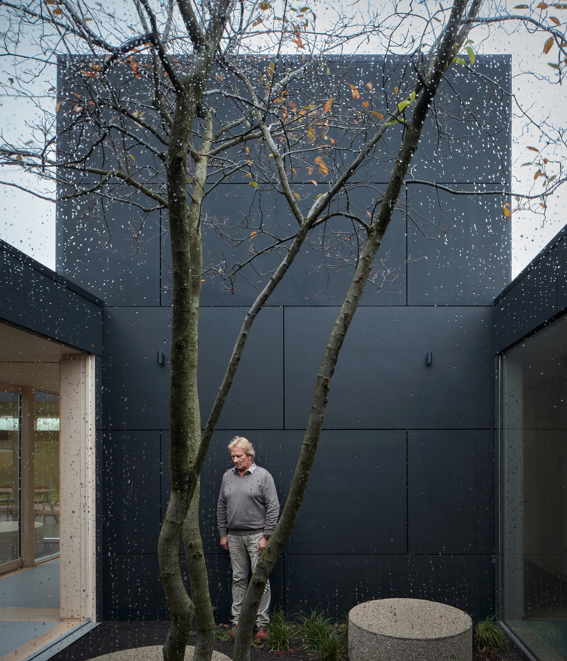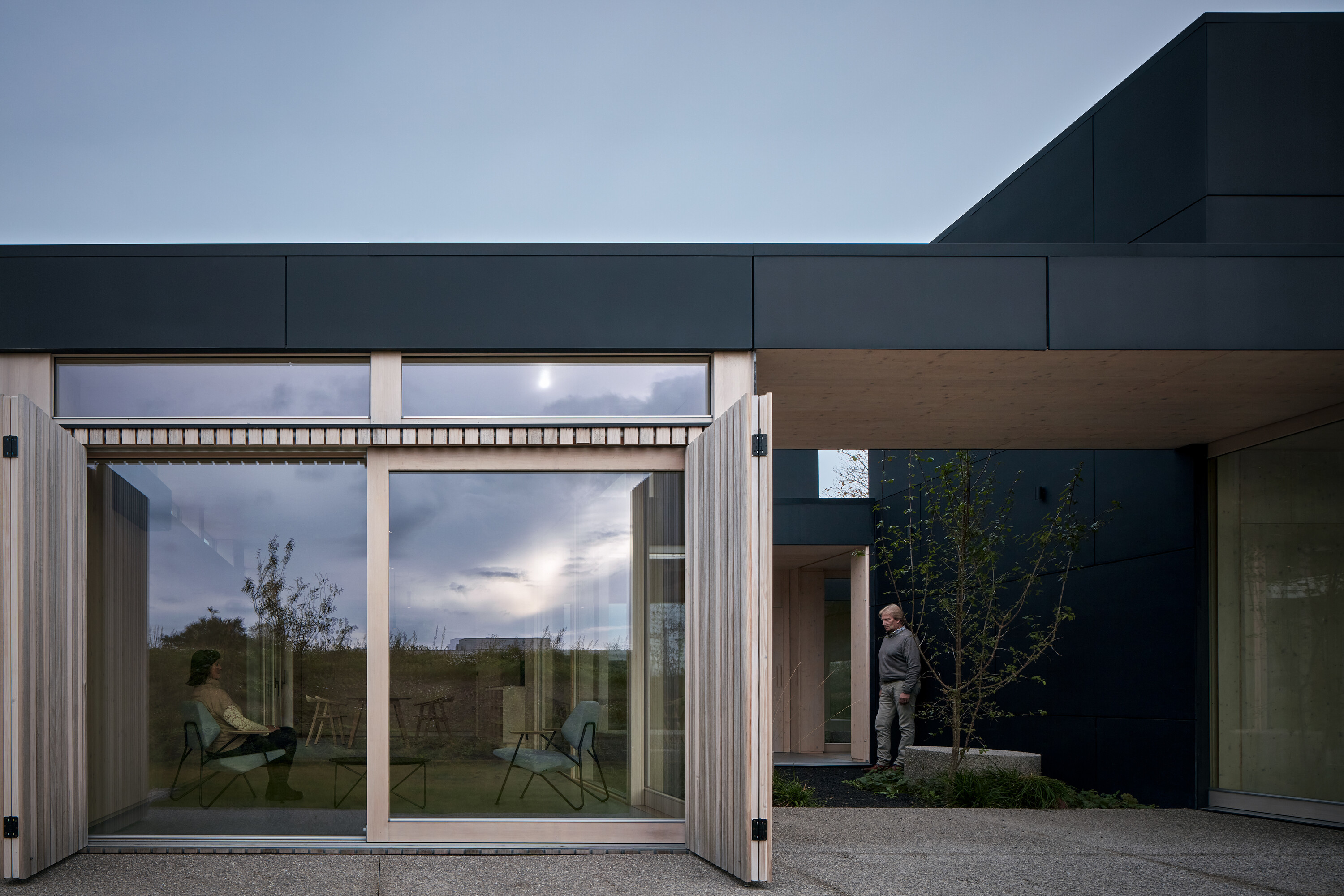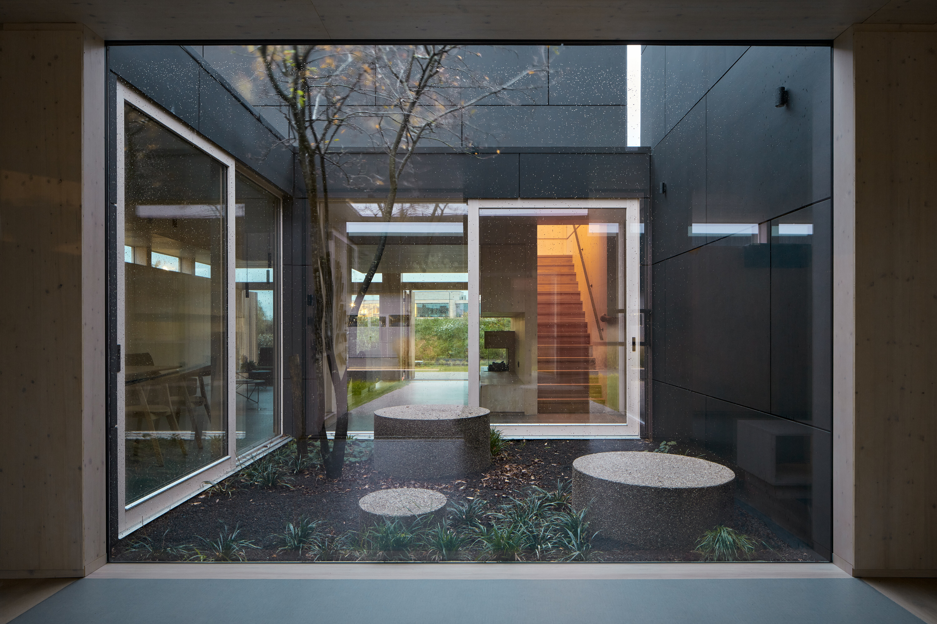 Do centra vás zavedie mäkká rampa, vchodové dvere sú odsadené od fasády, aby chránili pred vetrom, poskytovali bezpečný vstup a odstránili nemocničný vzhľad a pocit. Budova môže v celom rozsahu dýchať, vstupuje do nej príroda a výhľady. Takmer každé miesto má priamy vizuálny kontakt s exteriérom. Okná v hornej časti zabezpečia, že v celej budove bude vždy bazilikálne svetlo, ale zároveň v nej bude súkromie.