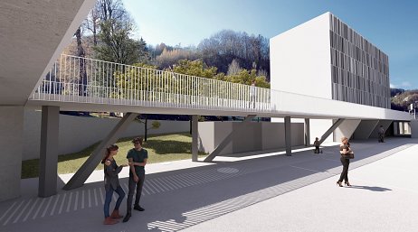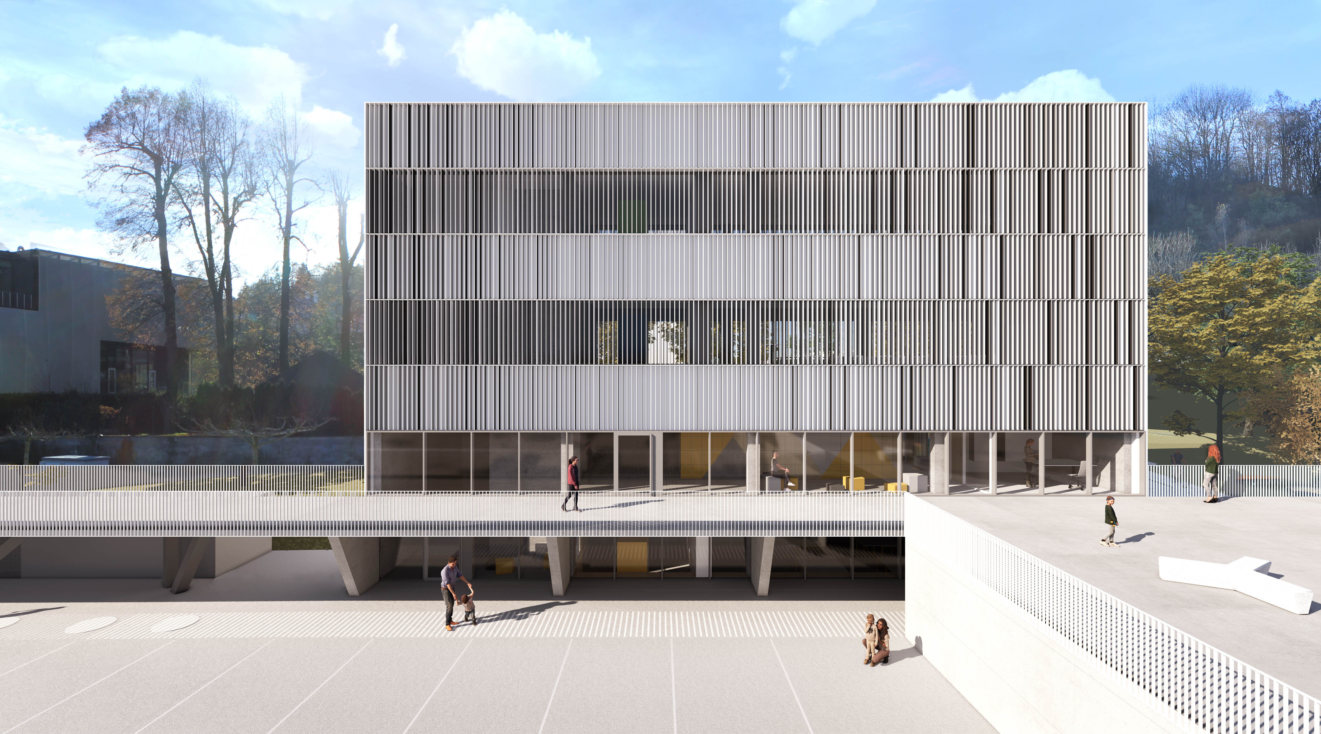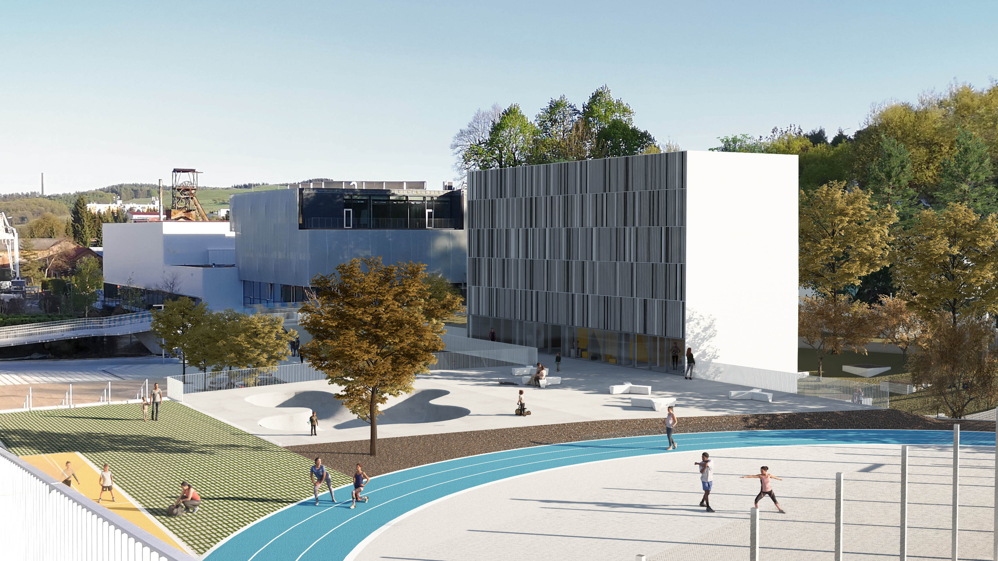 Nový stavebný objem prepája so školou pešia lávka, ktorá zároveň vytvára kryté podlubie medzi preskleným parterom a zapusteným skladovým objektom. Objekt s doplnkovými učebňami vznikol s ambíciou uzavrieť celý projekt a integrovať chýbajúce funkcie. Riešenie nového skateparku v úrovňovom napojení na atletický ovál umožnilo zapustiť technický objekt pod terén. Architektonické stvárnenie nových objektov nenútene nadväzuje na pôvodný koncept, pričom využíva podobné výrazové prostriedky, odskúšané väzby a komunikačnú štruktúru.
