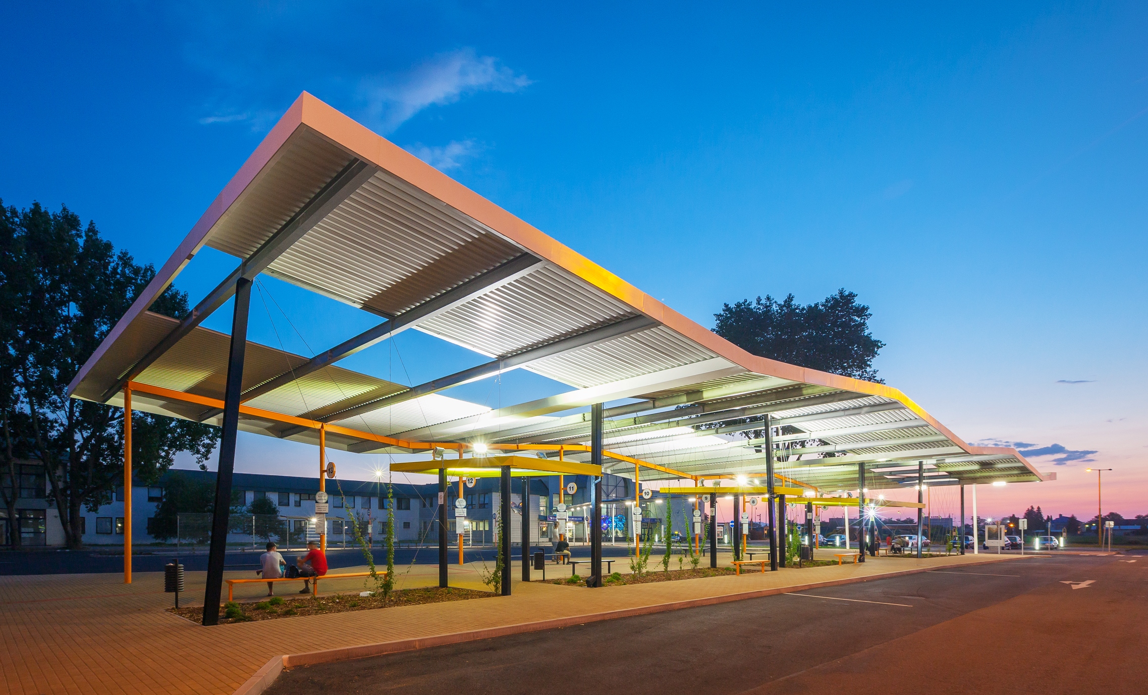 Návrh vznikal v těsné spolupráci kanceláře pro architekturu a design ellement a vývojovým oddělením designcité+, které patří do společnosti mmcité+, která stavbu zastřešení realizovala. Společně jsme se pokusili vytvořit živé, vizuálně atraktivní místo, které může vytvořit alternativu veřejného prostoru, kde by se čekající cestující cítili dobře. Nádraží je rozděleno na společně zastřešenou část pro autobusy dálkové dopravy a část pro místní MHD, s jednotlivými zastávkami. Oba prostory propojuje krytý příchod směřující k vlakovému nádraží.