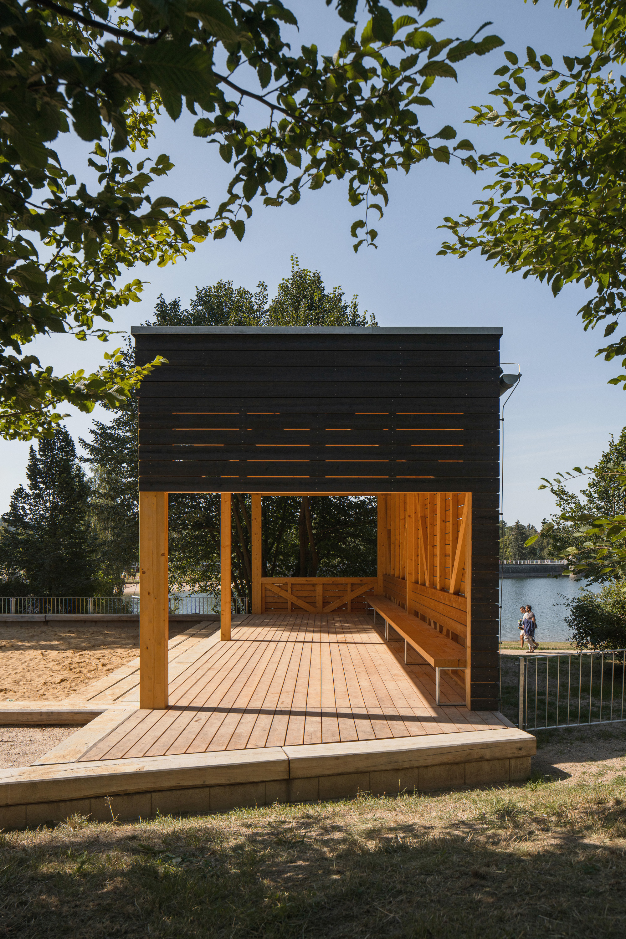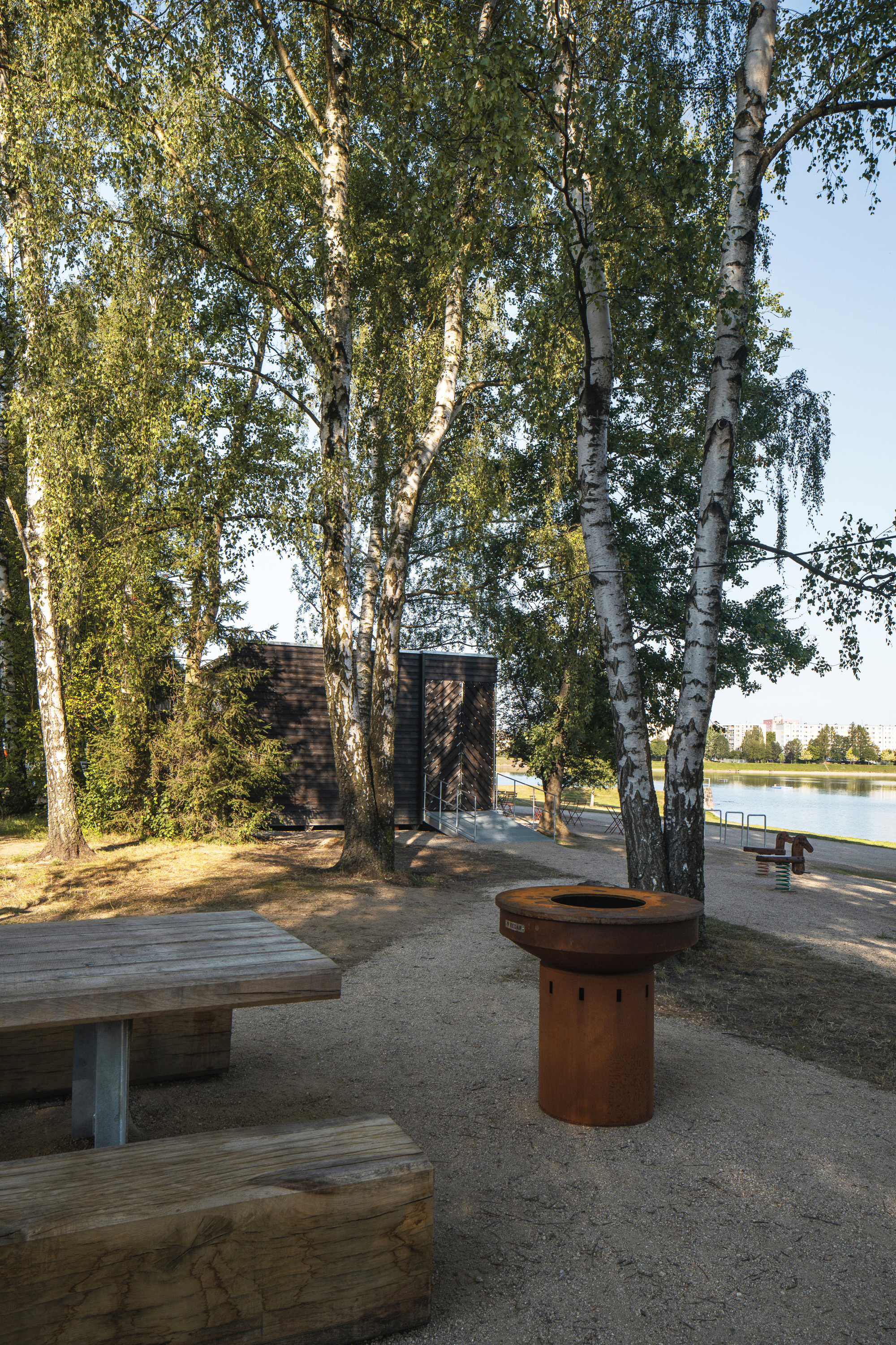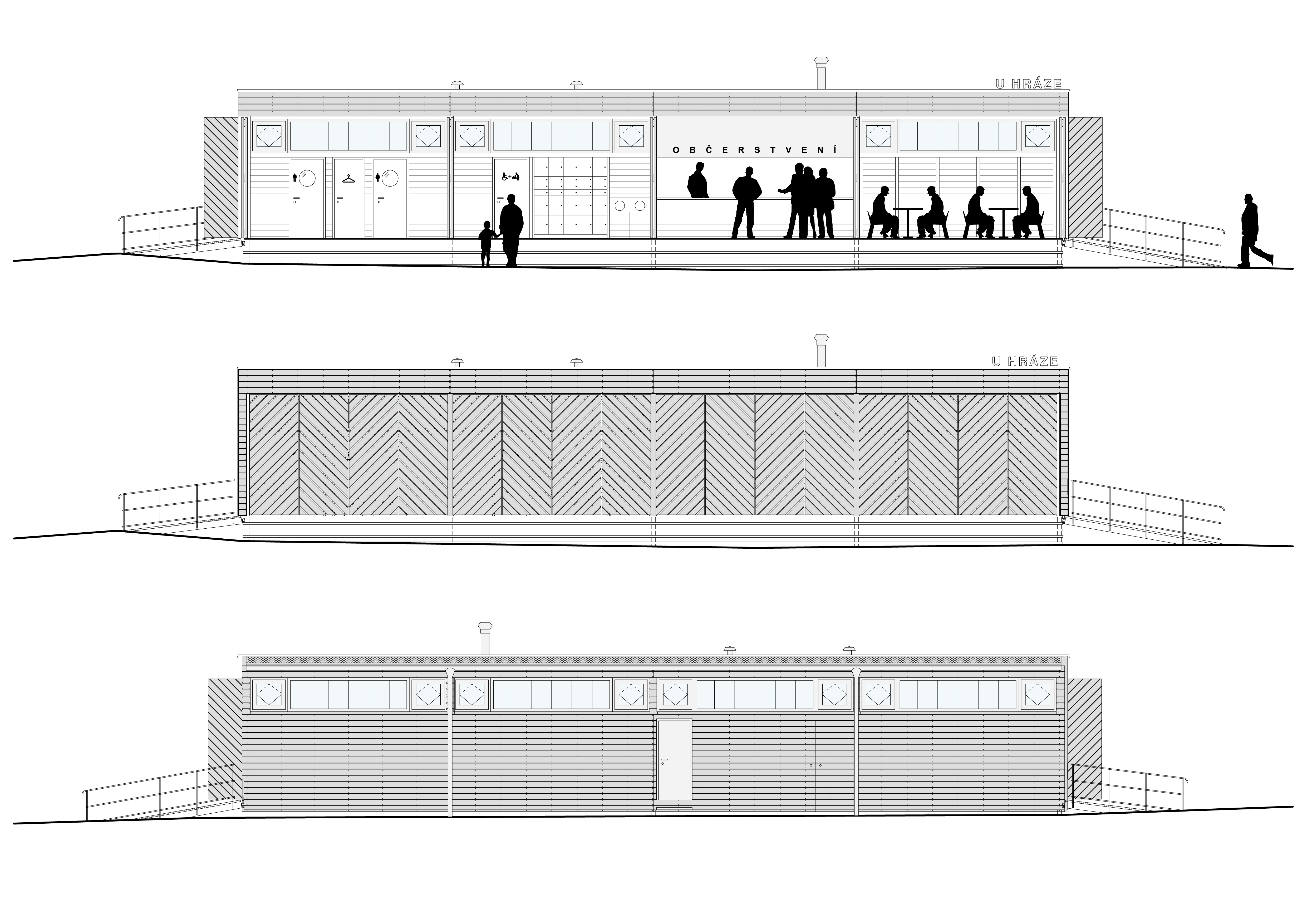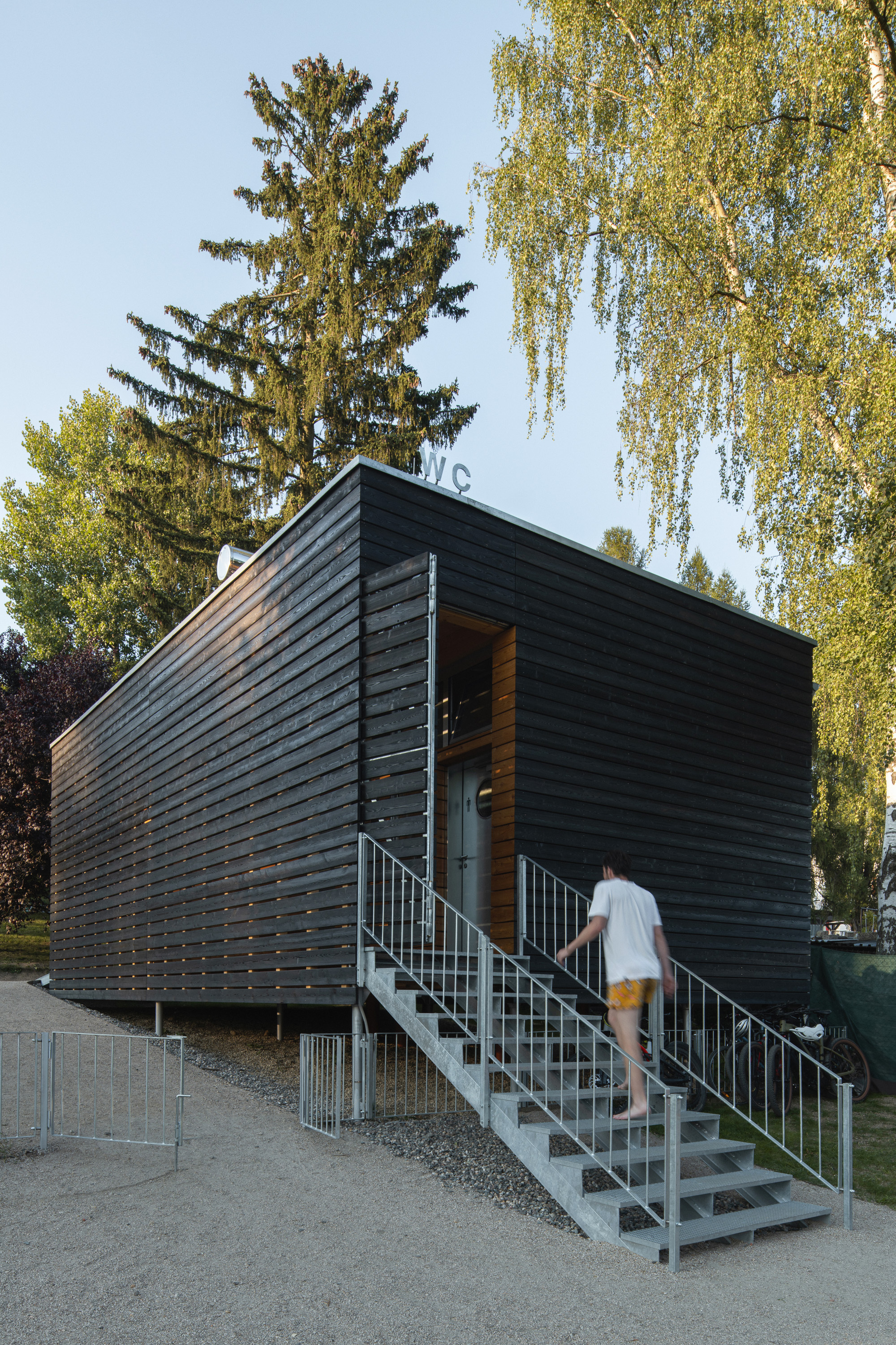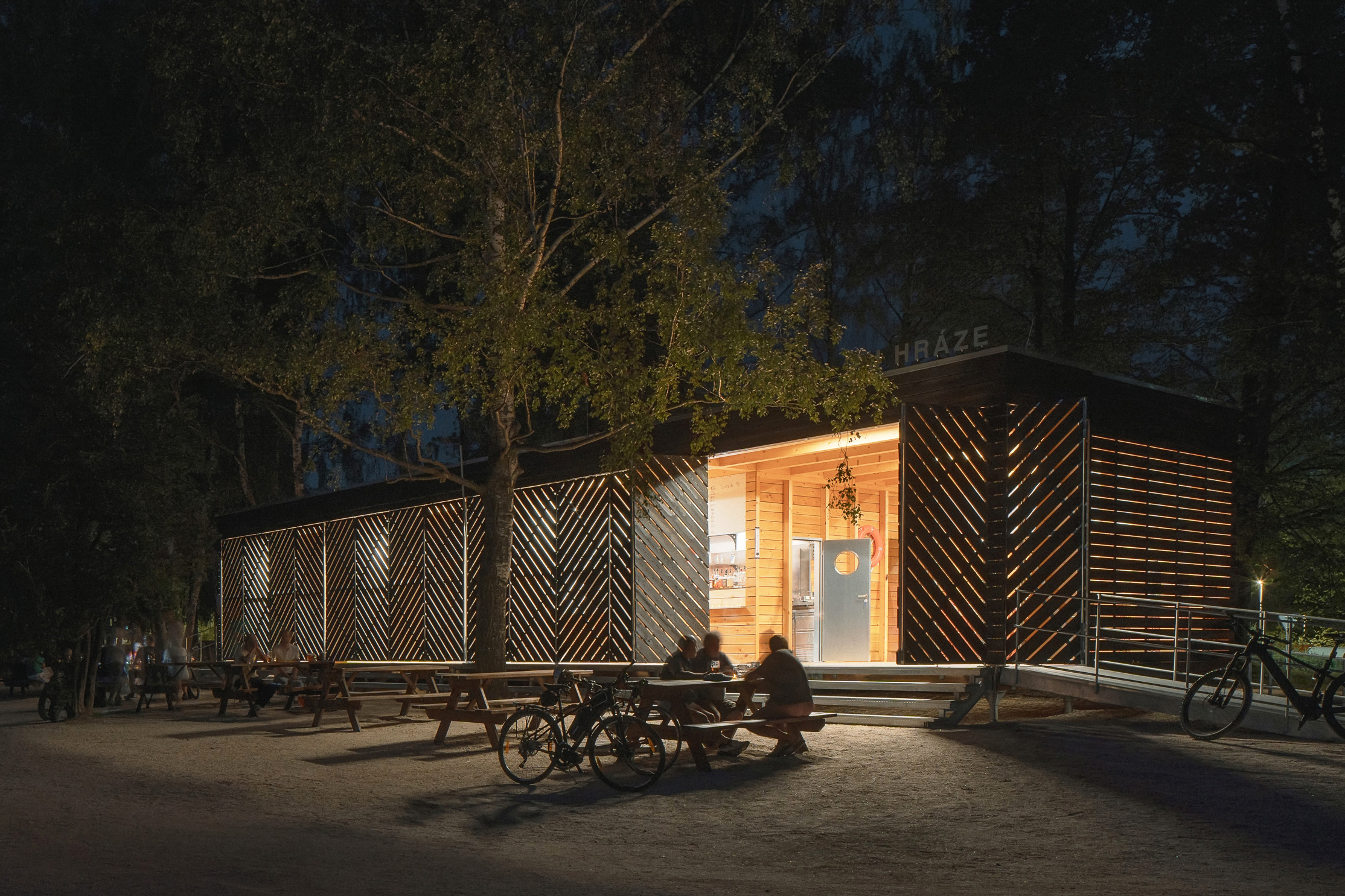 Pri “jabloneckom mori“ začala byť situácia s rastúcim počtom stánkov bez adekvátneho zázemia neúnosná. Mesto preto v roku 2020 pristúpilo k vyhláseniu súťaže na tri rôzne lokality. Prvý dokončený objekt zázemia z dielne pražského kolektívu Prokš Přikryl architekti sme predstavili v závere minulého roku. Kiosk v jednoznačne "najmestskejšej" polohe "U Prutu" funguje ako jediný celoročne. Drobnú stavbu v priebehu tohto roku doplnili objekty v neďalekých lokalitách "U Hráze" a "U Základny".