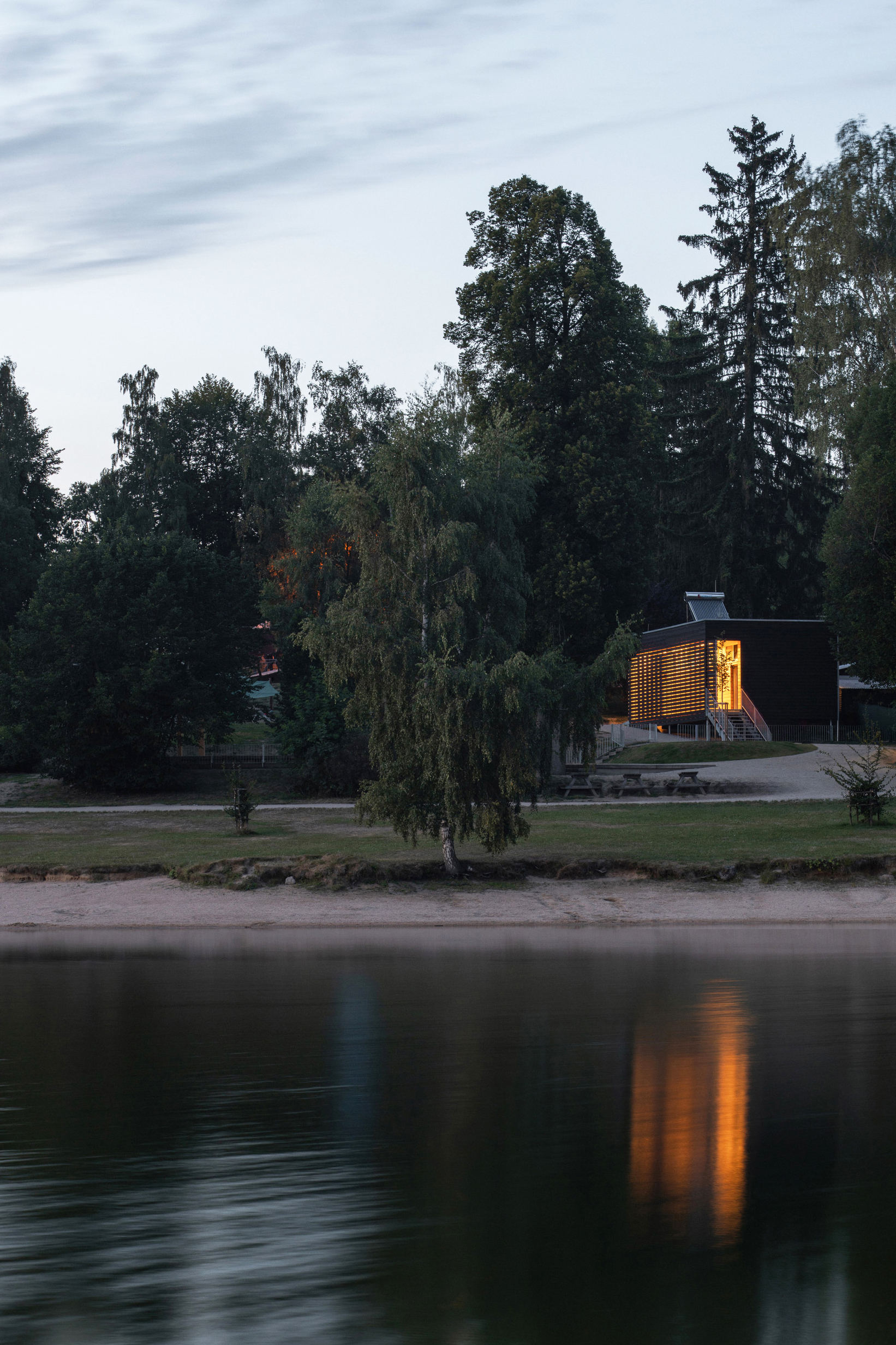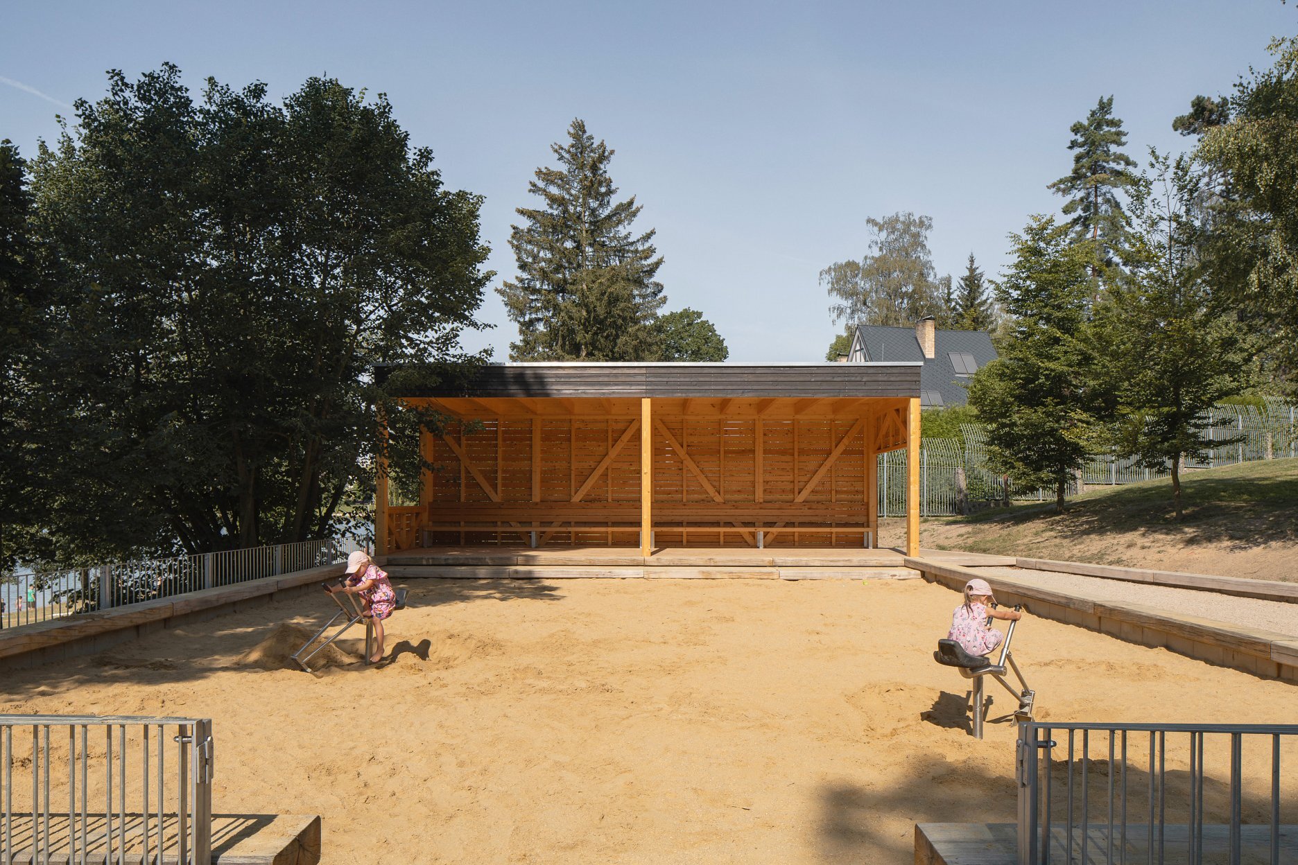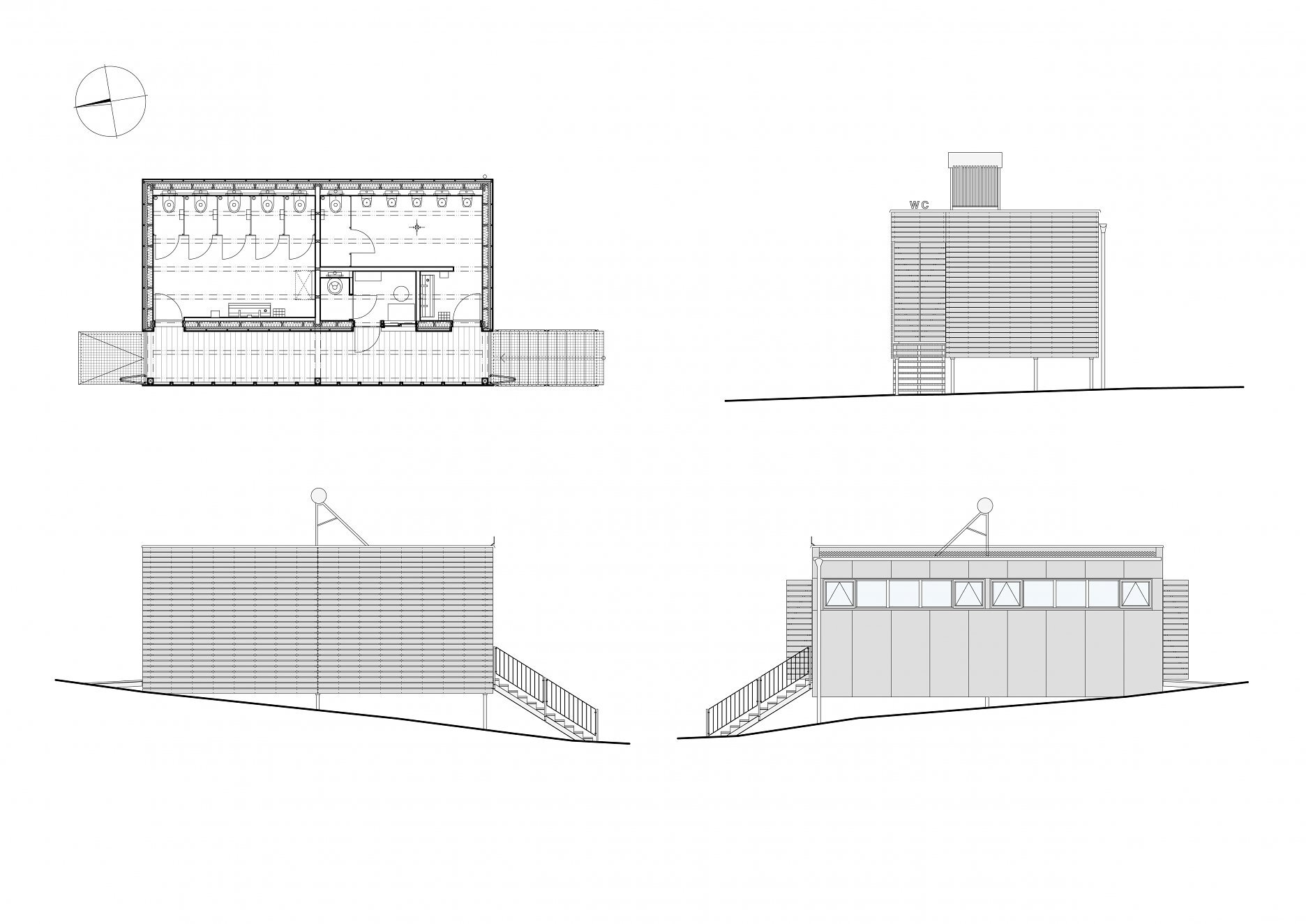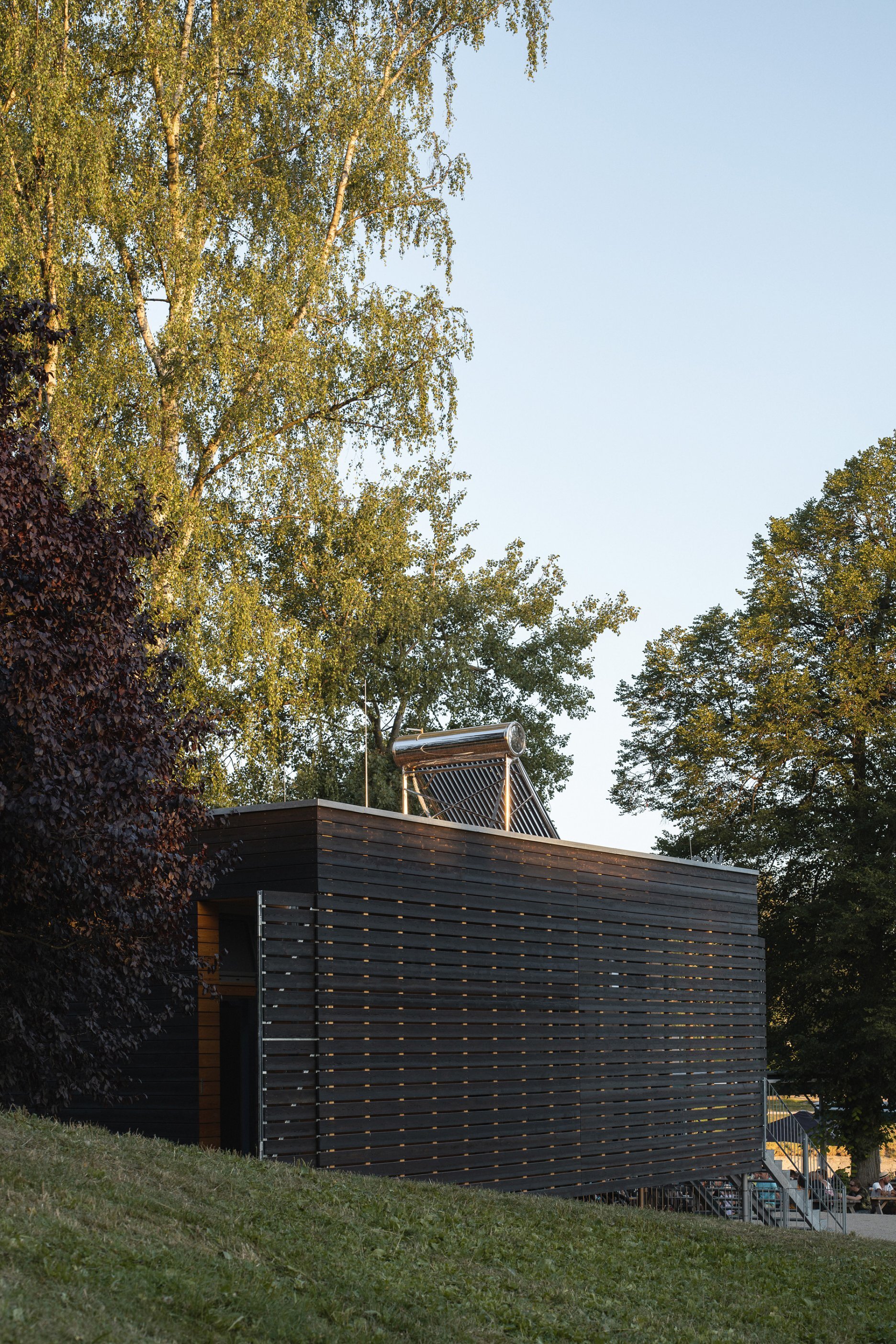 Pri “jabloneckom mori“ začala byť situácia s rastúcim počtom stánkov bez adekvátneho zázemia neúnosná. Mesto preto v roku 2020 pristúpilo k vyhláseniu súťaže na tri rôzne lokality. Prvý dokončený objekt zázemia z dielne pražského kolektívu Prokš Přikryl architekti sme predstavili v závere minulého roku. Kiosk v jednoznačne "najmestskejšej" polohe "U Prutu" funguje ako jediný celoročne. Drobnú stavbu v priebehu tohto roku doplnili objekty v neďalekých lokalitách "U Hráze" a "U Základny".