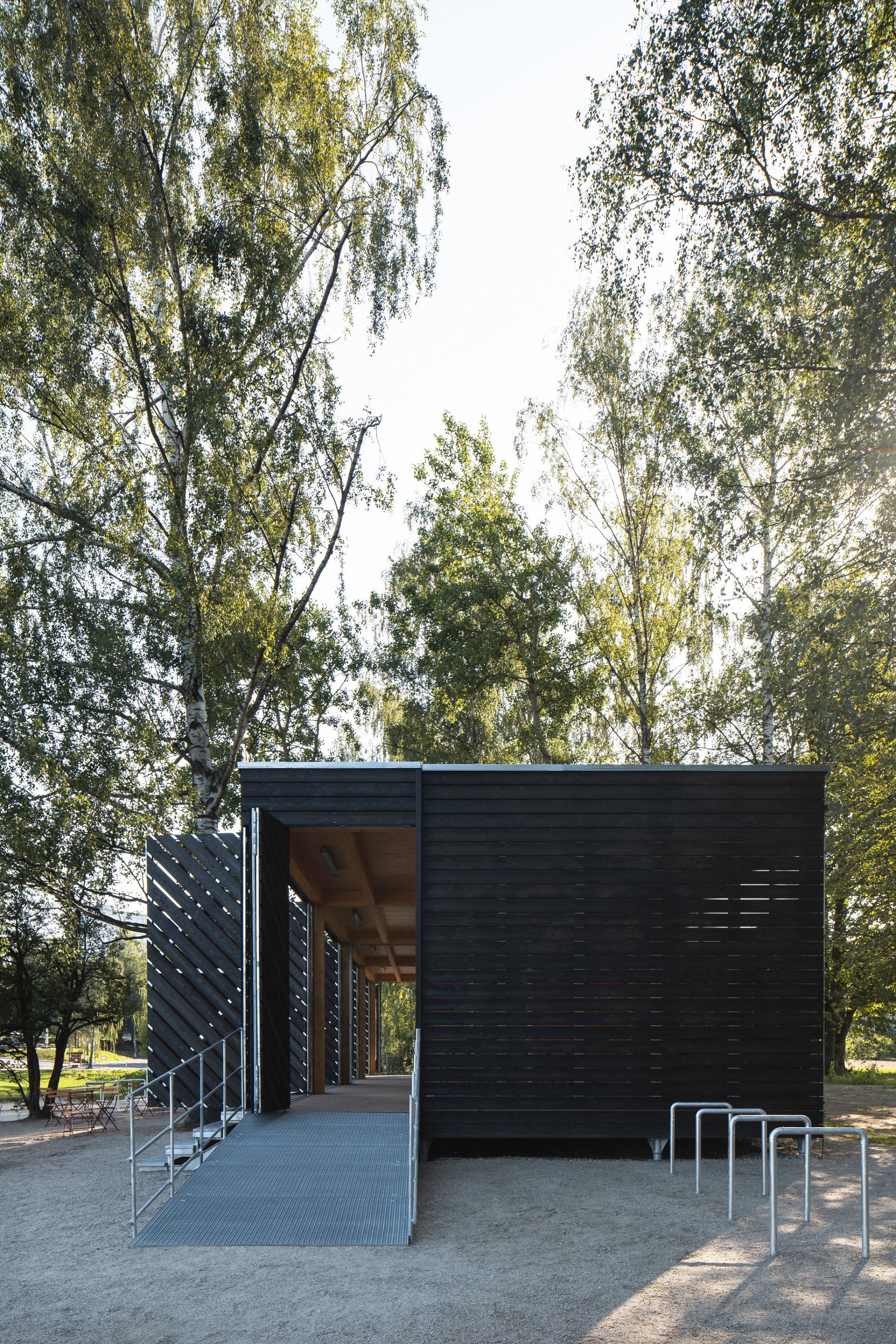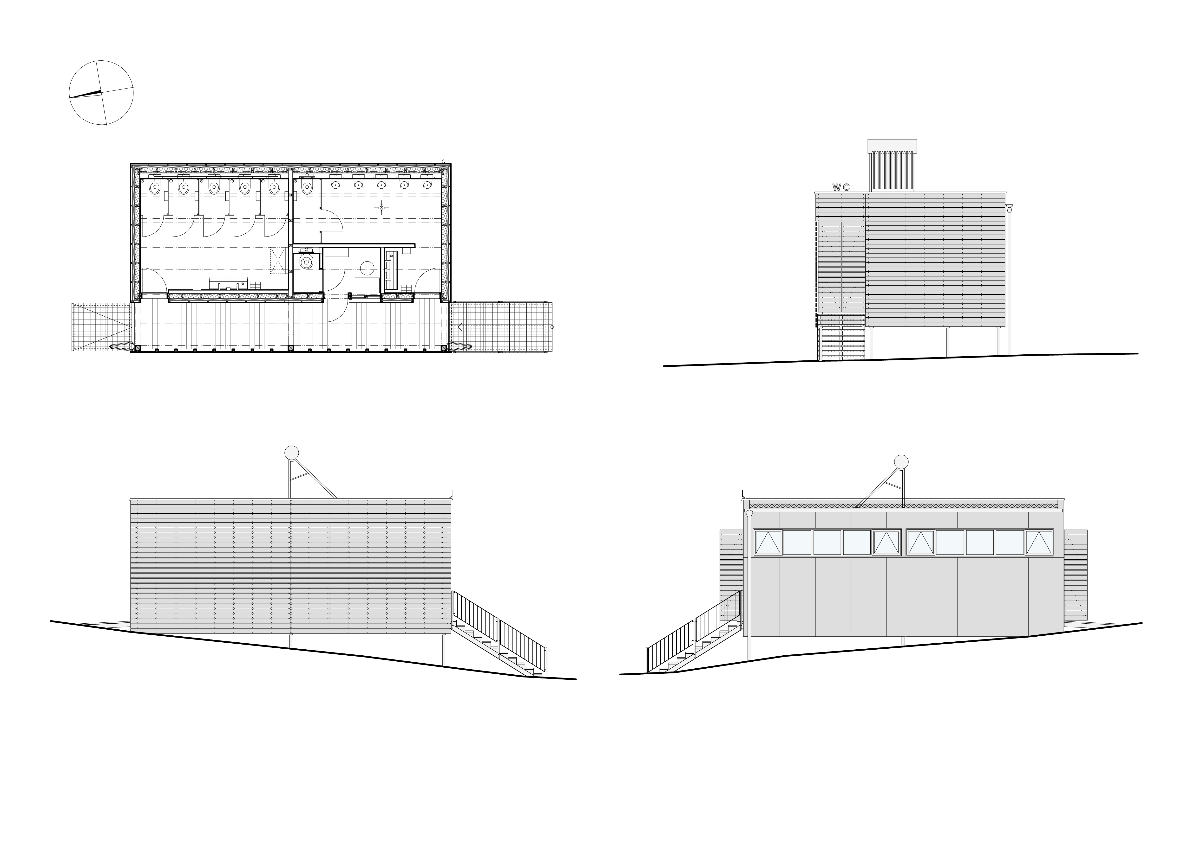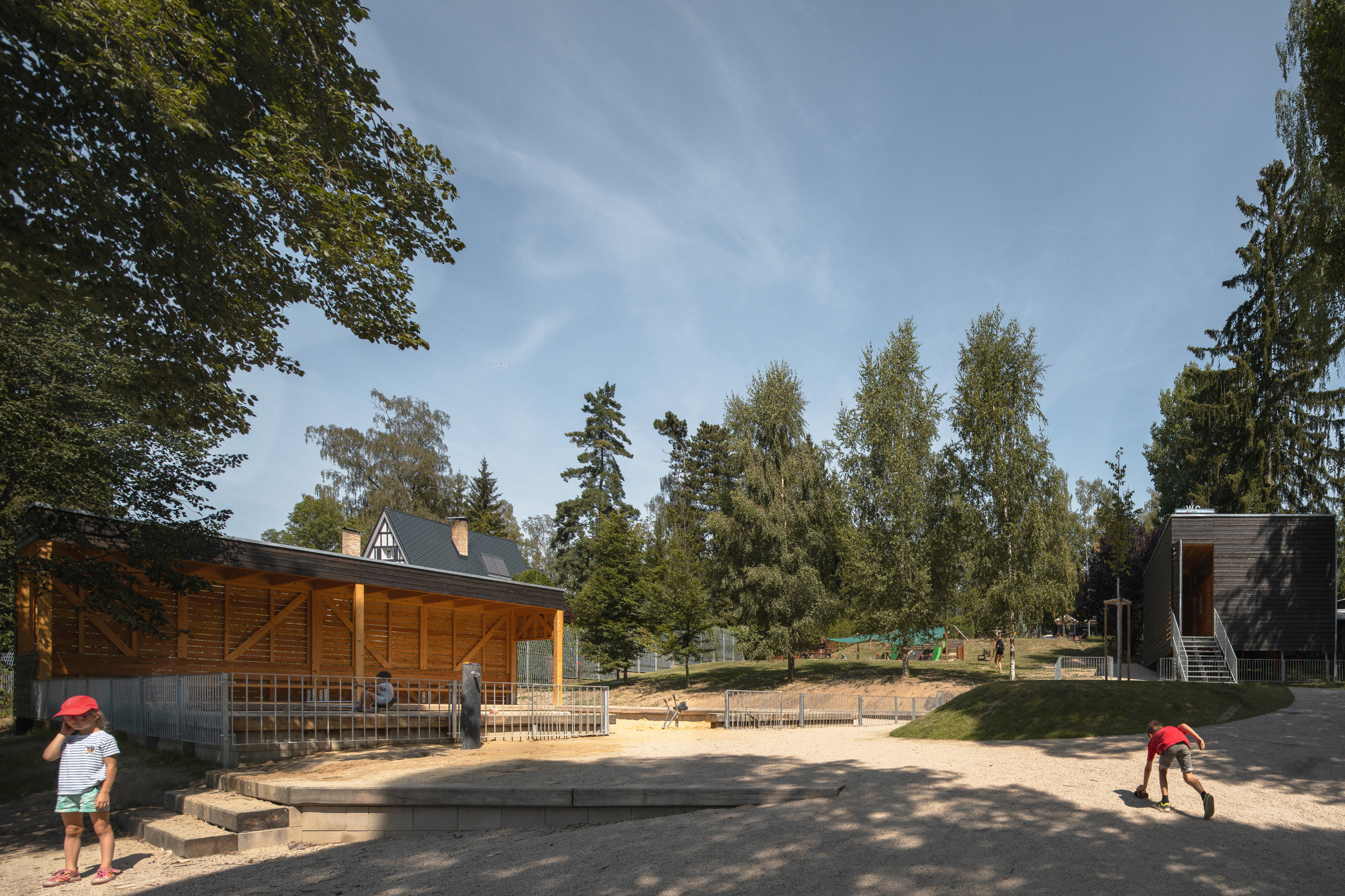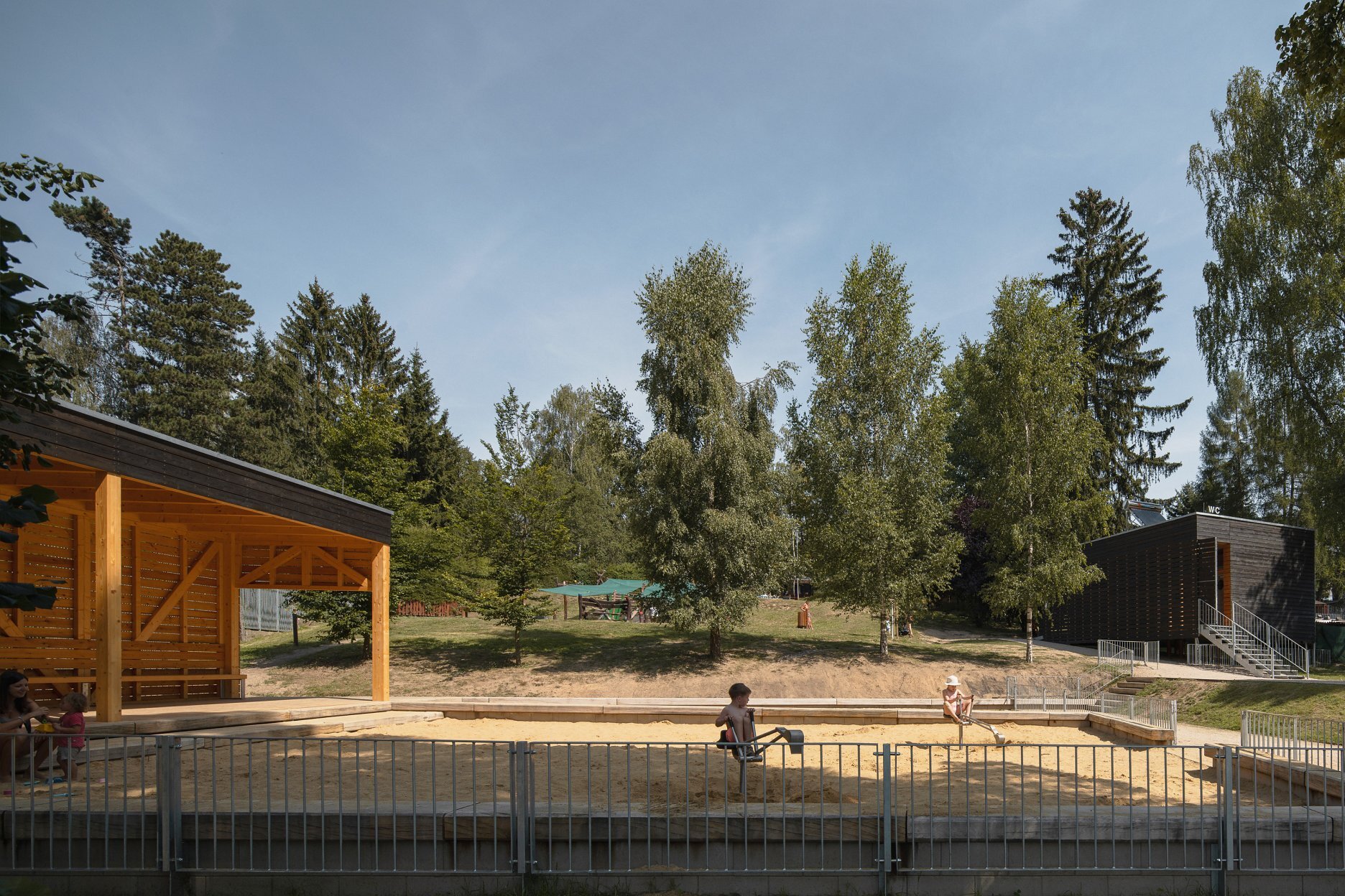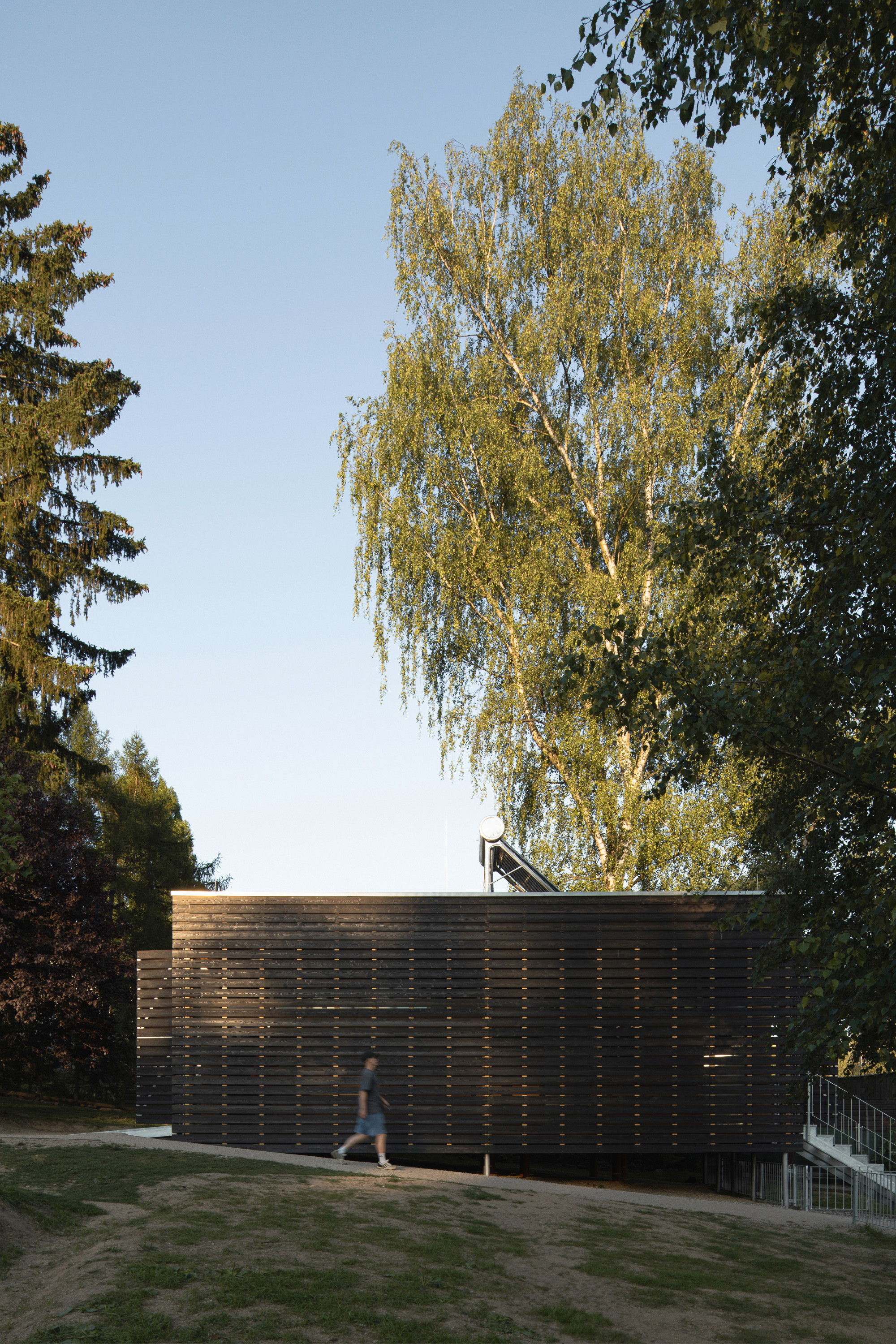 Pri “jabloneckom mori“ začala byť situácia s rastúcim počtom stánkov bez adekvátneho zázemia neúnosná. Mesto preto v roku 2020 pristúpilo k vyhláseniu súťaže na tri rôzne lokality. Prvý dokončený objekt zázemia z dielne pražského kolektívu Prokš Přikryl architekti sme predstavili v závere minulého roku. Kiosk v jednoznačne "najmestskejšej" polohe "U Prutu" funguje ako jediný celoročne. Drobnú stavbu v priebehu tohto roku doplnili objekty v neďalekých lokalitách "U Hráze" a "U Základny".
