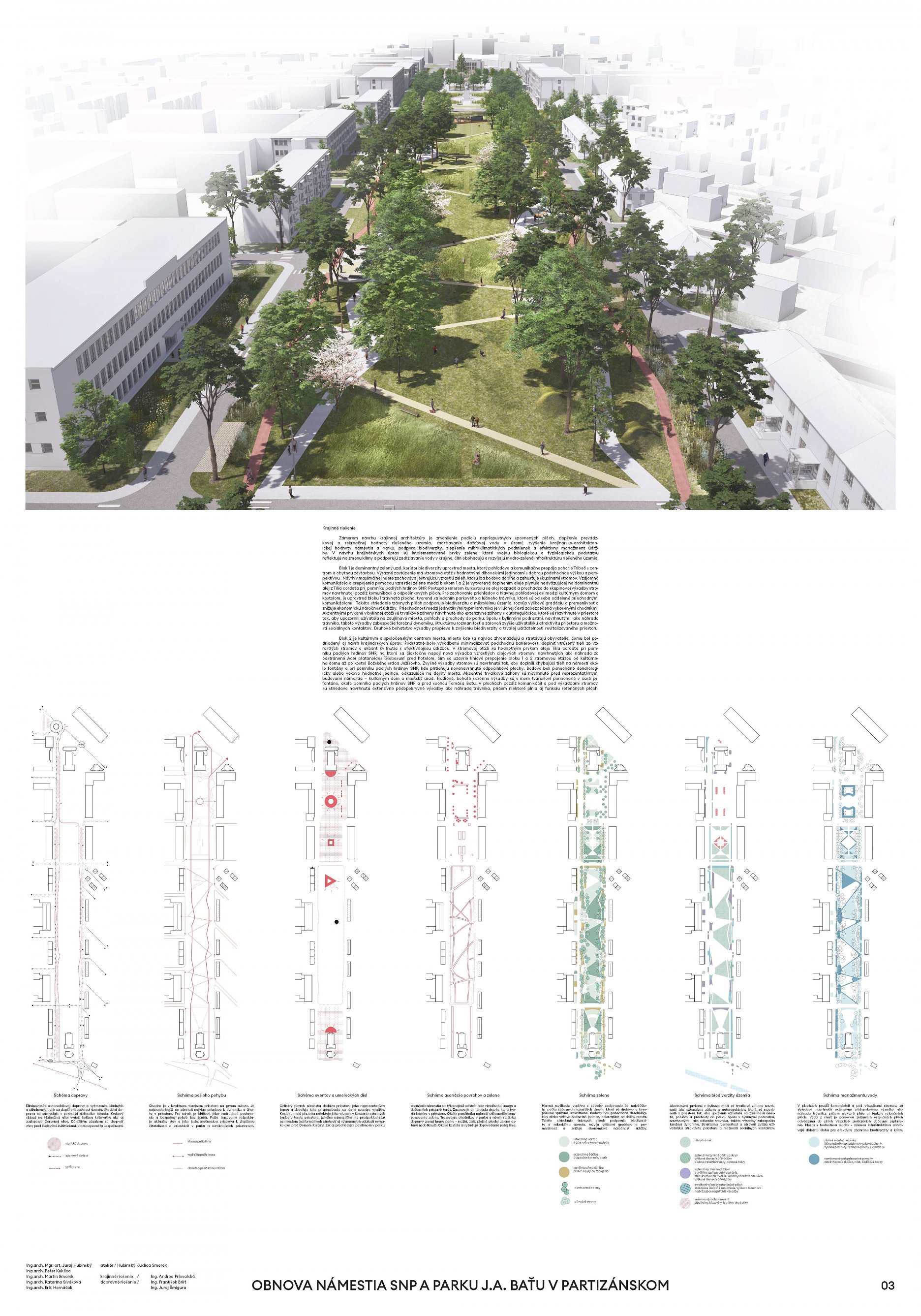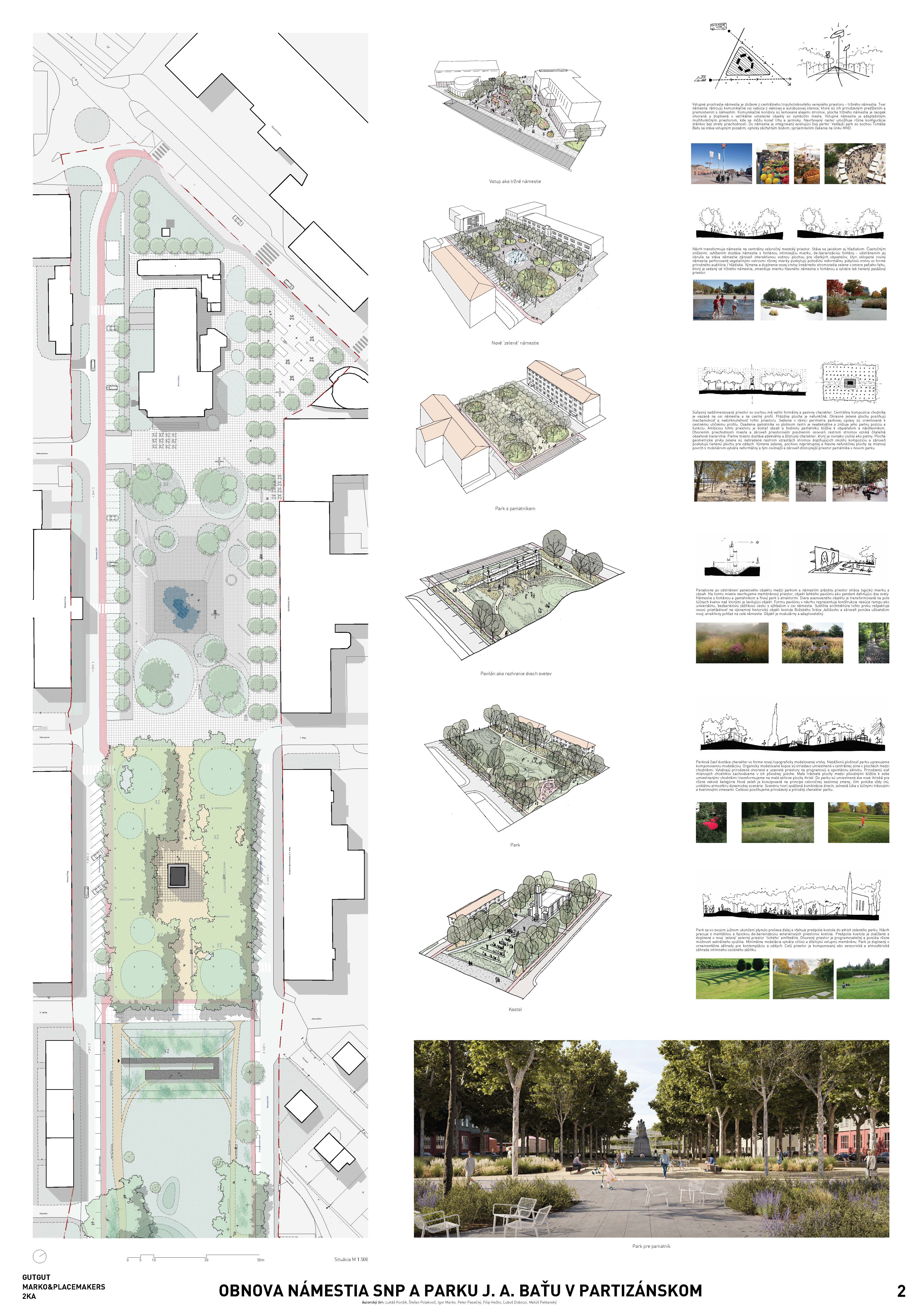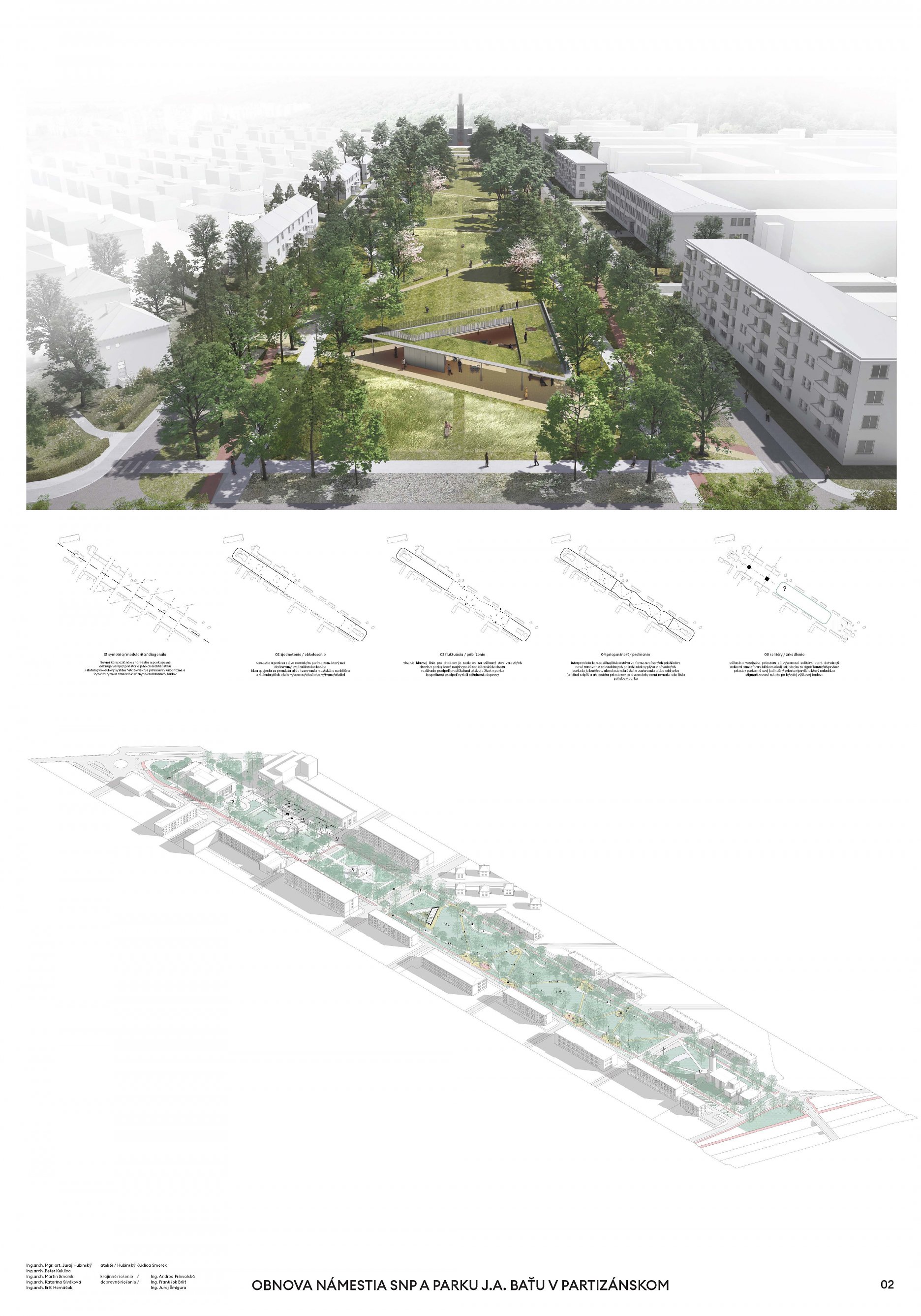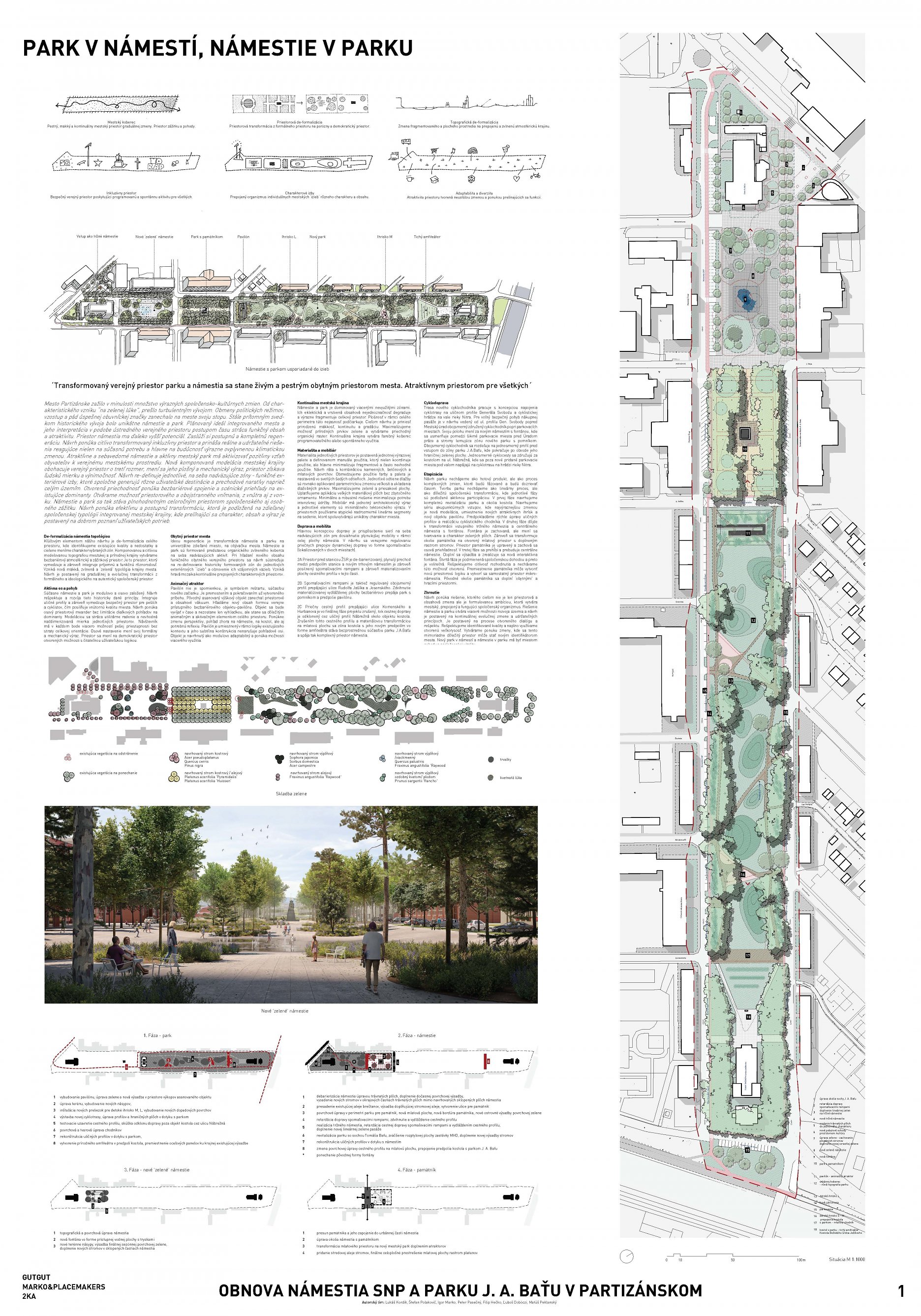 Mesto Partizánske vyhlásilo súťaž na urbanisticko-architektonicko-krajinárske riešenie revitalizácie Námestia SNP a parku J. A. Baťu v Partizánskom. Riešené územie, s plochou približne 60 000 m2, predstavuje unikátny rozsah zadania, pozostávajúci z viacerých lineárne radených verejných priestorov v centre mesta Partizánske. Sú súčasťou pôvodného urbanistického konceptu ideálneho priemyselného mesta z 30. rokov minulého storočia podľa regulačného plánu mesta Baťovany, vypracovaného architektom Jiřím Voženílkom, pod vedením architekta Vladimíra Karfíka.
