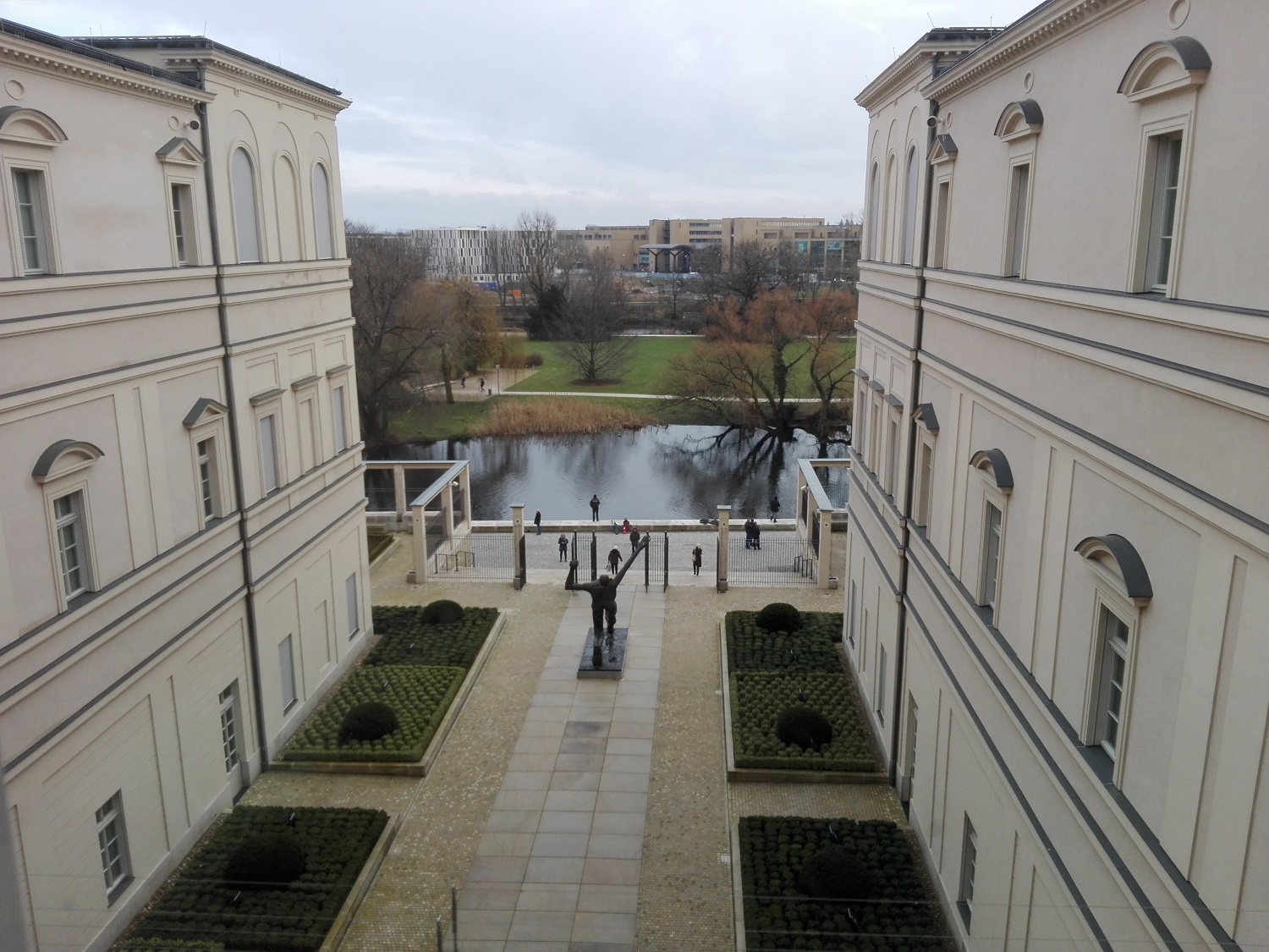 Na troch podlažiach, na ploche cca 2800 m2 sa nachádzajú výstavné priestory v oboch krídlach paláca s moderným zariadením, oprostené o historickú interiérovú výzdobu. Vo foyer sa nachádza reštaurácia s pokladňou a info panelmi, v suteréne obchod s knihami, sociálne miestnosti so šatňami. Depozit je zrejme umiestnený o jedno podzemné podlažie nižšie. Budova je prepojená s výstupom do záhrady vedúcej k rieke Havel. Ide o železobetónový skelet, opláštený prefabrikovanými prvkami, s replikami barokovo klasicistickej fasády. Zabudovať originálne fragmenty, ako tomu bolo pri susednej stavbe mestského zámku sa však v tomto prípade nepodarilo, pretože sa žiadne nezachovali.