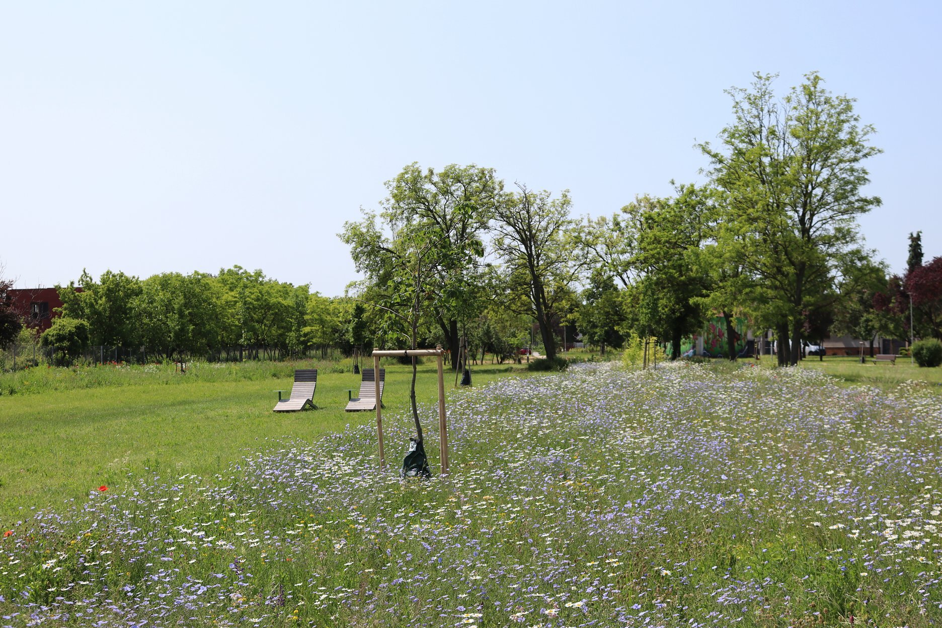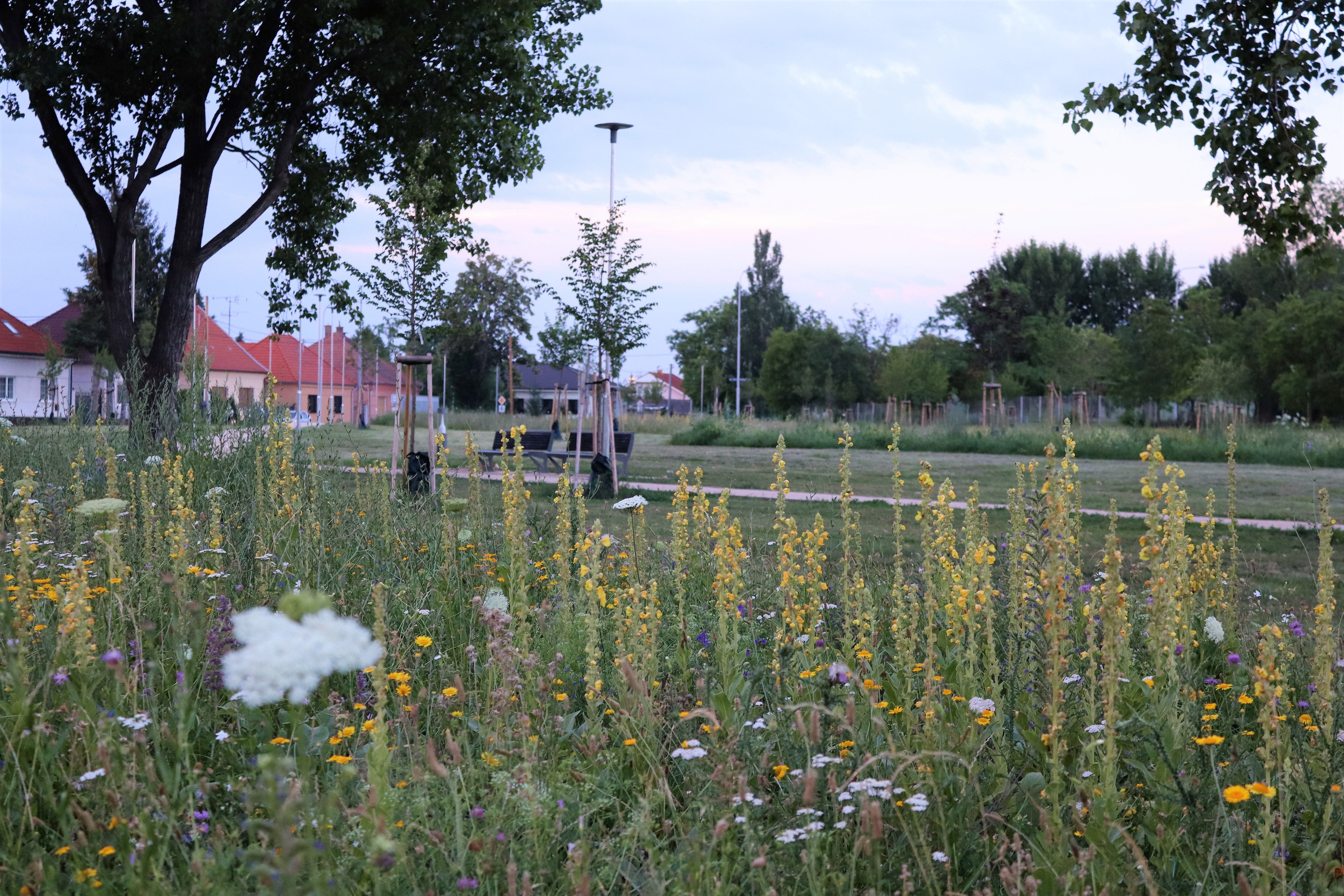 Na približne tretine územia trojhektárového parku boli založené travinno-bylinné lúčne spoločenstvá. Bolo vysadených vyše 120 nových, prevažne listnatých stromov. V parku dostali novú príležitosť lavičky, ktoré boli predtým osadené na hlavnom námestí a mobiliár bol doplnený o nové drevené lehátka (mmcité "Rivage"). Zaujímavou umeleckou intervenciou v parku sú muraly (nástenné maľby), ktoré zmenili predtým počmáranú trafostanicu na zaujímavé umelecké dielo s odkazom na význam prírody, biodiverzity a opeľovačov (autor Martin Kele, Esence Tattoo Nové Zámky). Park Hliník je prvým miestom v meste, kde boli vyskúšané nové prvky a riešenia v podobe mlatových chodníkov a kvitnúcich lúk.