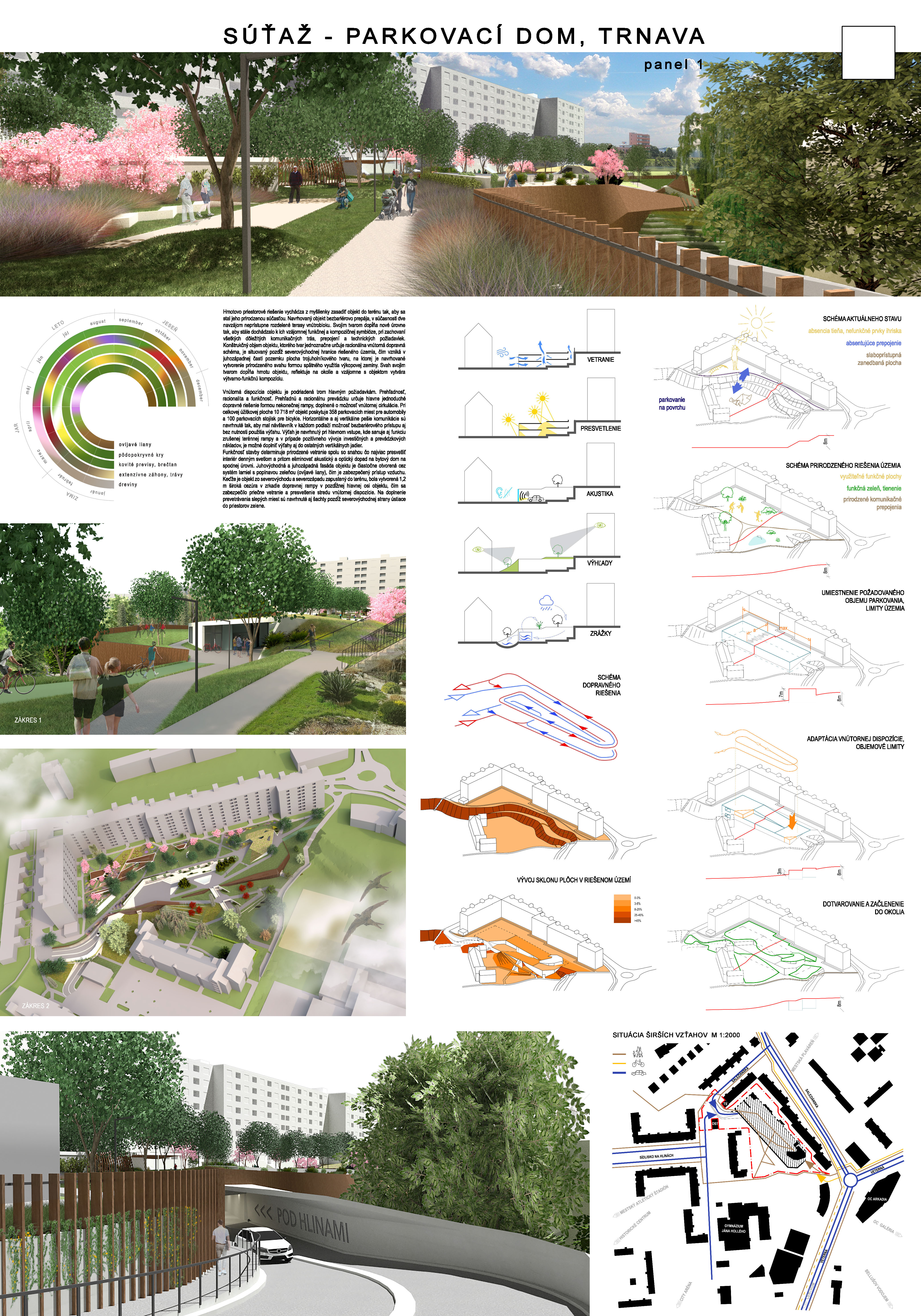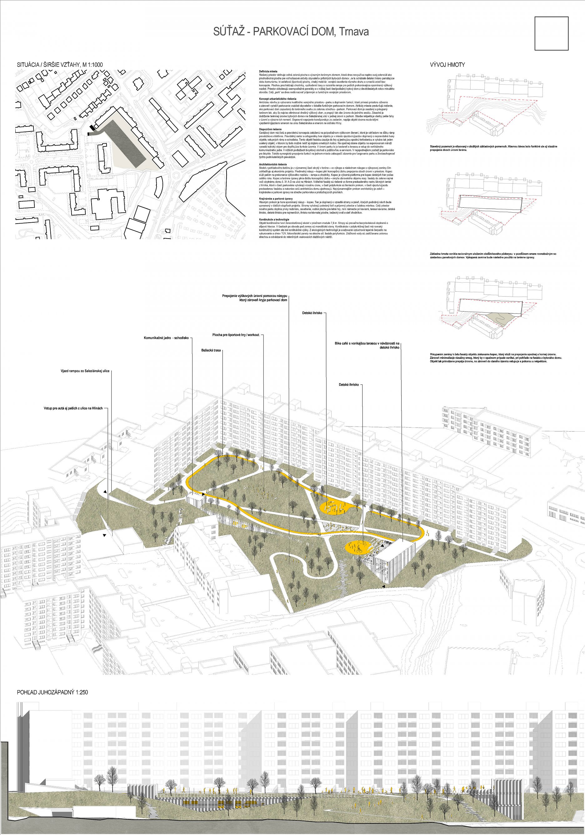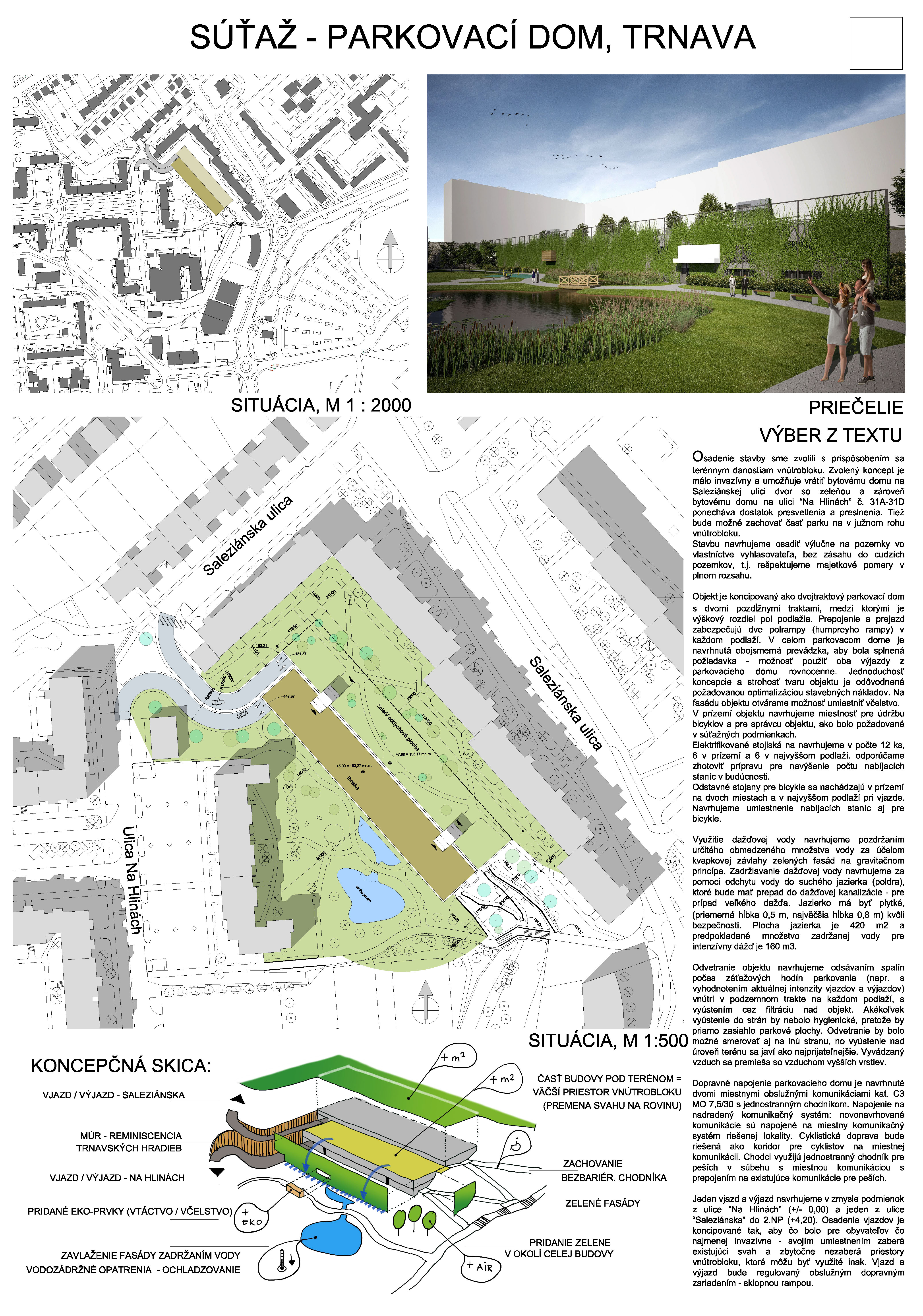 Cieľom súťaže bolo nájsť najvhodnejšie architektonické riešenie parkovacieho domu v rámci obytného súboru Na hlinách v Trnave, s predpokladanou kapacitou 300 - 350 parkovacích miest.