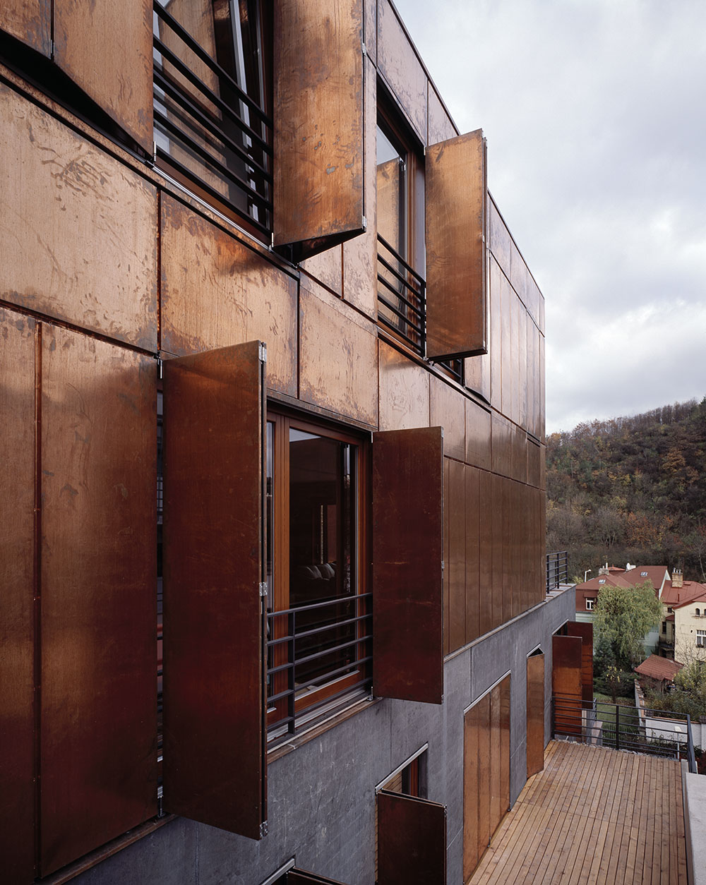 Vývoj vzhľadu medenej fasády (fotografie: Filip Šlapal, Jaroslav Hejzlar, Pavel Hnilička Architekti):