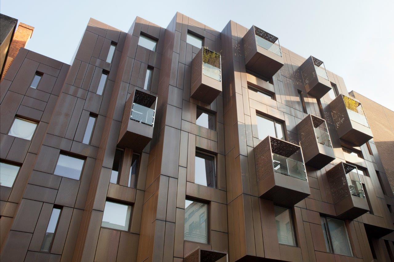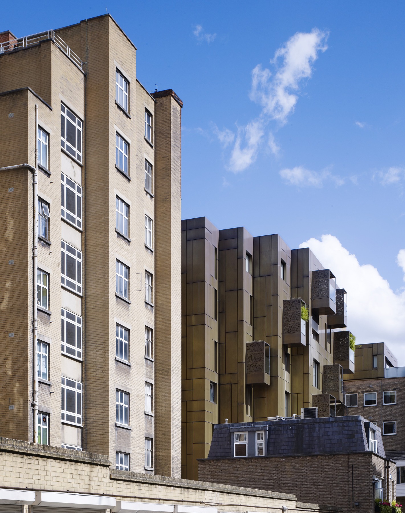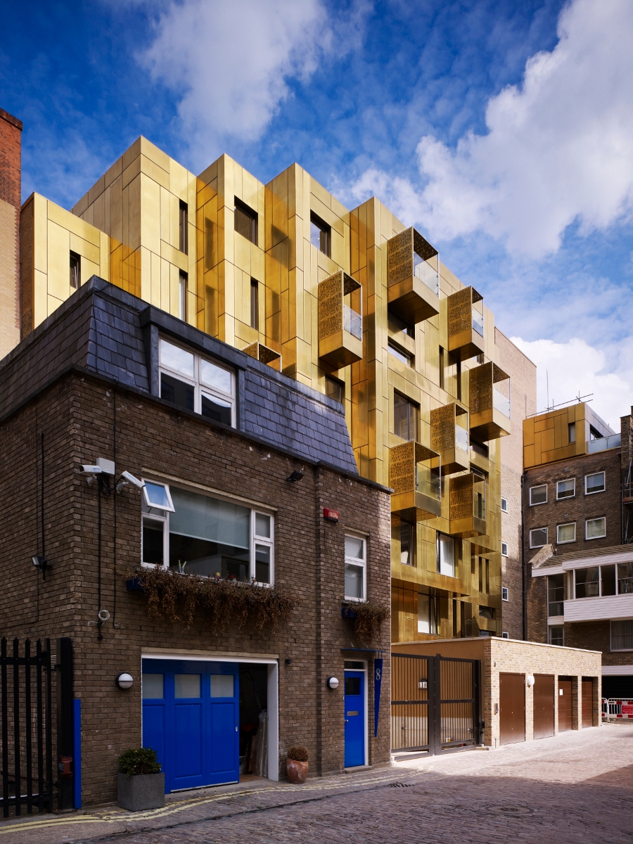 Relatíve fádny šesťposchodový bytový dom zo šesťdesiatych rokov umiestnený v srdci pamiatkovej zóny Harley Street v londýnskej štvrti Fitzrovia prešiel veľmi výraznou rekonštrukciou, ktorá rozšírila obývateľný priestor a dala budove novú identitu čerpajúcu z rozsiahleho použitia mosadze.