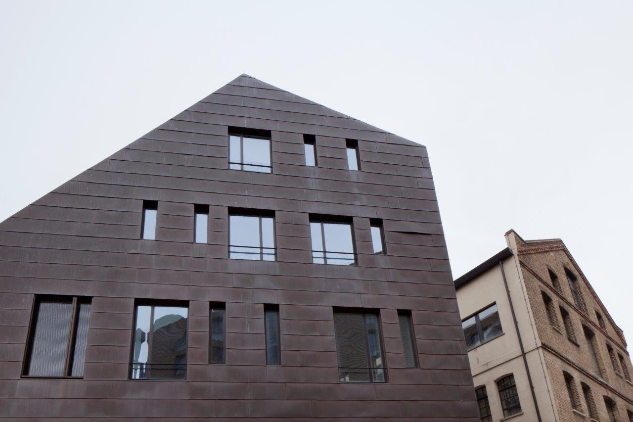 Mosadz bola zvolená kvôli svojim charakteristickým vlastnostiam a prirodzenej oxidácii, ktorá spôsobuje, že každý panel získava prirodzenú patinu. Na dosiahnutie celkového zámeru boli zvolené rozdielne pomery medi a zinku.Vznikajú tak rôzne farby - od zlatisto žltej v zadnej časti budovy až po červenohnedú pri nových horných poschodiach. Farby ladia s paletou okolitej architektúry, ich výraz sa postupne utlmuje a splýva s farebnými tónmi okolitých stavieb. Pri samotnej voľbe bolo dôležitým hľadiskom aj to, že použitý materiál nezaťažuje životné prostredie, možno ho v plnej miere recyklovať.