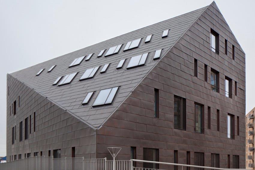 "Sme spokojní s celkovým výrazom fasády. Detaily, spoje a nárožia sú svieže a čisté, horizontálne usporiadanie plátov a striedavé vertikálne spoje dobre ladia s nepravidelne umiestnenými oknami rôznej veľkosti. Jemné vlnenie plátov odľahčuje a zmierňuje ’novosť’ prístavby, ktorá tak dobre ladí s patinou historickej budovy. V spolupráci s dodávateľom krytiny sme pozorne riešili detaily, čo sa vyplatilo na konečnom vzhľade budovy.", hodnotí riešenie architekt Chris Hodson z Pollard Thomas Edwards Architects.