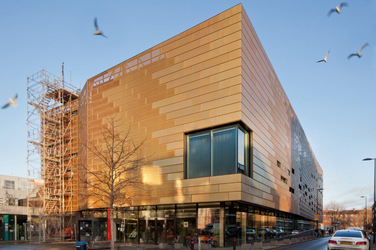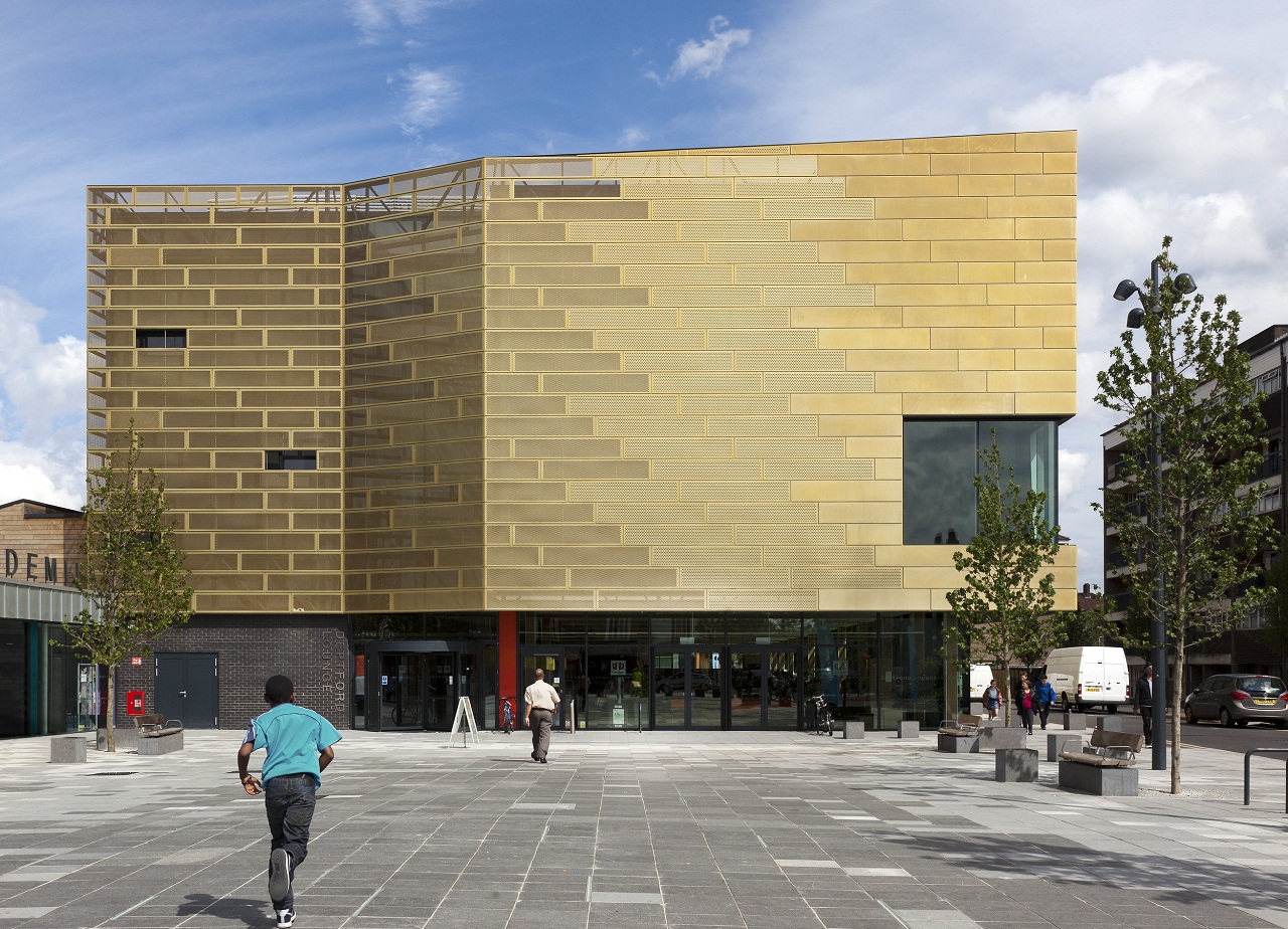 Budova symbolicky aj funkčne využíva svoje perforované fasády zo zlatej medenej zliatiny, za ktorou sa skrýva pestrý život nového spoločenského centra v mestskej časti Deptford. Architekti umiestnili pestrý programový obsah za jednoliatu kulisu vytvorenú polotransparentnou lesklou fasádou.
