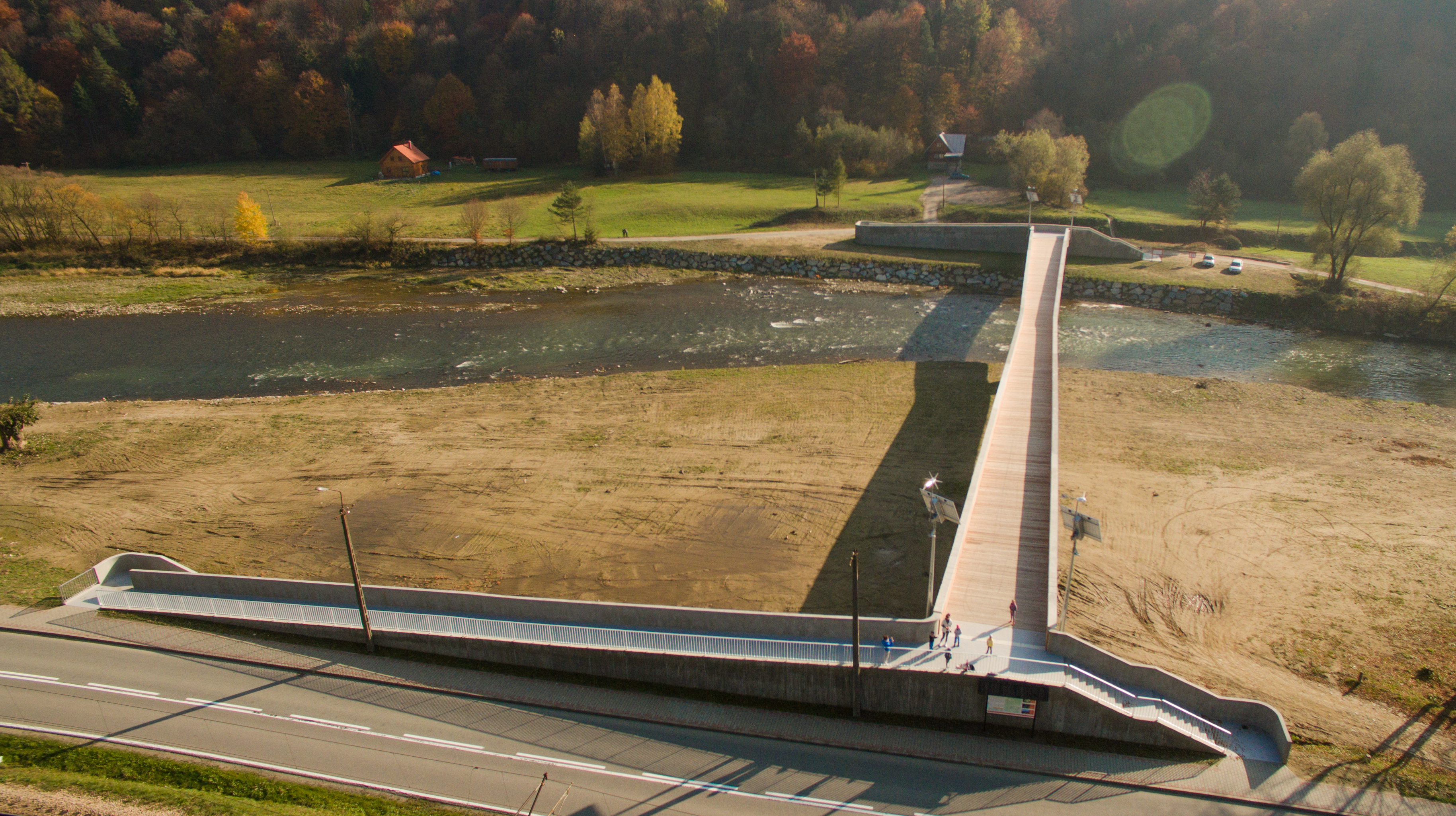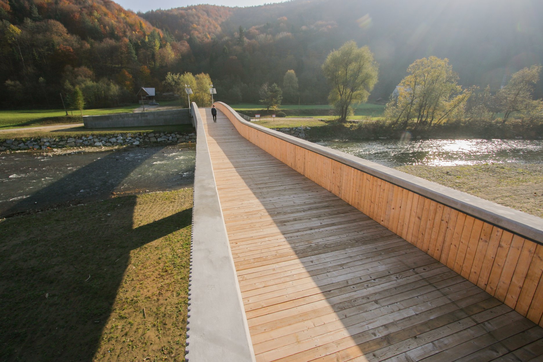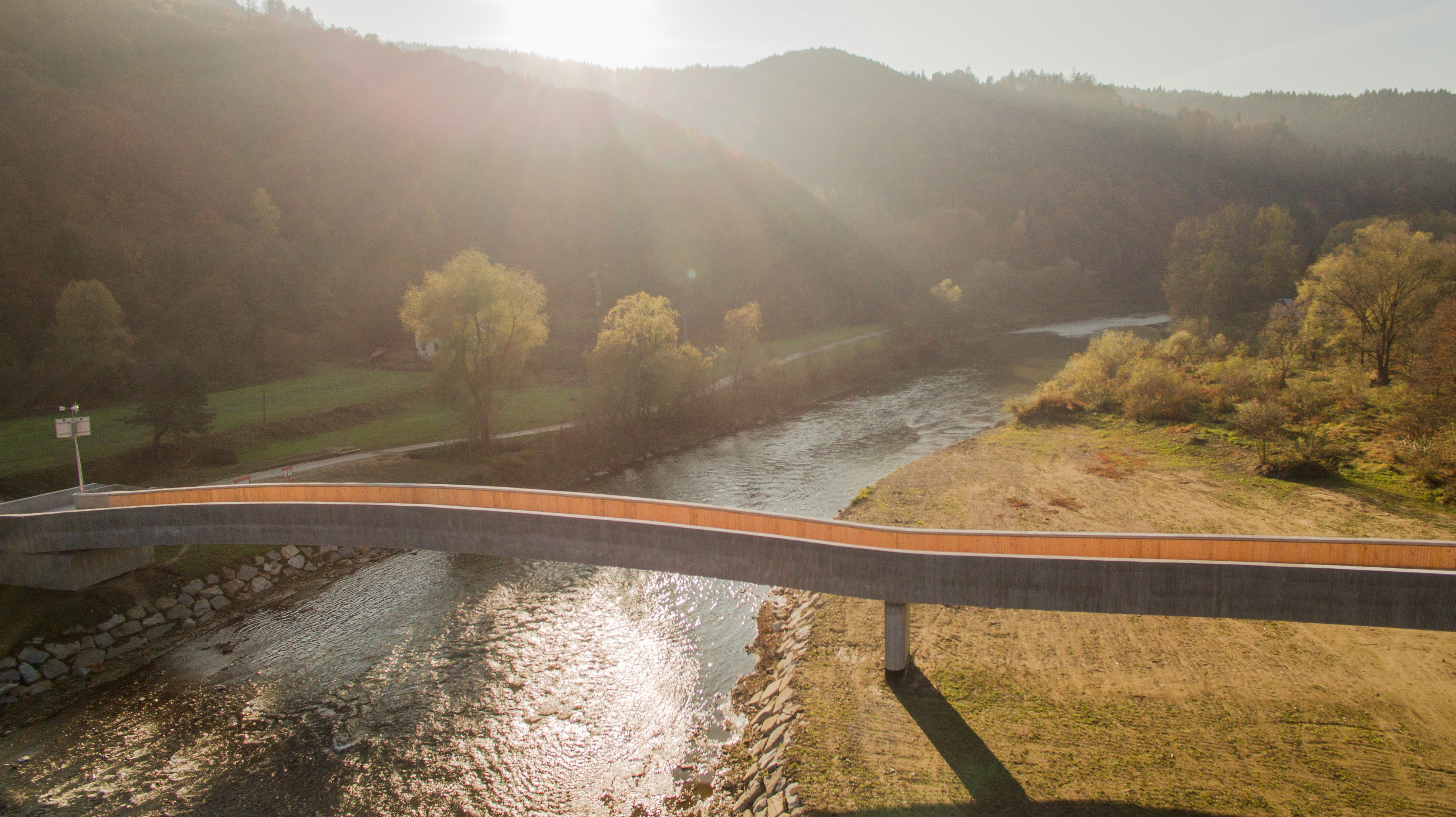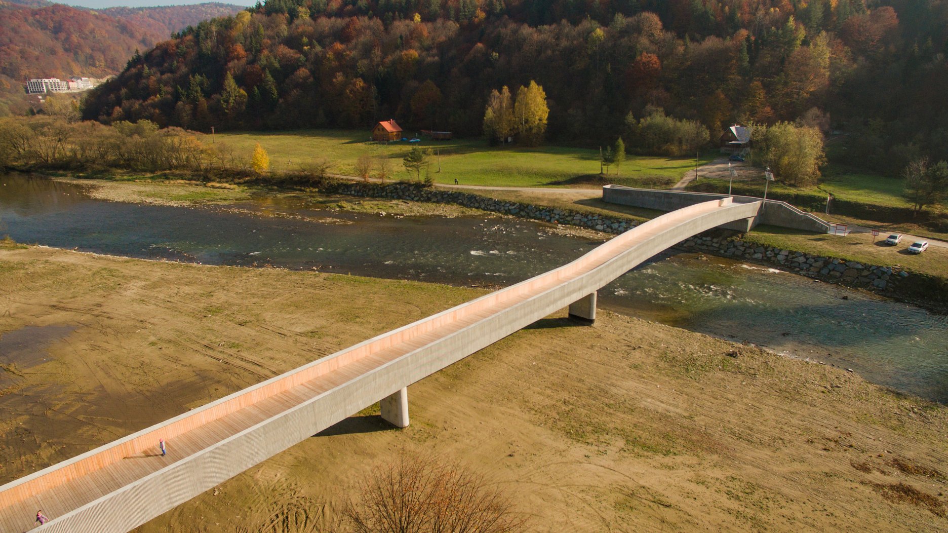 Architektonický koncept je postavený na binárnosti  kompozície premostenia. Lávka sa skladá z dvoch svojbytných elementov: oblúka a úsečky, ktoré sú zjednotené do jedného celku. Toto riešenie okrem roviny symbolickej a znakovej vyplýva z charakteru premostenia, ktoré premosťuje rieku Poprad a záplavové územie na pravom brehu. Preklenutie vodného toku oblúkom s podporami na oboch brehoch tvorí jeden prvok a premostenie záplavového územia na poľskej strane spojitým nosníkom tvorí prvok druhý. Zjednotenie týchto dvoch elementov tvorí most kompozične vrcholiaci  nad stredom rieky ktorá je hranicou medzi dvoma samostatnými štátmi zjednotenými v spoločnej Európe. Navrhovaná lávka sa vyznačuje meniacim sa vertikálnym i horizontálnym profilom.