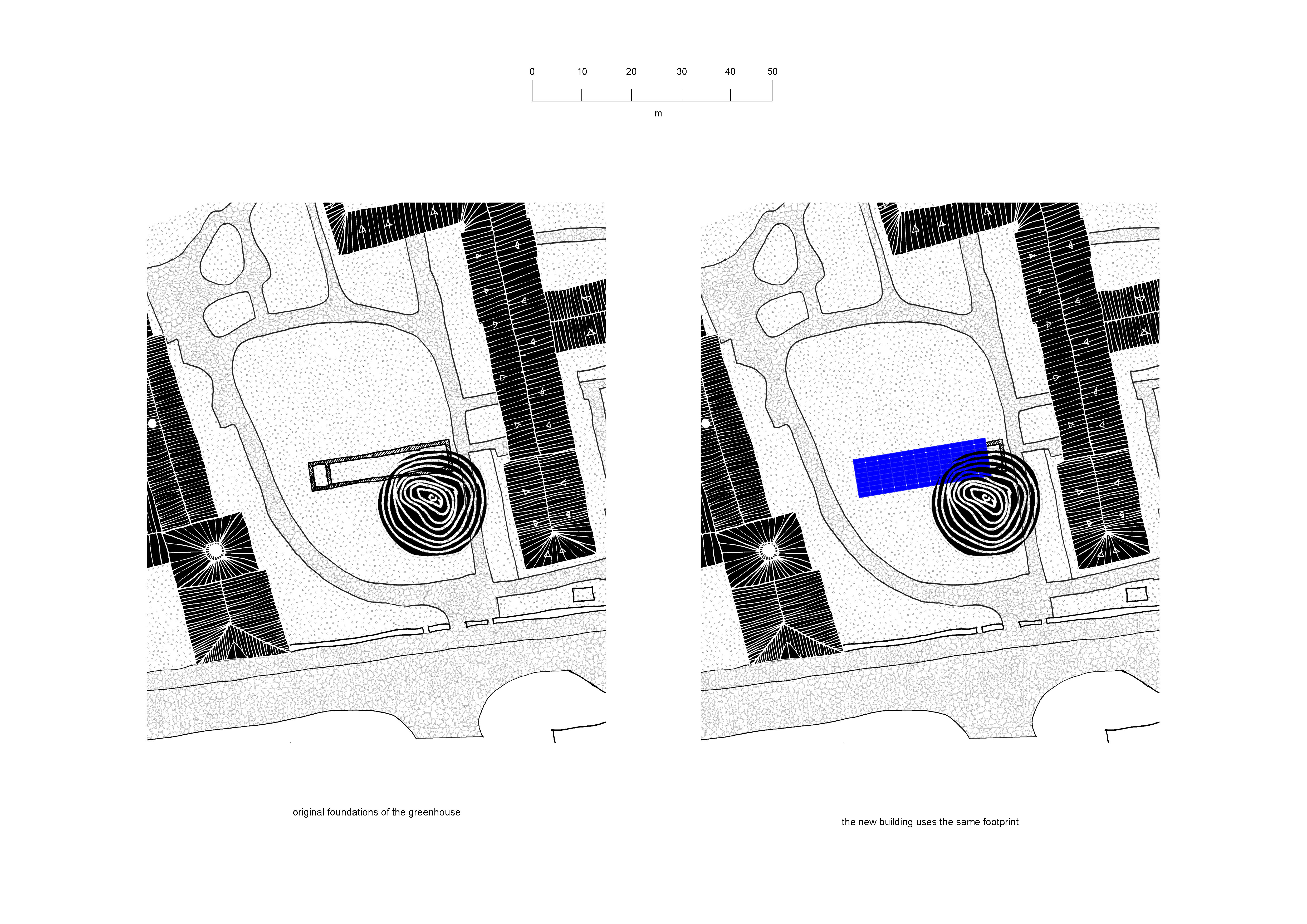 Návrh na znovuzrodený Mendelov skleník čerpá z archívnych materiálov a v mnohom vychádza z pôvodnej podoby stavby. Nová interpretácia kopíruje originálny pôdorys a orientáciu.