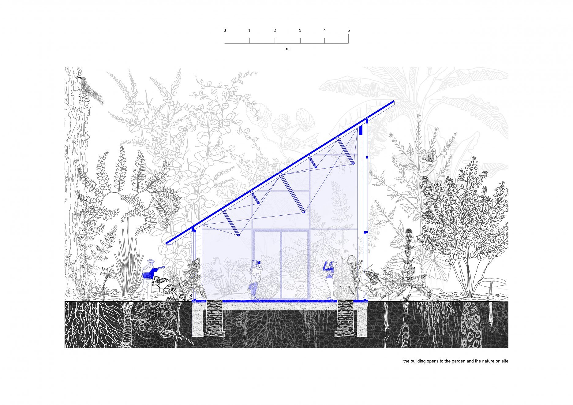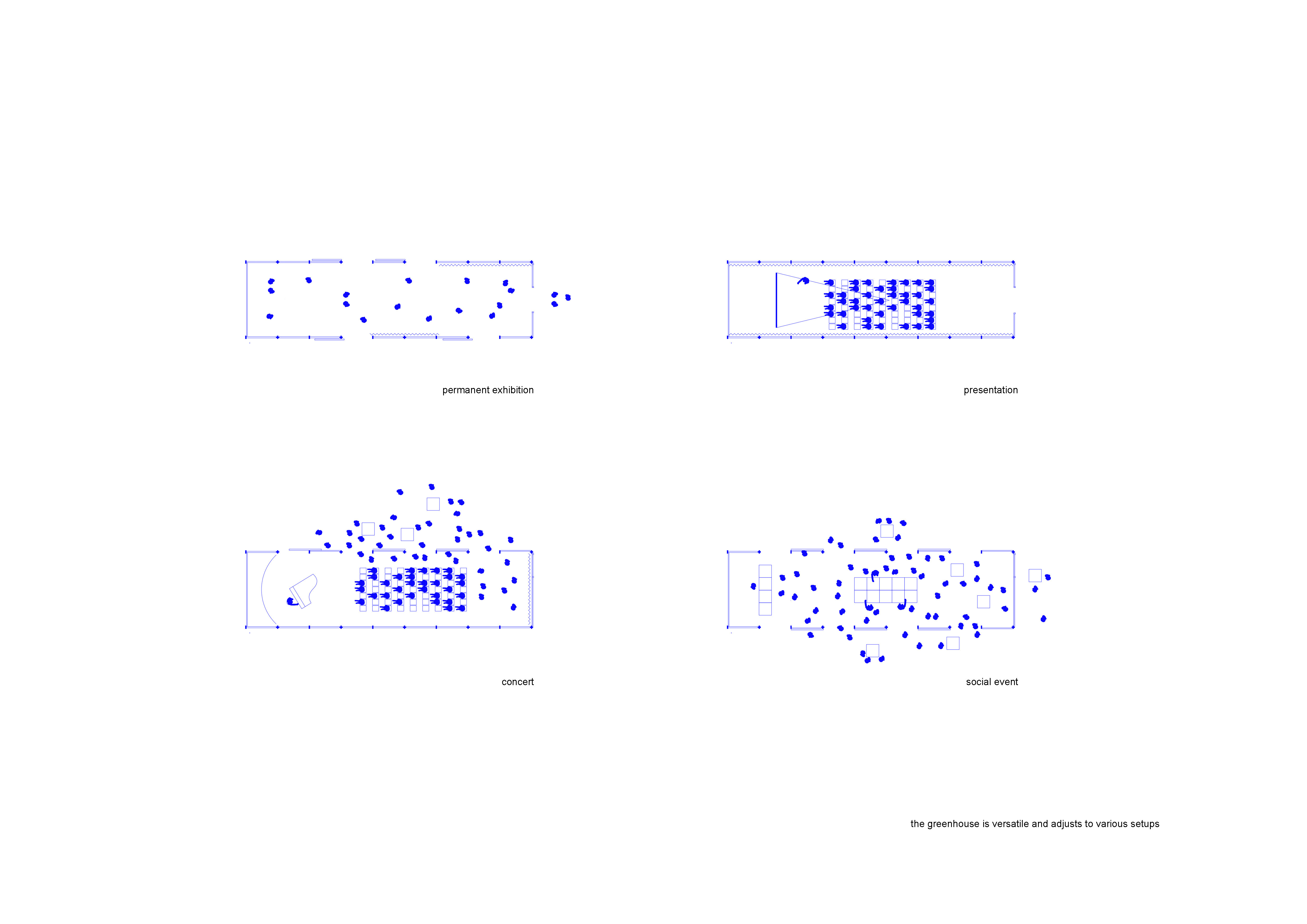 Skleník je otvorený do parku, s cieľom prilákať do kláštorných záhrad návštevníkov z radov laickej aj odbornej verejnosti. Návrh počíta s kompletne otvárateľnými bočnými stenami a uložením všetkých technológií mimo objekt, čo umožní splynutie s exteriérom, bez výrazných vizuálnych bariér.