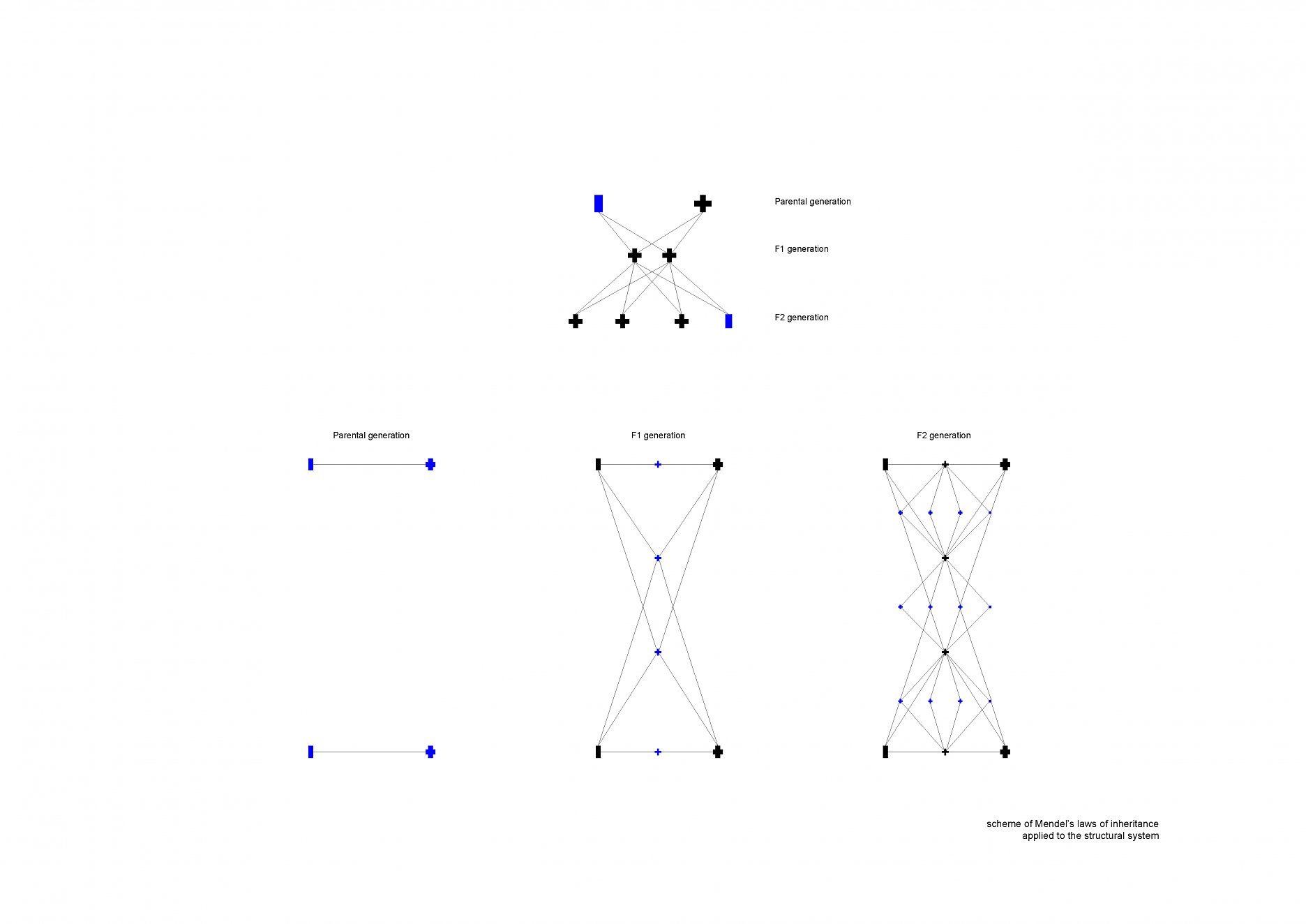 Architekti sa pri navrhovaní novej strešnej konštrukcie “pohrali” s tromi genetickými princípmi: ...“systém je zložený z niekoľkých druhov stavebných prvkov od najväčších po najmenšie, ktoré svoje vlastnosti dedia podobne ako Mendelov hrach. Väčšie množstvo elementov nám umožnilo subtílnejšiu konštrukciu, než by bola štandardne možná,”... vysvetľuje architekt Michal Krištof.