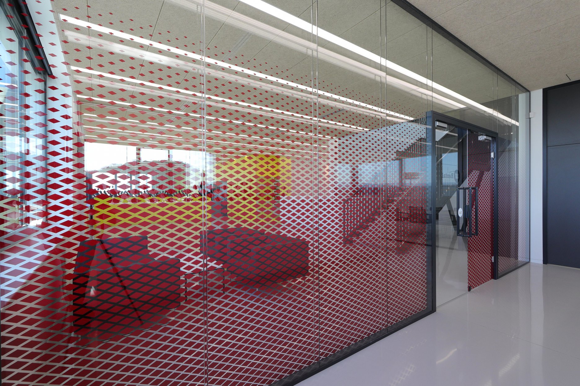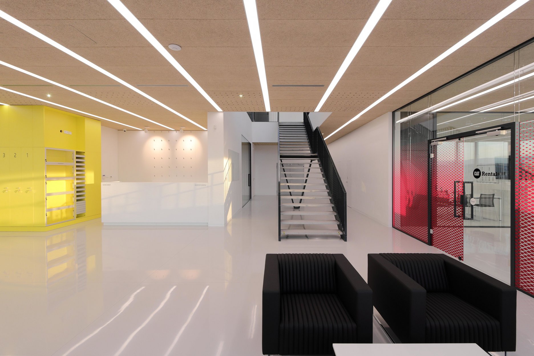 Dispozičný program je radený postupne a logicky od vstupu klientov do areálu, cez pohyb jej pracovníkov, až po výrobné priestory naviazané na vonkajšie manipulačné plochy. Rôzne výškové požiadavky na jednotlivé časti stavby sú premietnuté do kaskádovito odstupňovaných plochých striech, klesajúcich od vyšších servisných boxov smerom k administratívnej prevádzke, parkovisku a vstupu do budovy. Stavba tak neobsahuje zbytočne vysokú administratívnu halu, no vzdušný dojem z interiéru zostáva zachovaný predovšetkým v nadväznosti na schodiskovú časť so strešným svetlíkom. Fasády tvoria v administratívnych blokoch tvoria pásové okná, orientované k vstupu a plochám v predpolí stavby. Všetci pracovníci tak majú prehľad o dianí okolo nich a pohybe klientov.