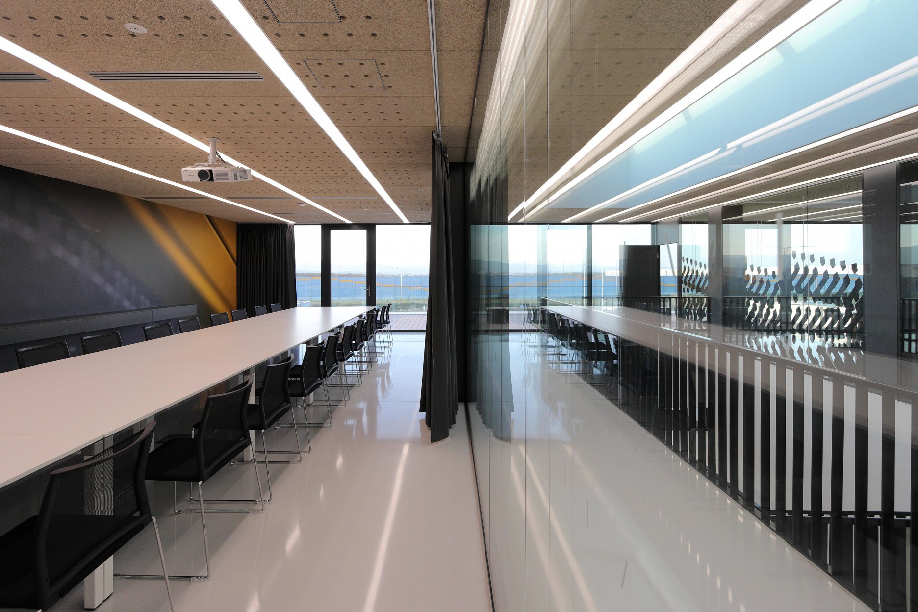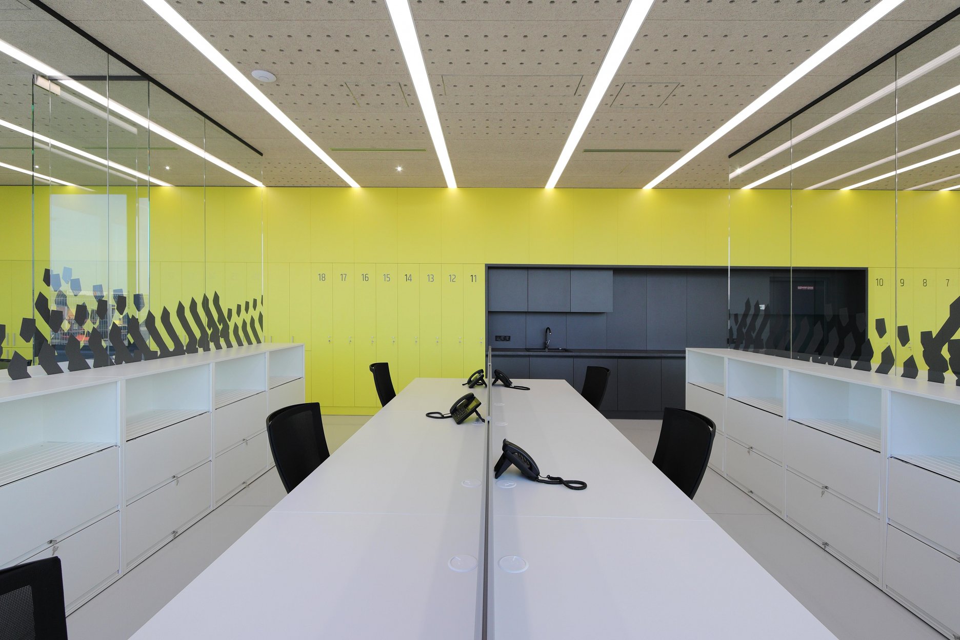Neoddeliteľnou súčasťou identity stavby je autorsky navrhnutý farebne oživený interiér a zapamätateľný grafický informačný systém.