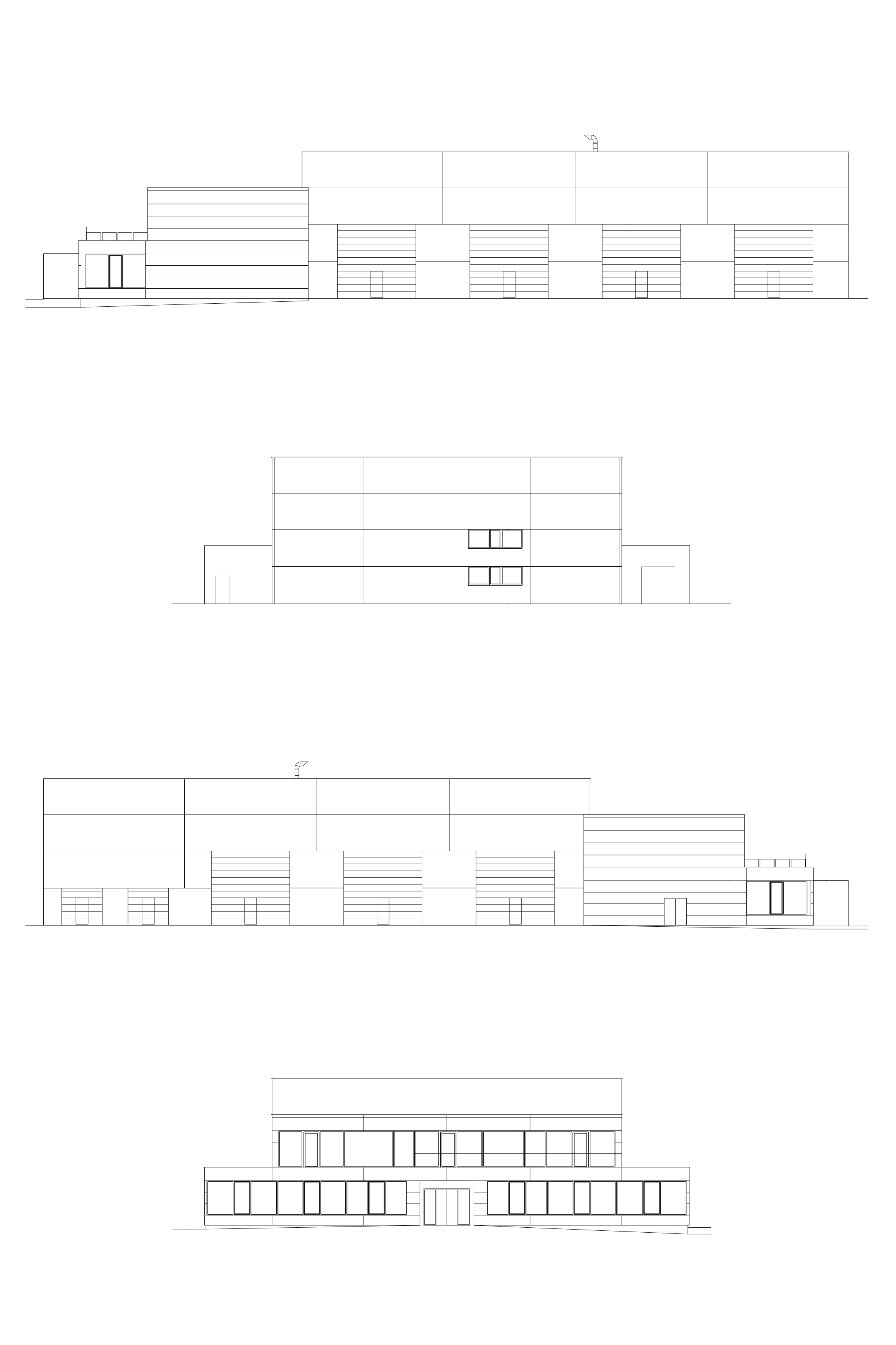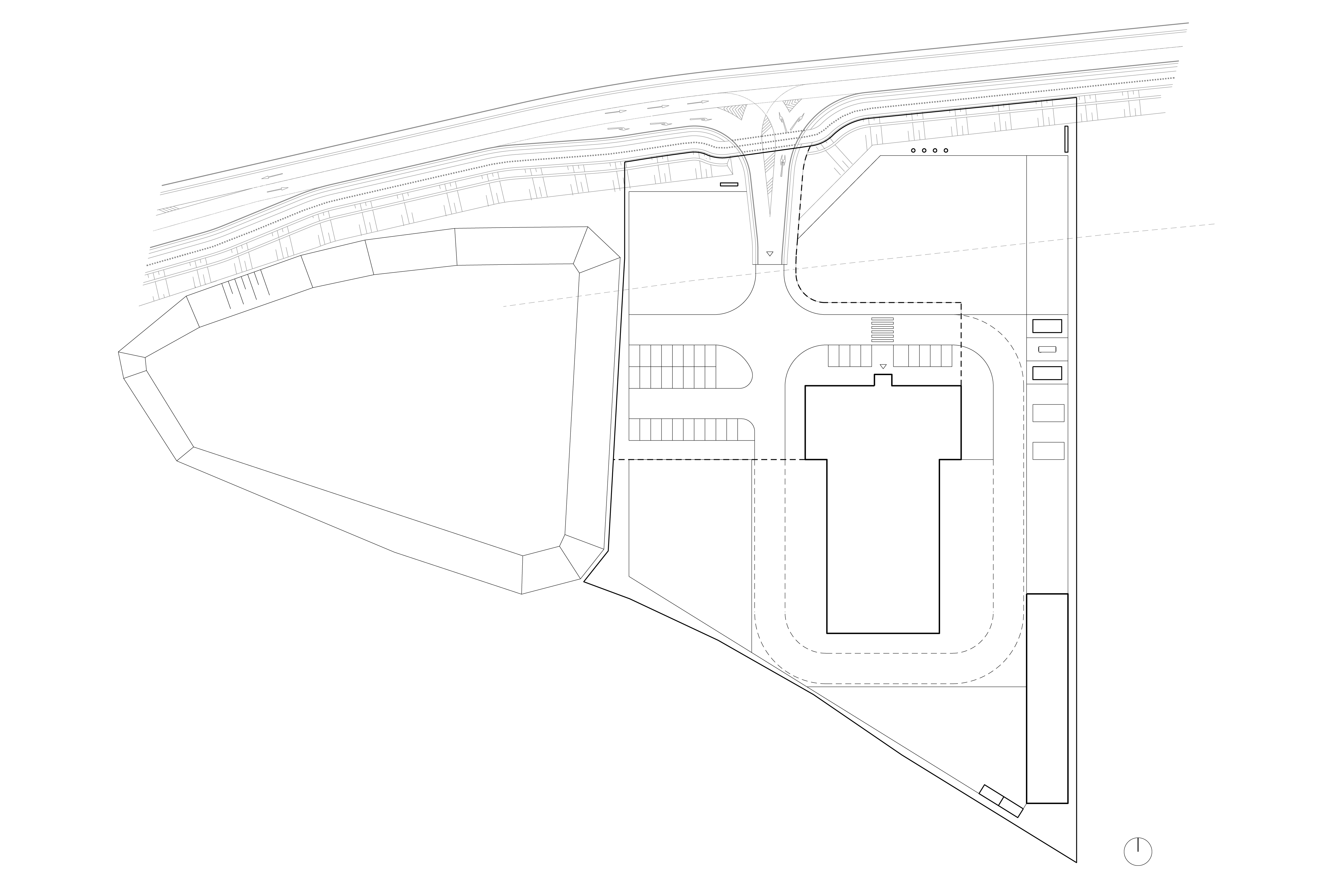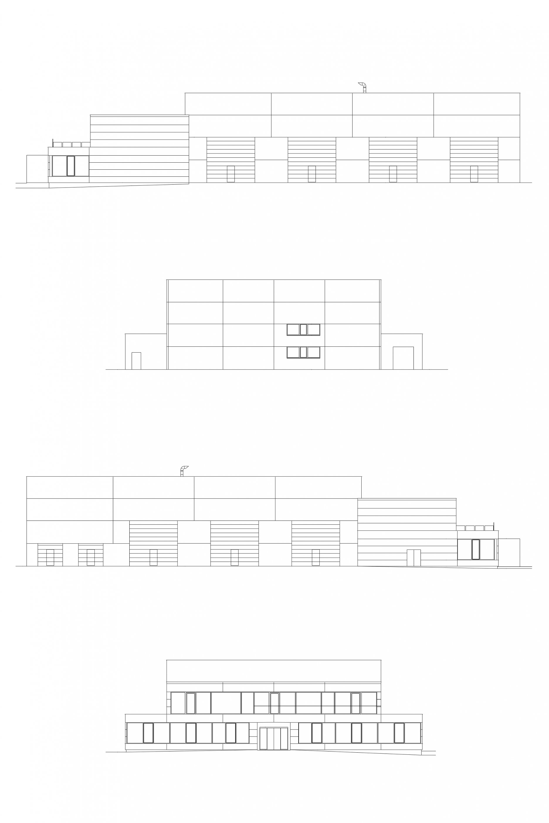 Proporcia a dispozičná logika hlavnej prevádzkovej budovy vychádza z potreby zoradiť vedľa seba viacero obojstranne prejazdných servisných boxov a zapojiť ich do systému bezkolíznej prevádzky areálu. Servisné boxy sú napojené na zázemie pracovníkov servisu, sklad náhradných dielov, ako aj administratívne, technické a prevádzkové priestory.