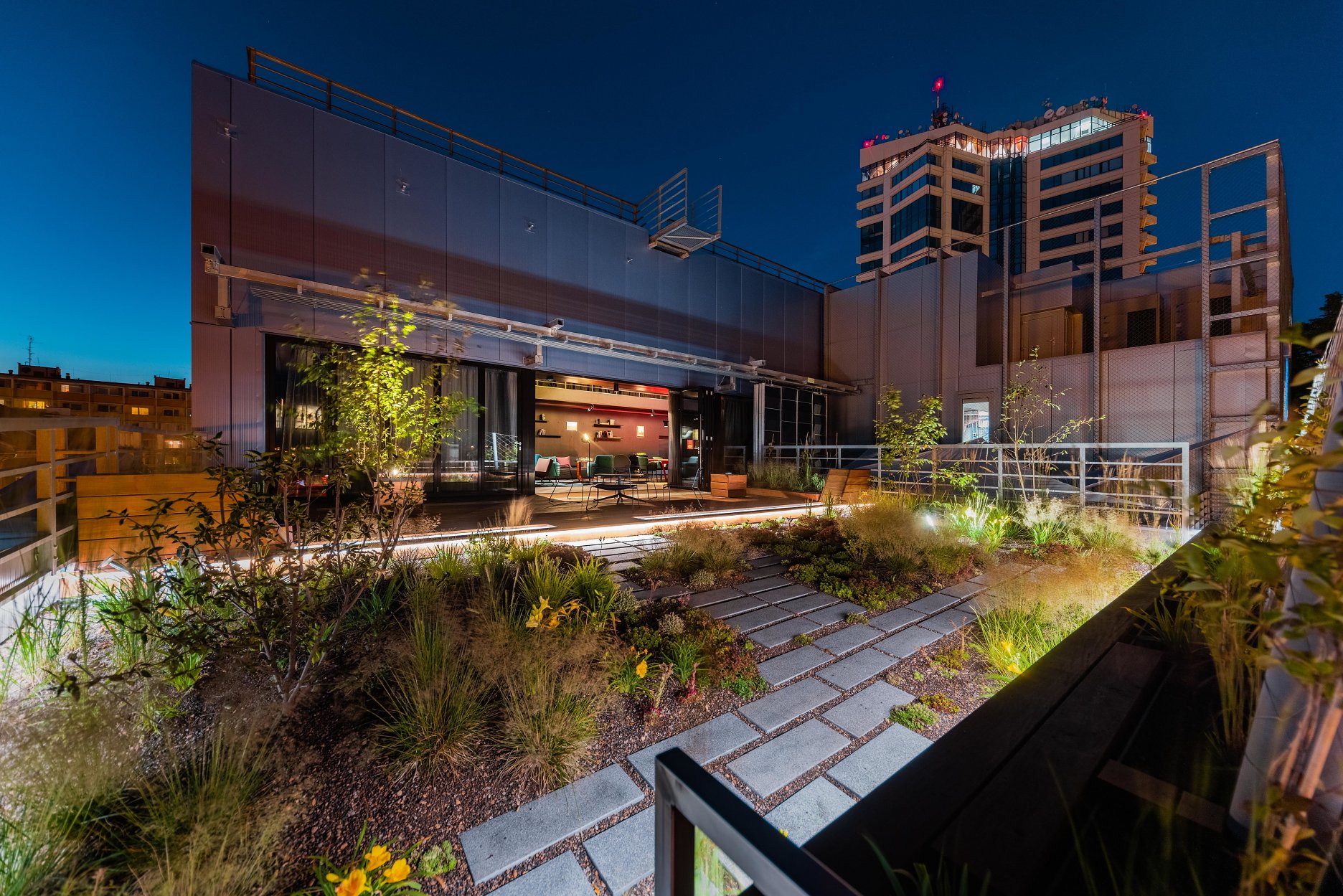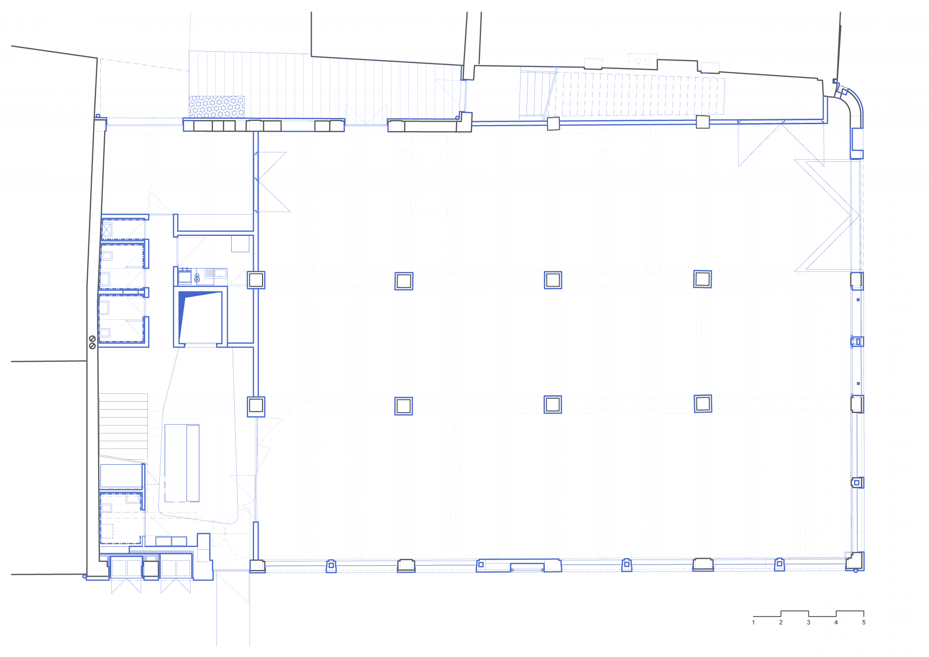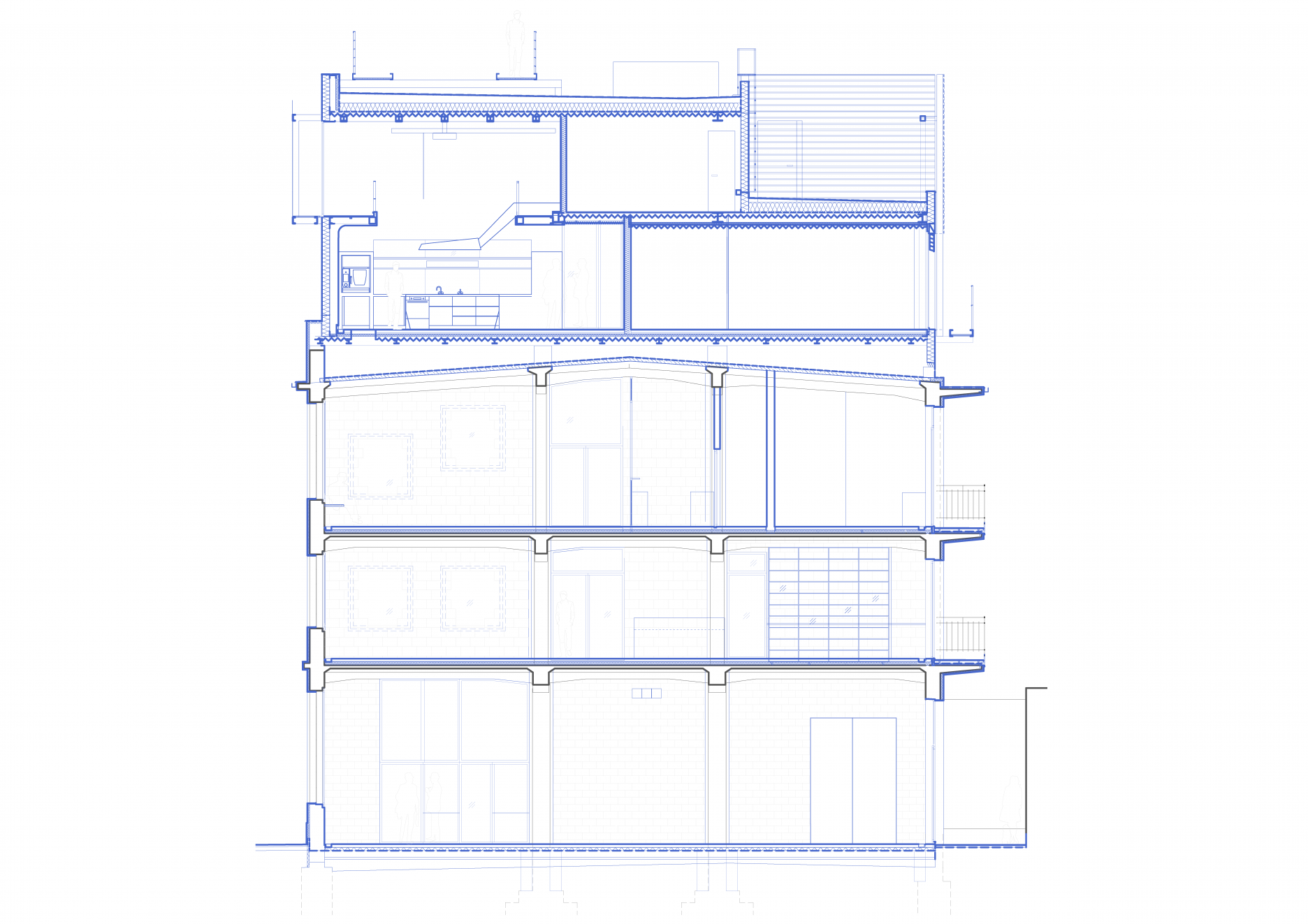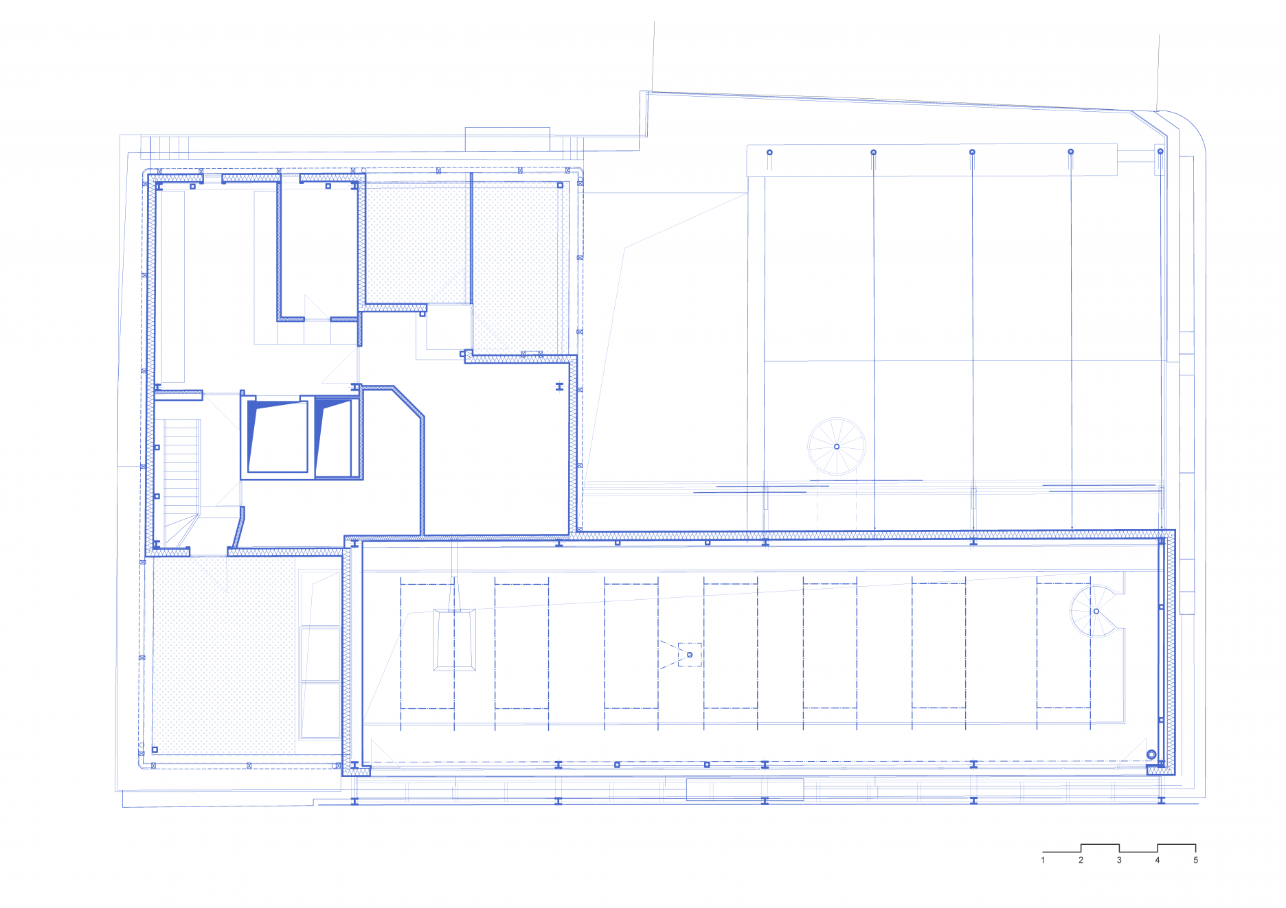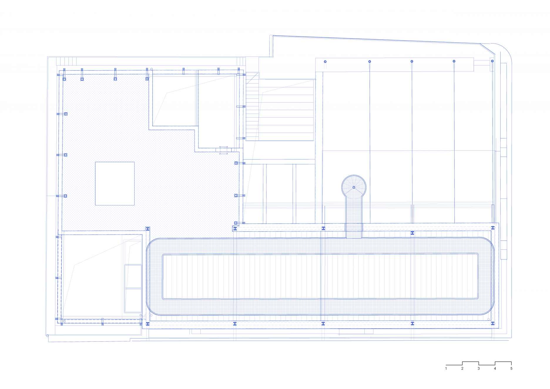 Historický skelet v spojení a ľahkou oceľovou nadstavbou. Otvorená dispozícia s priehľadmi cez celý objekt, vloženie vertikálnych spojení, nové otvorené átrium spájajúce kaviareň so strešnou záhradou… Nová funkčná náplň s galériou, coworkingom, a kaviarňou.