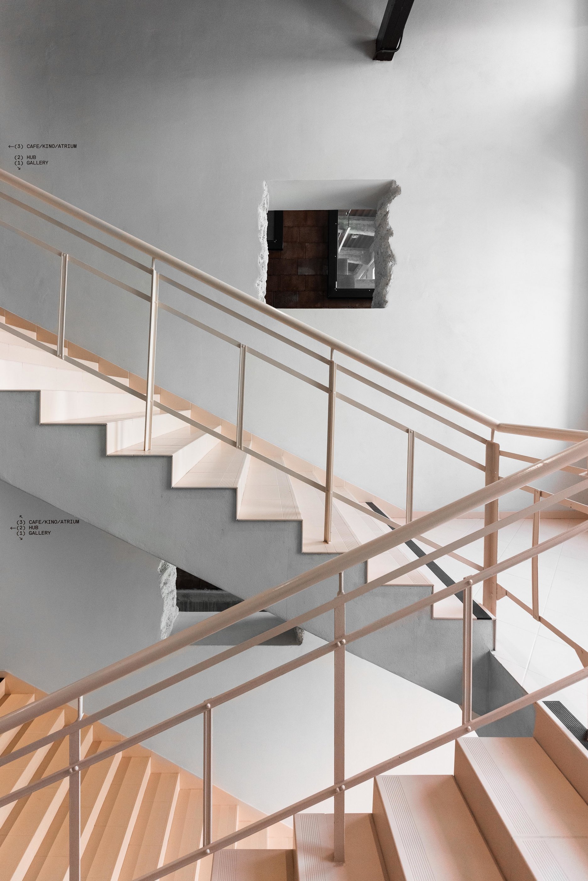 Program byl od začátku jasný. Galerie musela být striktně na terénu, aby měla blízko k lidem. S ulicí je spojena s okny a velkými vraty. Betonové hrubé plotny před vstupem mají evokovat nový červený koberec a před celou vstupní fasádou nesmí, až na výjimky, parkovat auta. Na fasádě přízemí je legální graffiti stěna – náplň budovy se snaží vystupovat vně a vtahovat kolemjdoucí. Na dalších patrech je coworkingové centrum, kavárna s terasou, multifunkční sál, bytu pro rezidenčního umělce a loft v nástavbě.