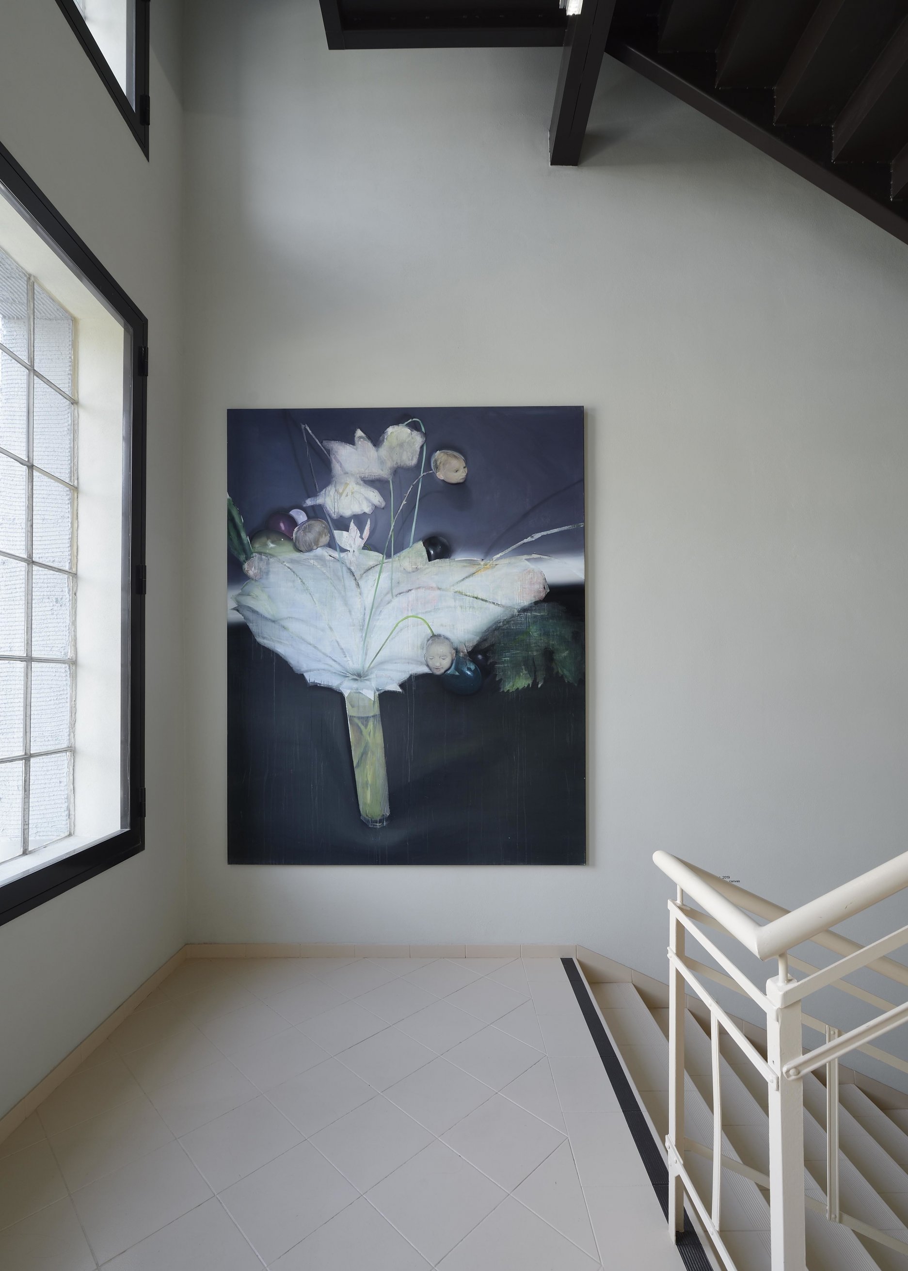 Náš loft je bytem pro milovníka umění, má evokovat nový salon společenské elity, odkazuje na salon měšťanských bytů konce 19. století, například použitím dřevěné zdobné podlahy. Vše vyrůstá z podlahy, prostor je zde jevištěm dění. Převýšení s ochozem dává návštěvníkovi možnost pozorovat obrazy/ objekty na jevištních tazích – malé obrazy jsou na pozici blíže, velká díla dále. Servisní strop i zadní lávka jsou plné technologie. Jsou pozadím, proto jsou natřeny černou divadelní barvou jako v provazišti divadla. Tedy neexistují. Obytný prostor loftu se otevírá nejdříve do zahrady, přes ni pak do střešní krajiny a vyhlíží estakádu silnice a předměstí. Horní ochoz je paluba nad městem. Je vizuálně blízko lávkám na technologických celcích. Ne lehce dostupná.