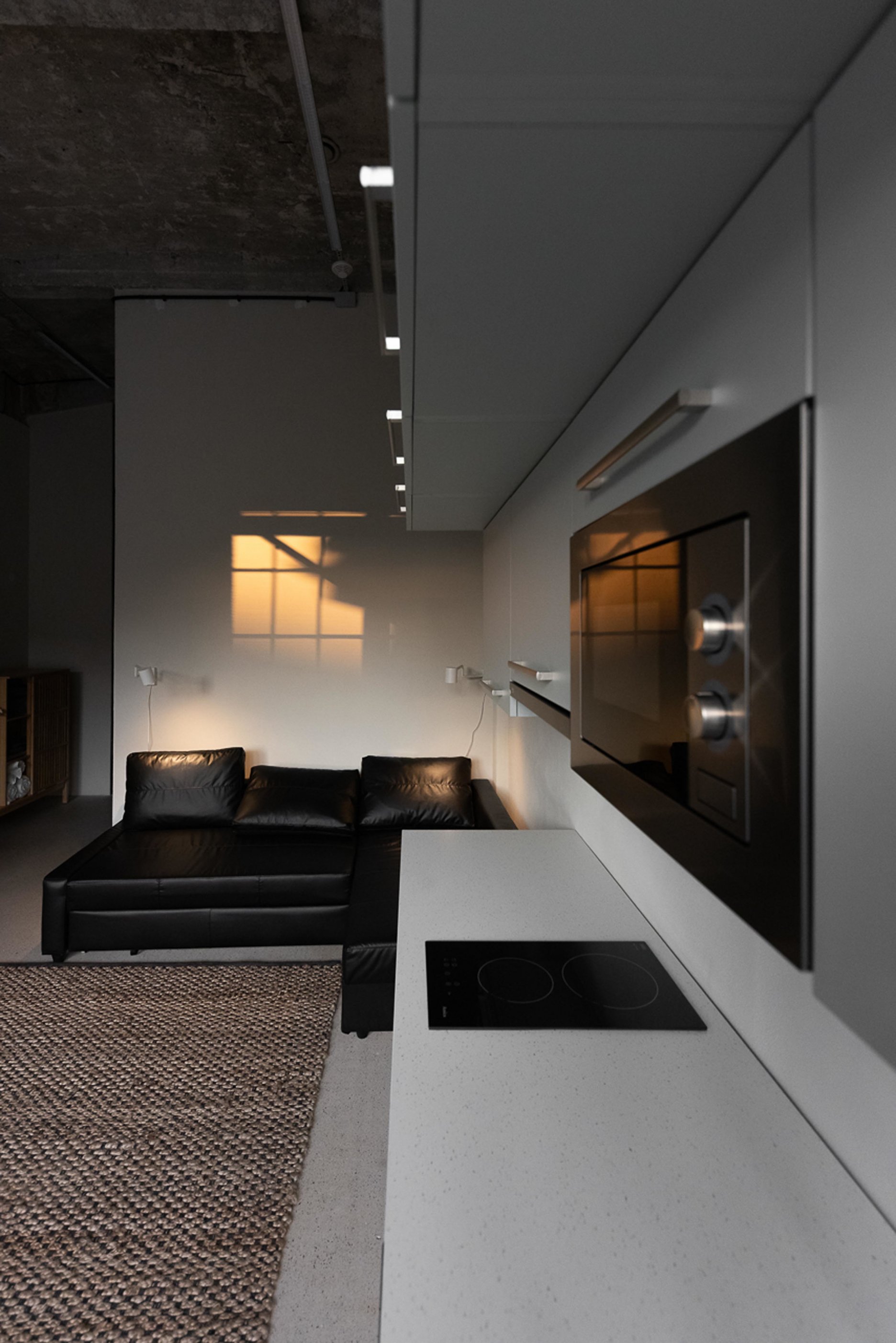 Stavebně je loft ocelová nástavba s pláštěm z obyčejného sendvičového panelu. Chtěli jsme stavbu pragmatickou, použít obyčejné materiály jako současné výrobní a skladovací haly. Schválně obyčejný, ne výjimečný. Hozená rukavice luxusním materiálům. Provokace – může být vysoká architektura salonu z něčeho tak průměrného? My myslíme, že ano.