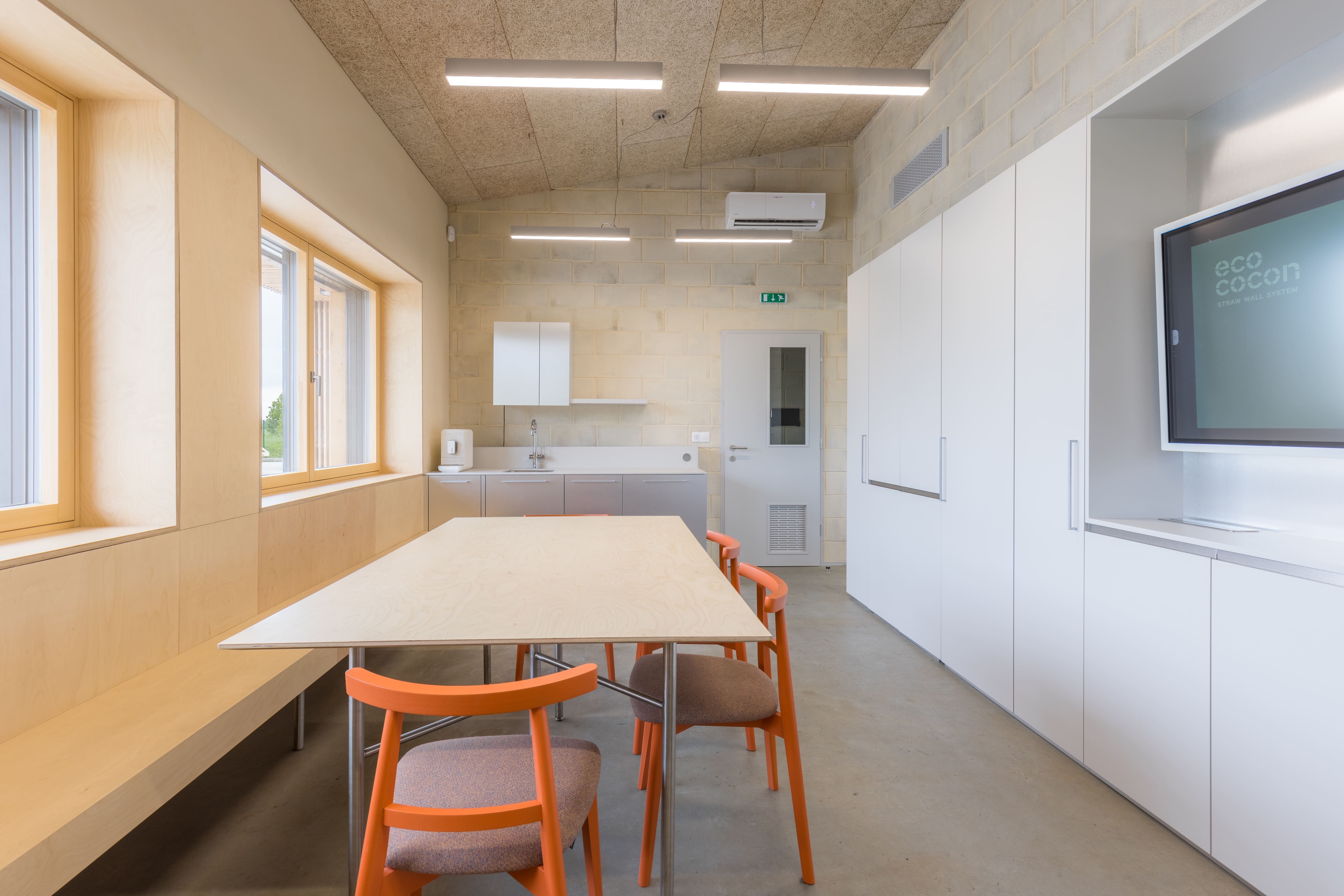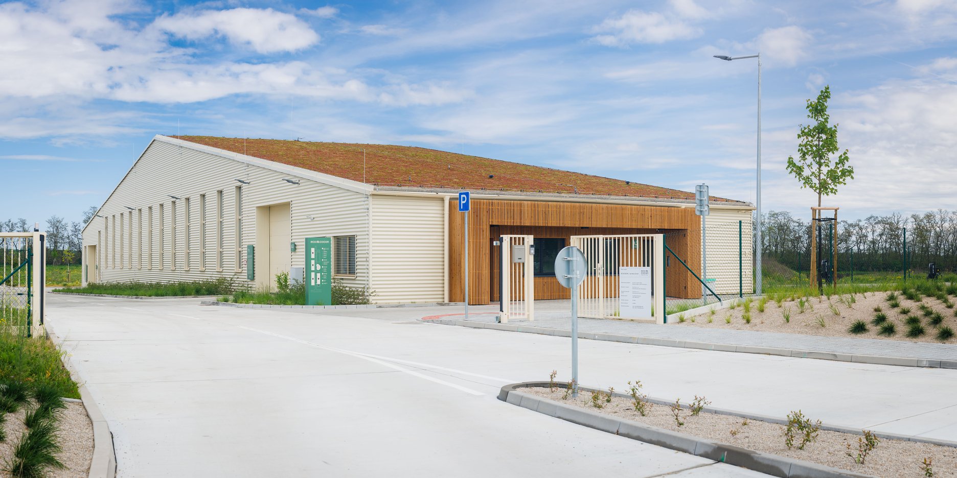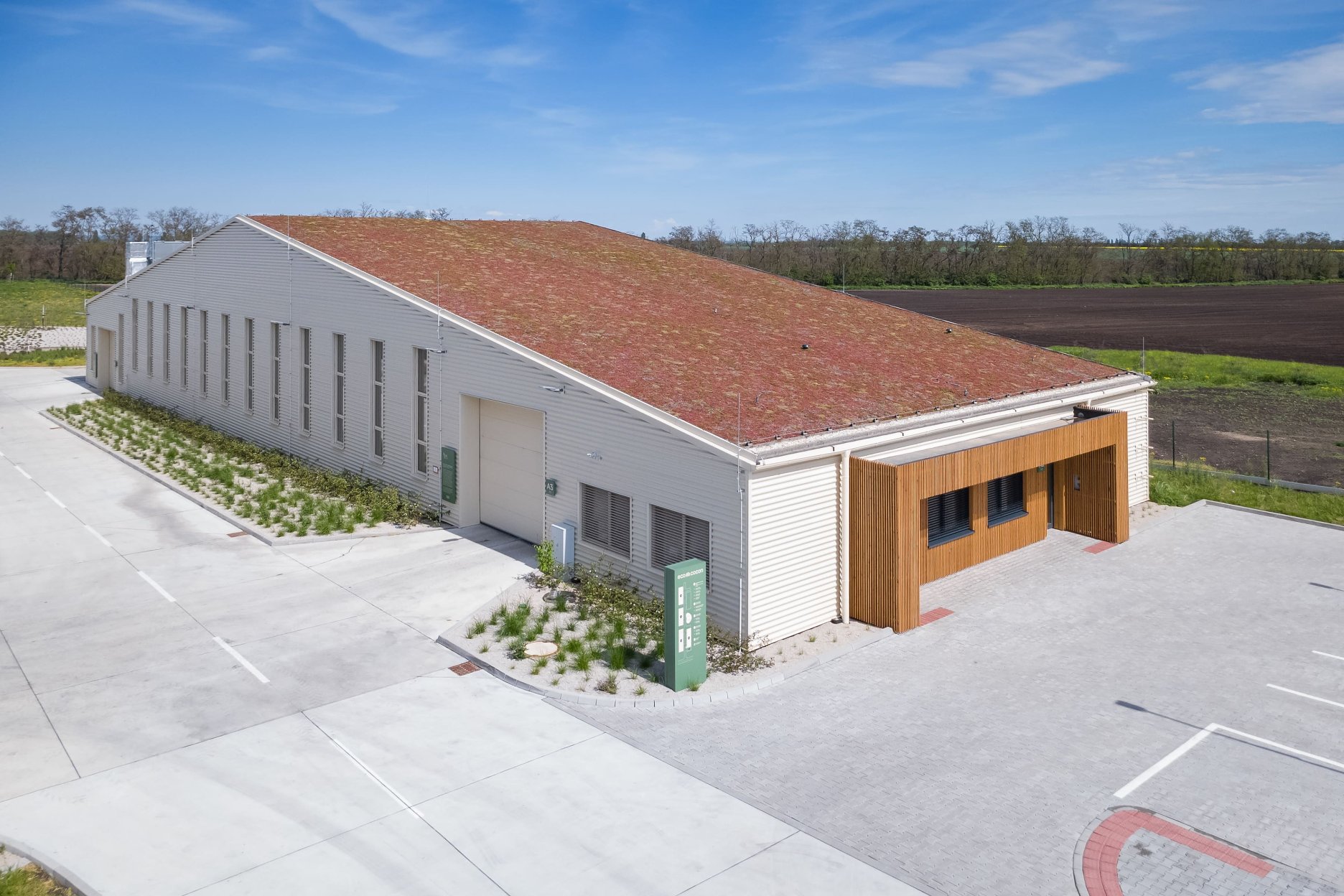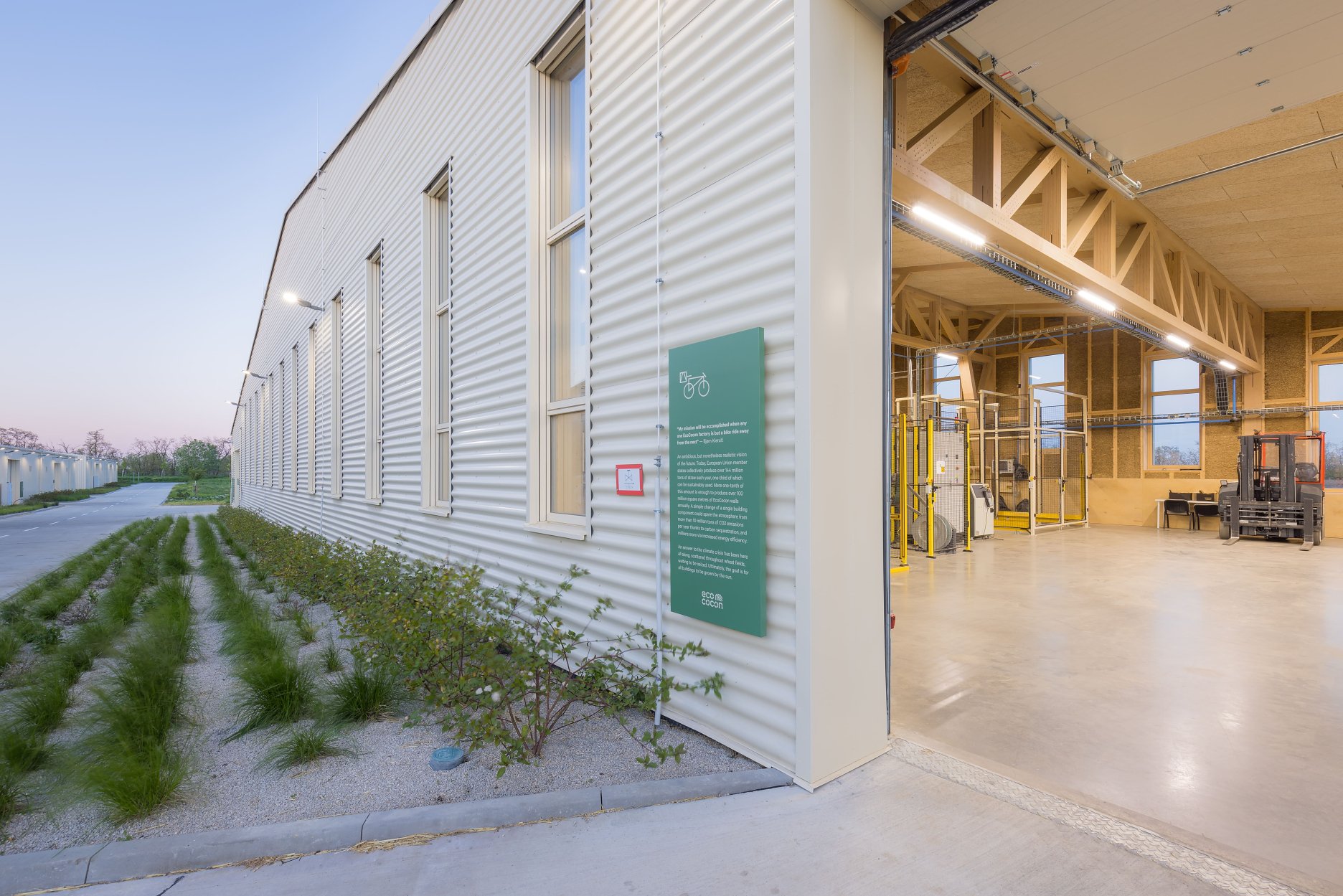 Hala je súčasťou pilotného projektu automatizovanej výroby slamených panelov EcoCocon, s dôrazom na zdravé a prírodné stavebné materiály, nízku uhlíkovú stopu a cyklické hospodárenie so zdrojmi.