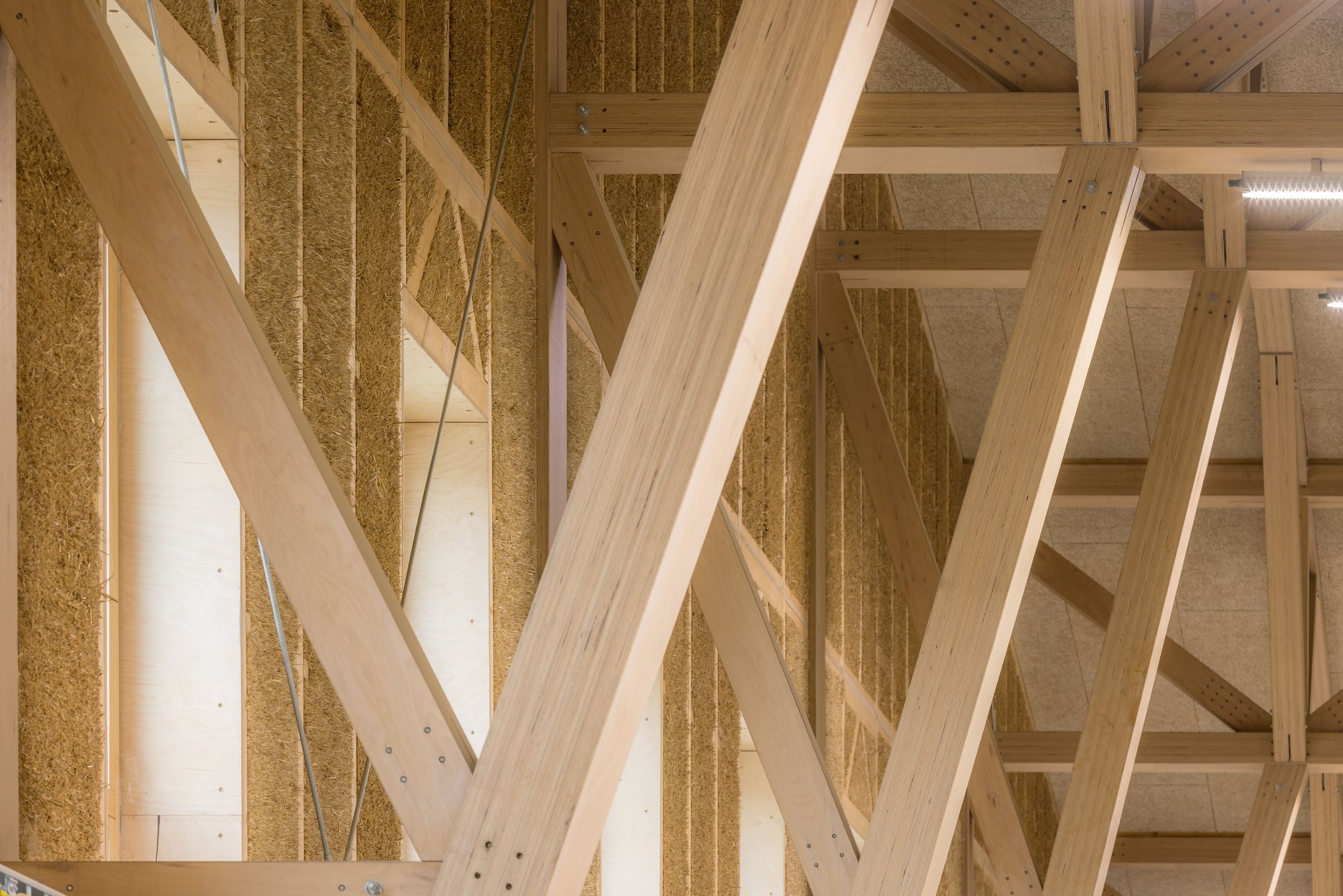 Zároveň je ukážkou technológie, ktorá sa v nej vyrába – steny tvoria slamené panely EcoCocon. Vďaka tepelnoizolačným vlastnostiam slamených panelov a vďaka tesnej obálke (BDT 0,14 1/h) sa vo výrobnej časti nevyužíva kúrenie ani chladenie. Nosnú konštrukciu dopĺňajú nosníky z tvrdého dreva Baubuche a strechu tvorí extenzívna zeleň. Architektonické riešenie haly vychádza priamo z funkčných požiadaviek výrobného procesu. Objem budovy je optimalizovaný tak, aby presne zodpovedal potrebám interiéru a minimalizoval spotrebu materiálu. Povrchy sú ponechané v pôvodnej forme – priznané konštrukcie, drevo a technické prvky dotvárajú autentický charakter stavby.
