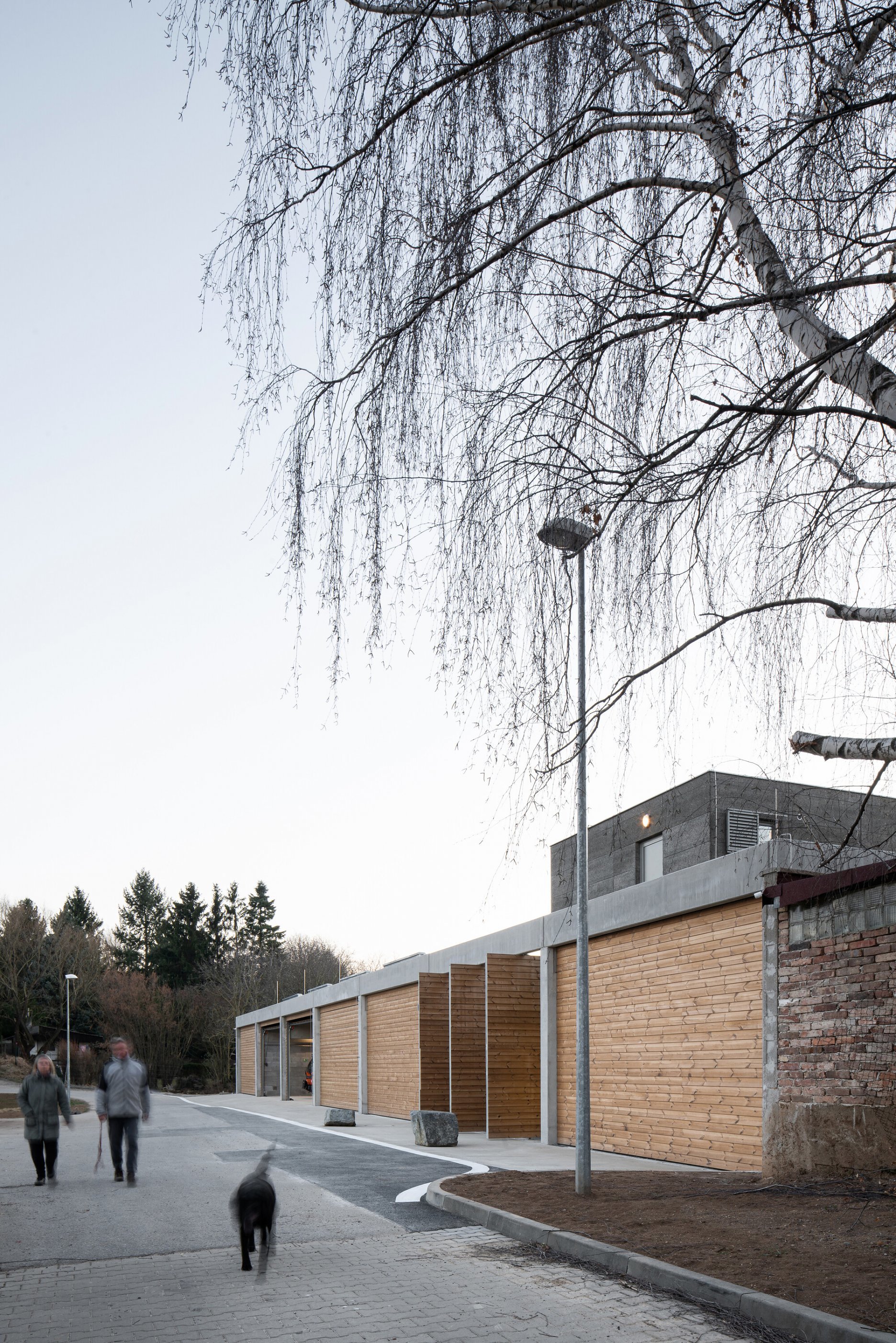 Spomínané východiská v našich končinách často vedú k "nearchitektúre", ktorá v konečnom dôsledku nespĺňa ani jedno z kritérií. Príklad z pražskej štvrte Lysolaje ukazuje protipól. Výsledok, za ktorým stojí tvorivá práca kolektívu PROGRES architekti: "Myslíme si, že je správné stavbu pojmout moderně, pravdivě, jednoduše, ale přitom pokorně k okolí. Proto pracujeme s přiznanou betonovu konstrukcí, která odpovídá charakteru průmyslové stavby (dílny, garáže) v kombinaci s přírodními materiály jako jsou dřevo (velkoformátové výklopné panely garážových vrat), sklo, ocel, zelená střecha."