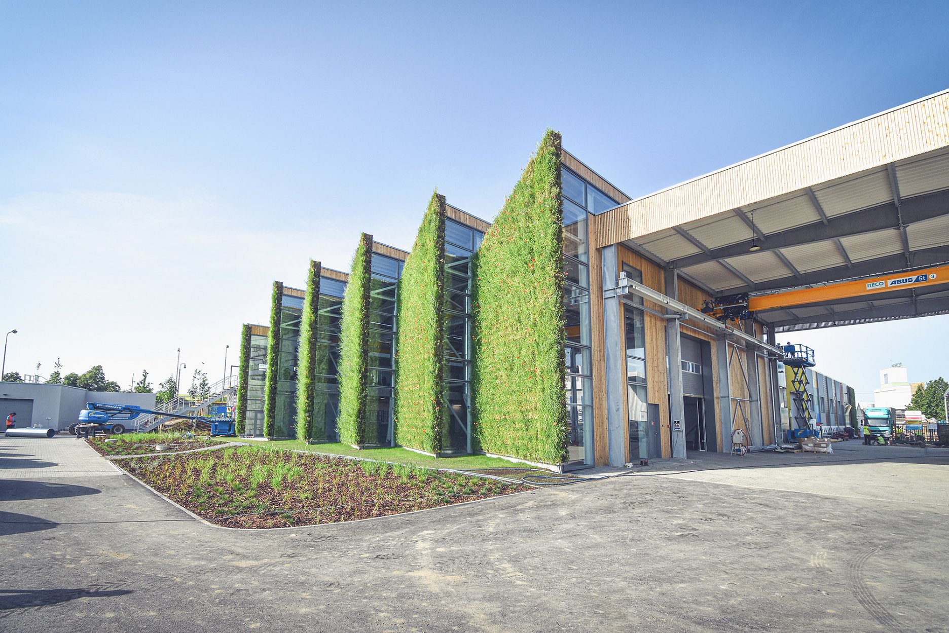 "Zelená" hala vyrástla v areáli slavkovskej firmy LIKO-S, ktorá sa zaoberá výrobou stavebných konštrukcií. Do jej portfólia spadajú aj systémové riešenia vegetačných striech a fasád.