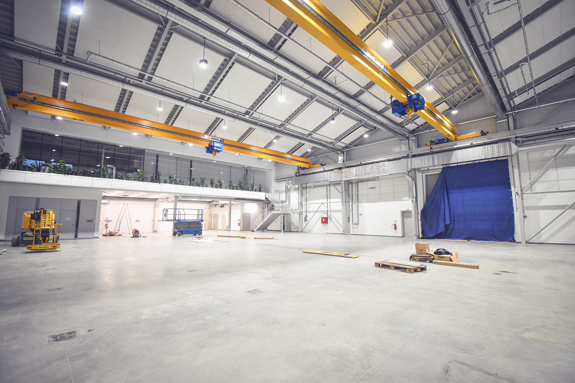 Rovnako, ako staršie kancelárie, tak aj nová priemyselná hala je výkladnou skriňou "ekologických systémov", ktorých výrobou sa firma zaoberá.