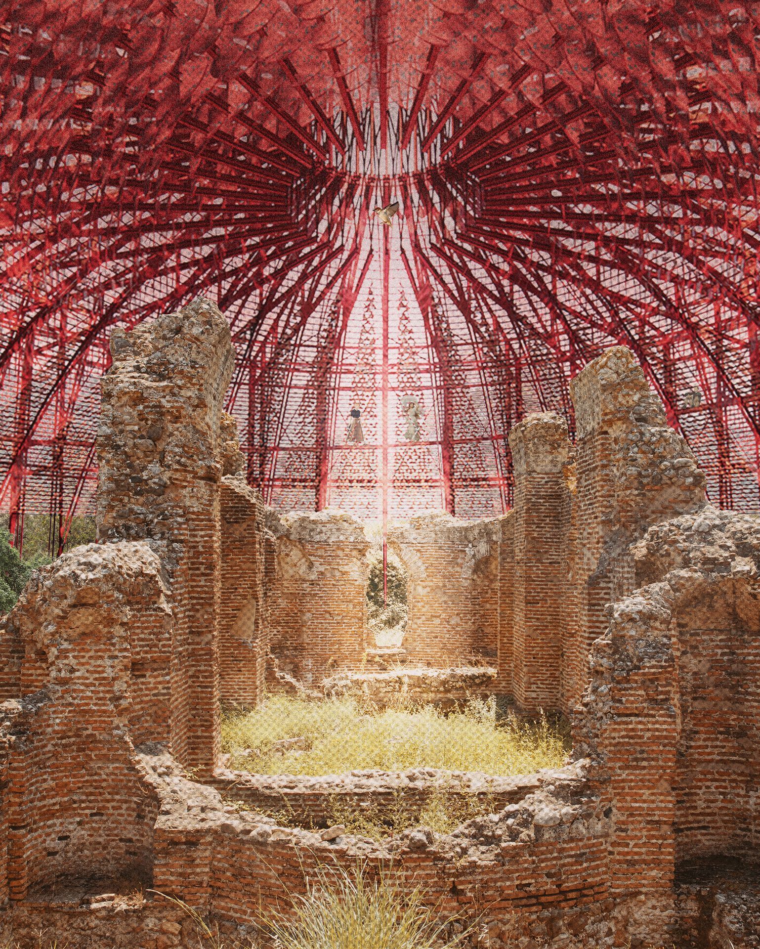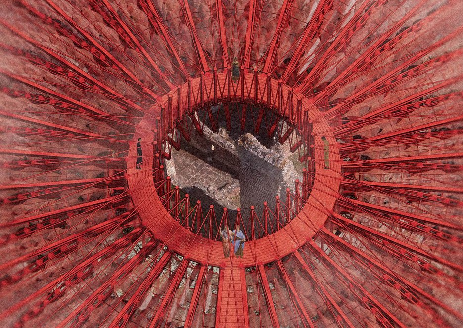 Ruiny sú viditeľné zo všetkých strán (vrátane vtáčej perspektívy) vďaka sústave rámp, obopínajúcich celú stavbu. Cesta začína na severnom okraji archeologického náleziska - v mieste pôvodného vchodu. Návštevníci majú panoramatický výhľad na kúpele a ich okolie, ktoré sa nustále mení vďaka konceptu špirály, končiacej v podobe oculu.