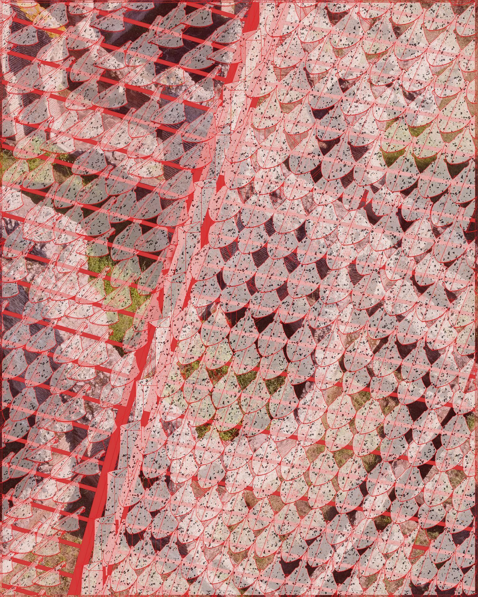 Vizuálno-akustická hra vzniká prostredníctvom geometrie, vpletenej do systému subtílnych káblov. Tie obsahujú rady precízne umiestnených prvkov (inšpirovaných dobovými motívmi dlaždíc z neďalekých rímskych kúpeľov) s drobnými prírezmi na hornom konci každého elementu. Navzájom sa prekrývajú a podľa prevládajúcich prúdov vzduchu regulujú denné svetlo. Spomínaná súhra vánku a dažďa zároveň vytvára zvukový efekt, podobný šumeniu horúcej vody v kúpeľných bazénoch.