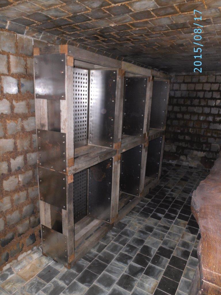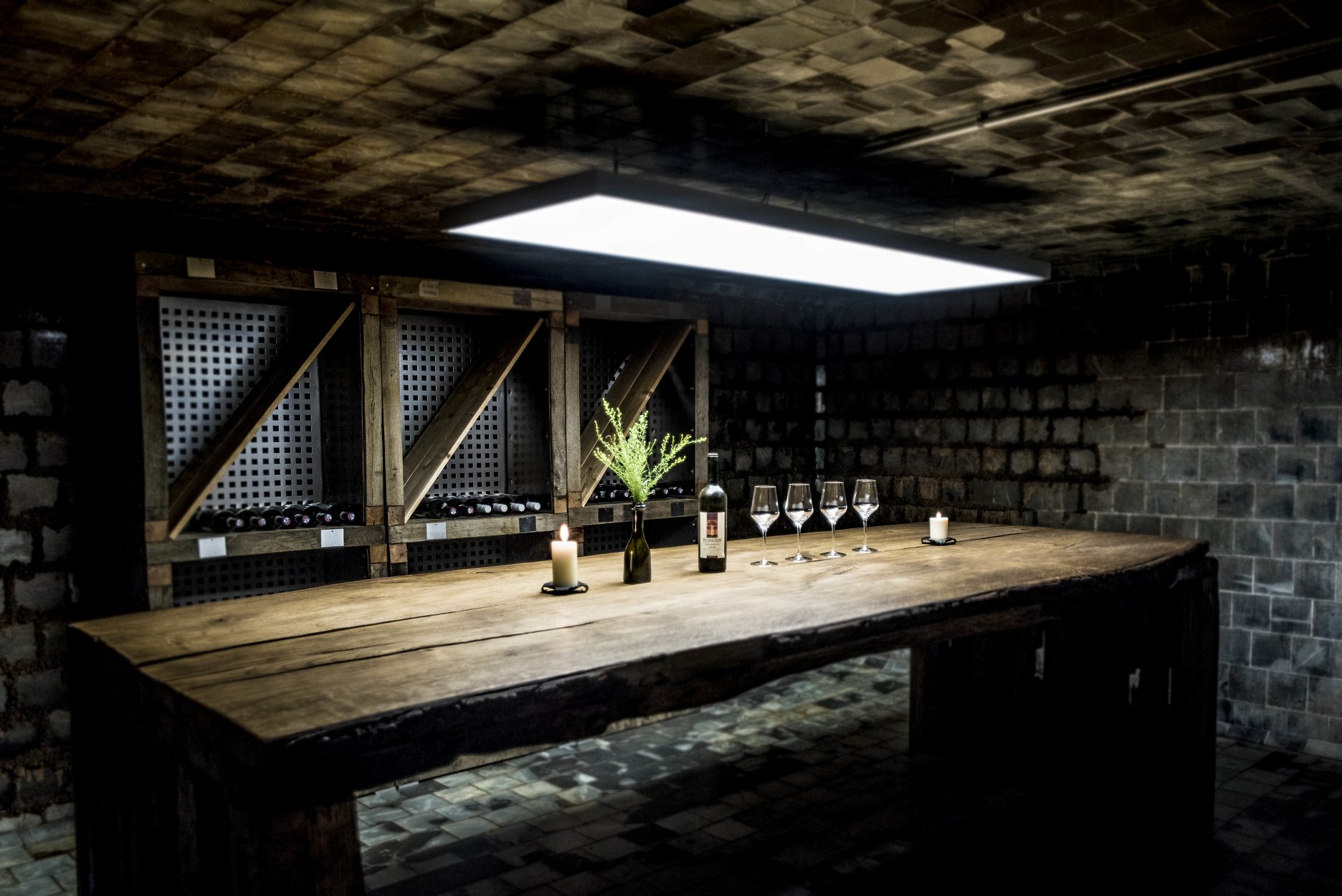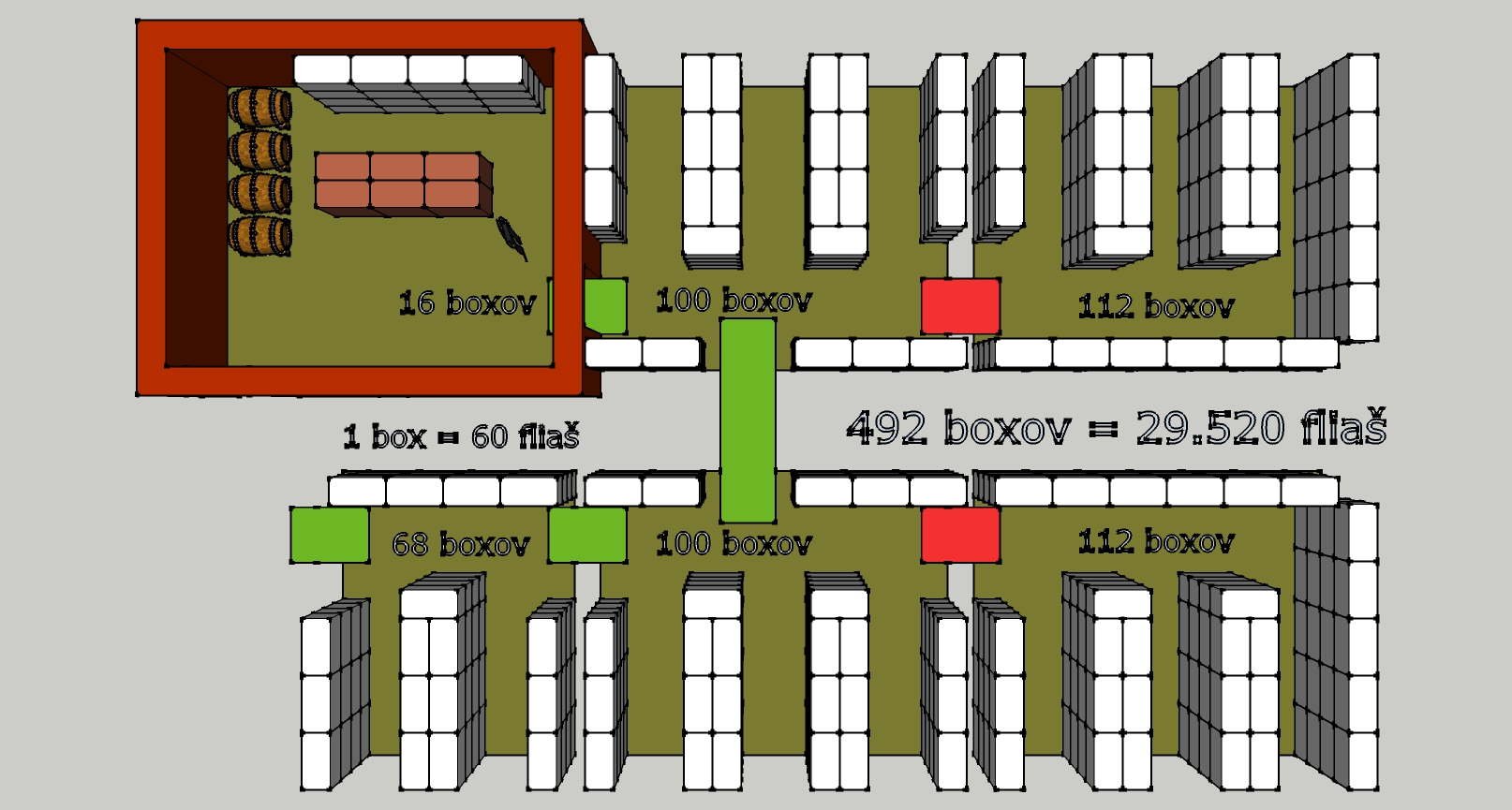 Zadaním a ideou bolo využiť priestor nádrží, ktoré už dlhší čas neslúžili pôvodnému účelu a na jednotlivé prvky mobiliáru použiť / recyklovať existujúce (odpadové) materiály. Regály / archívne boxy na fľaše boli navrhnuté tak, aby ich bolo možné zhotoviť vo vlastných dielňach. Ako materiál poslúžili staré agátové koly z vinohradu a zvyšky nerezových plátov. Výsledkom je ekologické a ekonomické riešenie. "Zákazka bola pre 'vlastných ľudí' výzvou, príjemnou zmenou a možnosťou podieľať sa na výslednom diele. Bol to vlastne teambuilding takouto tvorivou formou," dopĺňajú autori.