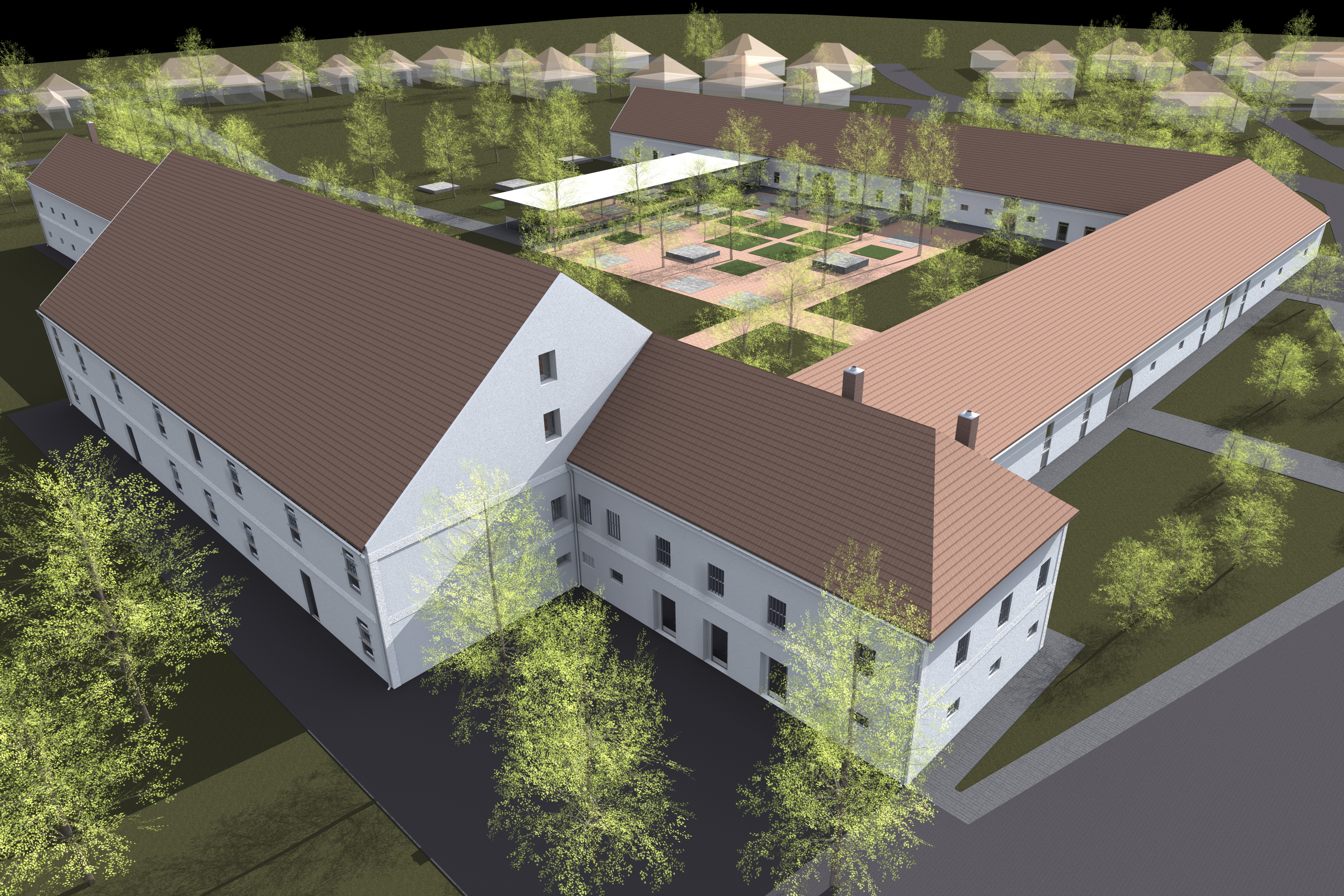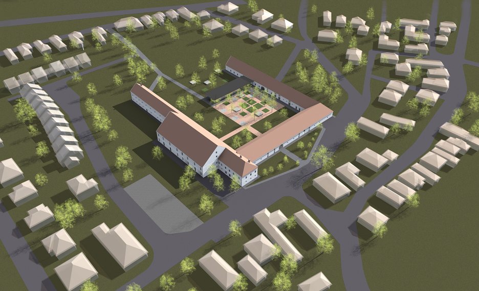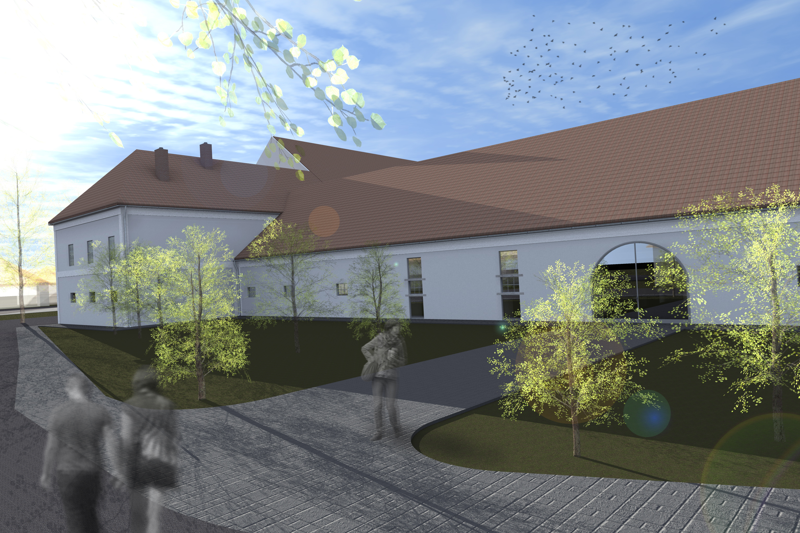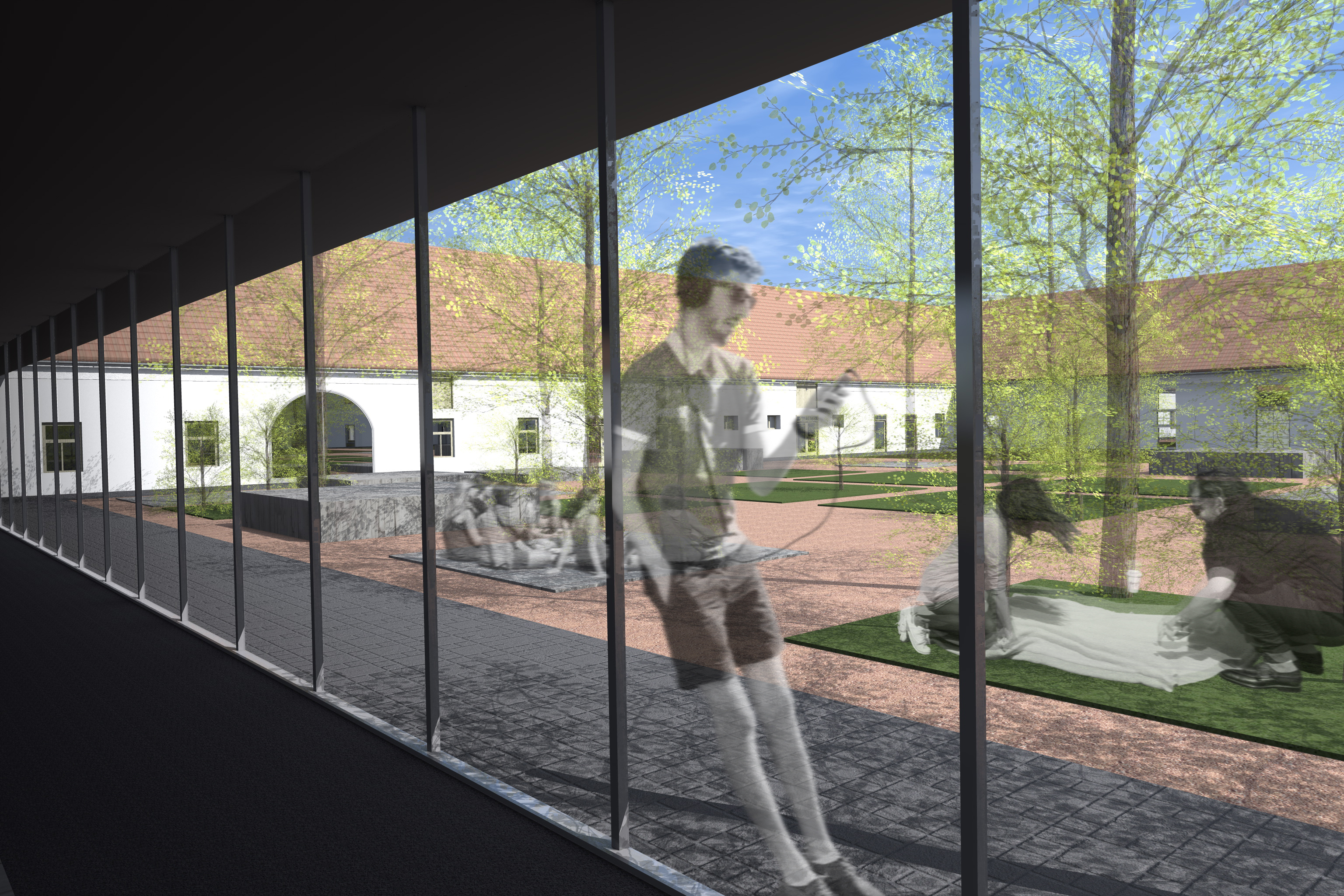 Celá fasáda pamiatky bude farebne kopírovať svoj pôvodný stav – biela omietka a červená keramická krytina. Pôvodne otvorené prechody cez južné a západné krídlo budú celoplošne zatvorené sklenenou bránou, pretož tento novovytvorený uzatvorený priestor tvorí súčasne aj zádverie jednotlivých navrchovaných prevádzok v priľahlých krídlach.