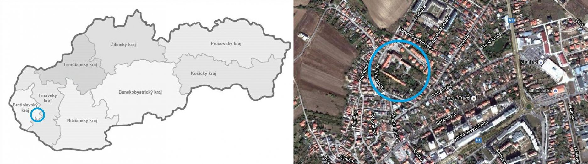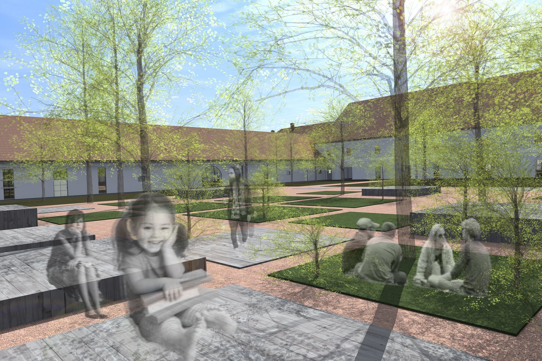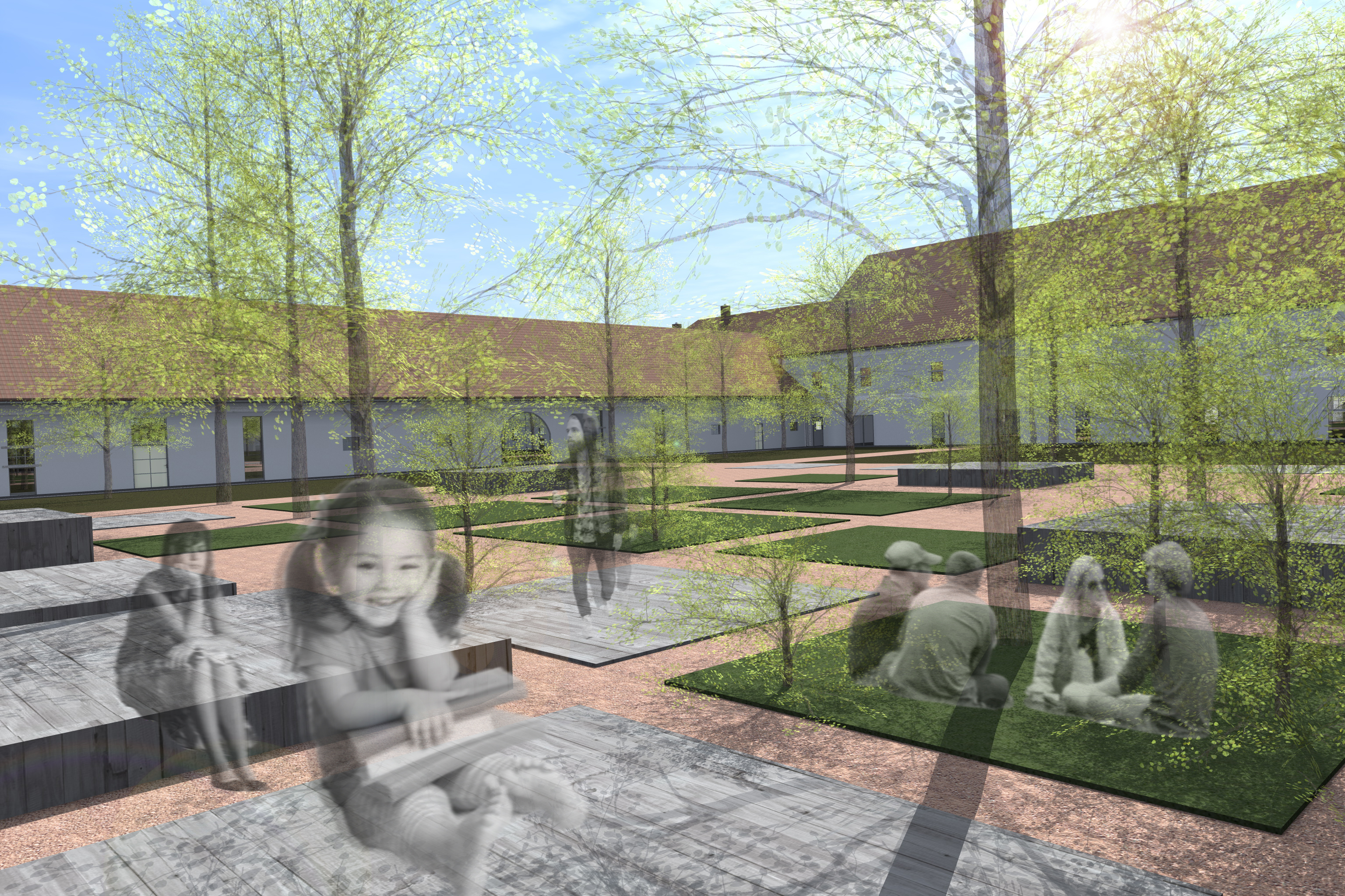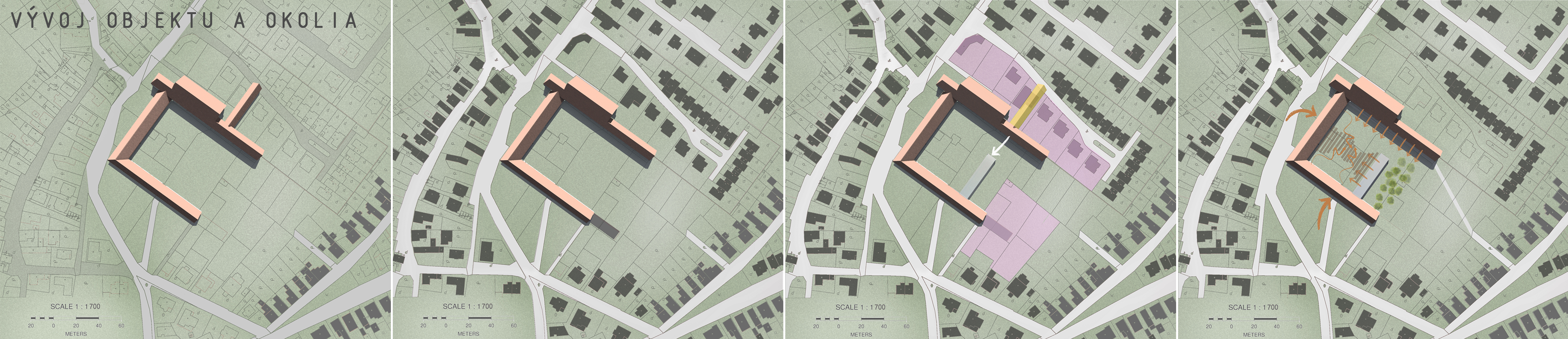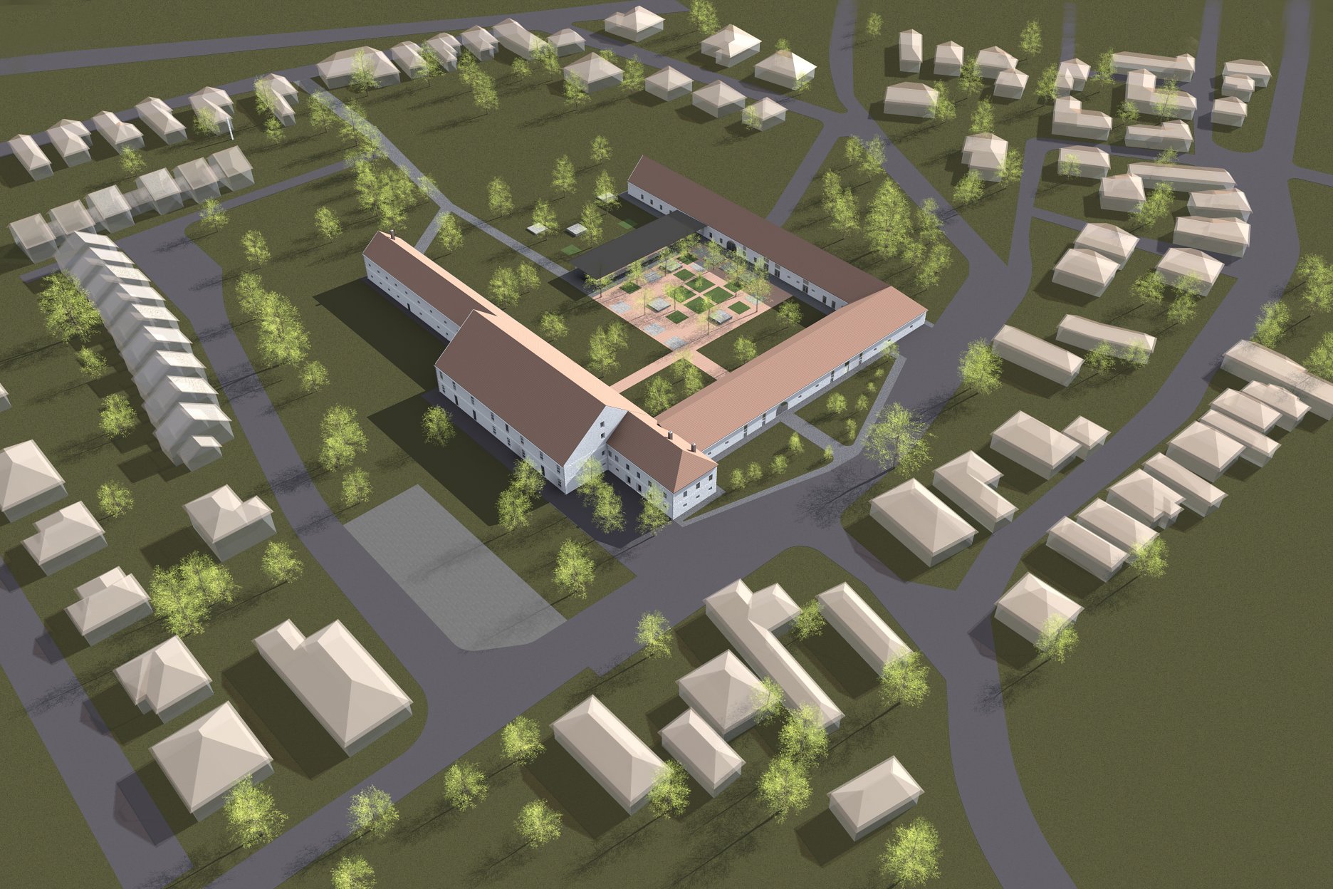 Stavebný komplex budov kúrie s novým funkčným využitím je sústredený okolo trojkrídlového hospodárskeho dvora, takže k uchovaniu logiky tohoto komplexu je obnova navrhovaná tak, aby i naďalej tvoril jeden celok. Existujúce vstupy do nádvoria cez južné a západné krídlo sa napájajú na okolité komunikácie, no sú navrhnuté ako pešie ťahy. Pojazdná komunikácia sa nachádza na severnej strane objektu a napája sa na existujúcu cestu, ktorá vedie do centra mesta.