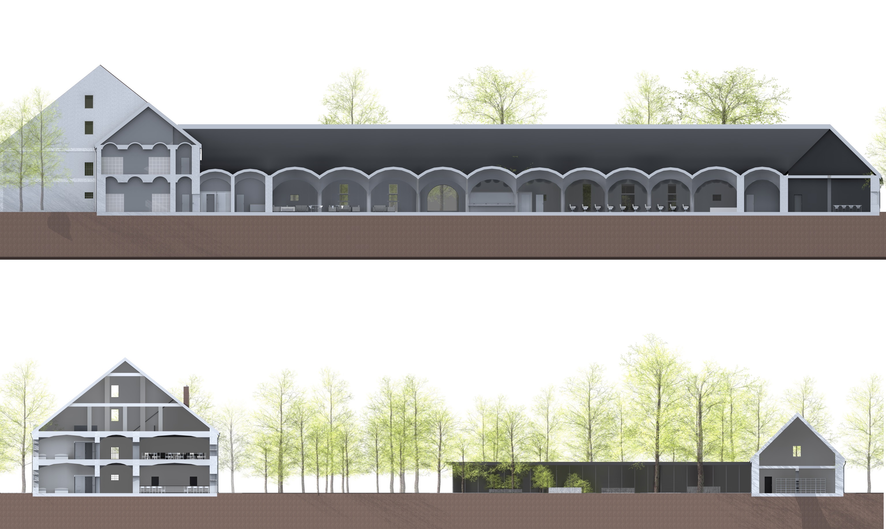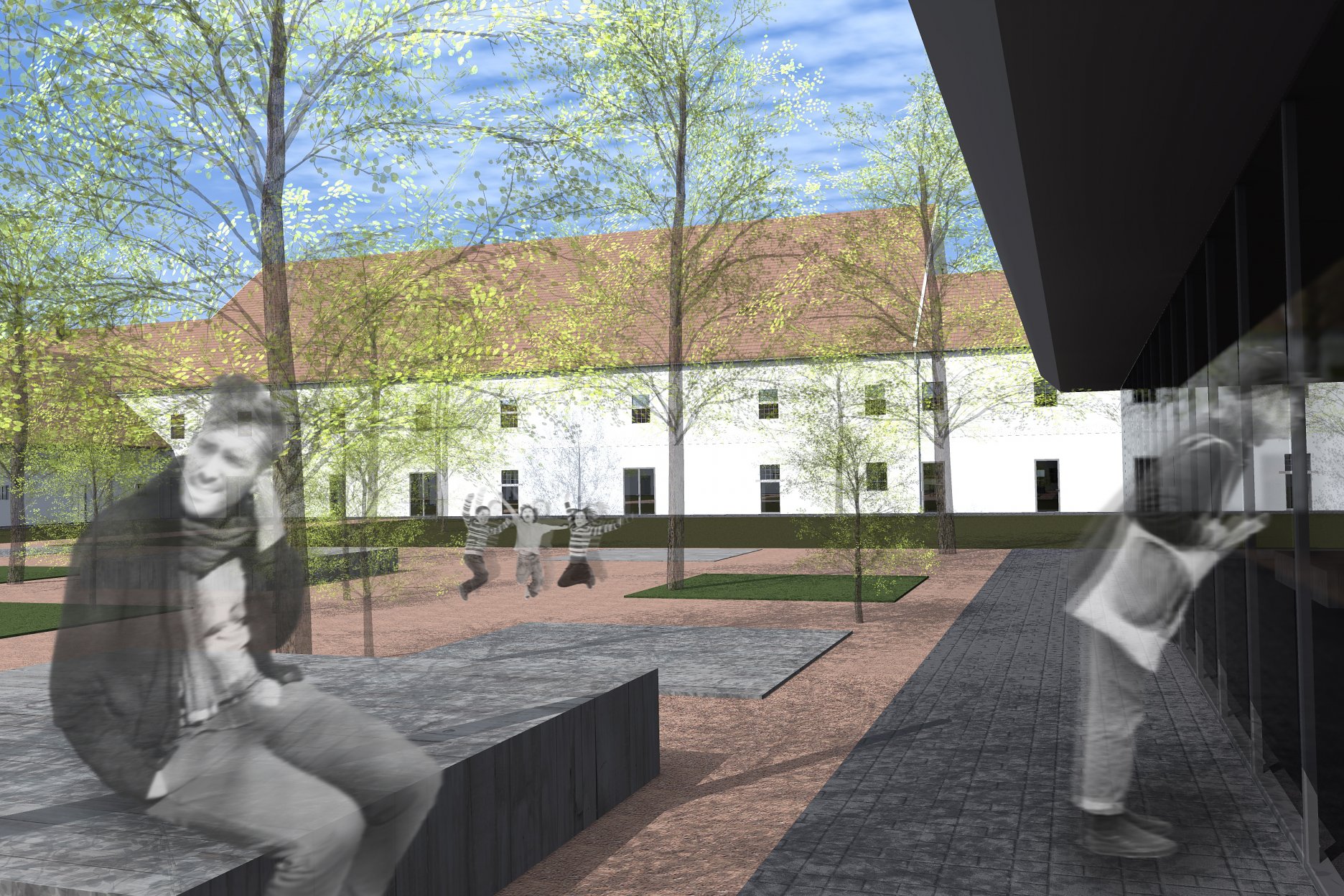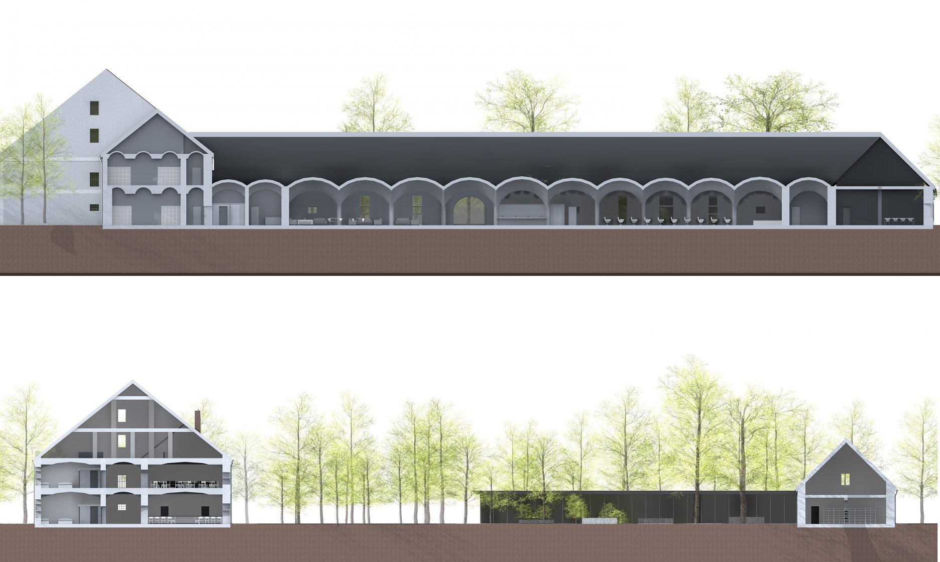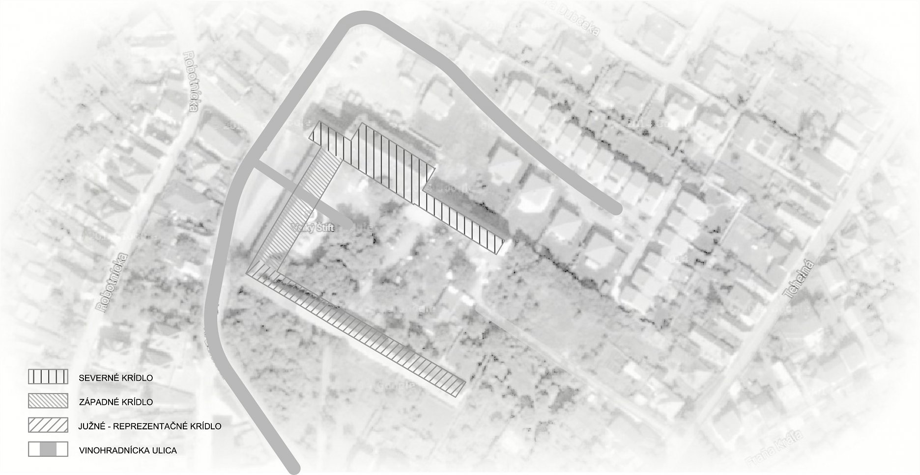 Pôvodné funkčné využitie (ako jazdecká škola) bude nahradené funkciou ústrednej knižnice SAV, kde sa budú nachádzať knižničné fondy spoločensko-vedných odborov. Okrem toho sa v komplexe bude nachádzať krátkodobé ubytovanie pre návštevníkov archívu, ktoré bude umiestnené v terajšej hospodárskej časti – v severnom krídle. Je to jediné dvojpodlažné krídlo, ubytovanie sa bude nacházdať na oboch podlažiach. Navrhovaná kapacita lôžok teda umožňnuje v obejkte organizovať okrem pracovných a študijných ciet aj iné spoločenské udalosti. Samotný archív a knižničné priestory budú orientované v južnom krídle. V priestoroch bývalej koniarne v západnom krídle je navrchovaná veľká prednášková sála, ktorá vďaka svojej čistej dispozícii dovoľuje variabilnosť jej alternatívneho využitia. V severo-západnom vysunutom krídle sa budú nachádzať kancelárie a zázemie pre personál. K západnému krídlu je pristavaný novotvar, ktorý bude využívaný ako čítareň a detská knižnica a zároven svojou polohou z časti uzatvára vnútorné nádvorie, na ktorom budú prebiehať exteriérové letné aktivity /letné čítarne a pod./. V návrhu nádvoria, ako verejného priestoru, je príznačné, že vytvára priestor pre ľudí, kde sa bude dať čítať, relaxovať, stretávať a tráviť voľný čas mimo mestského ruchu. Aj preto je zachované maximálne množstvo existujúcej zelene a nové zásahy ju rešpektujú v maximálnej miere.