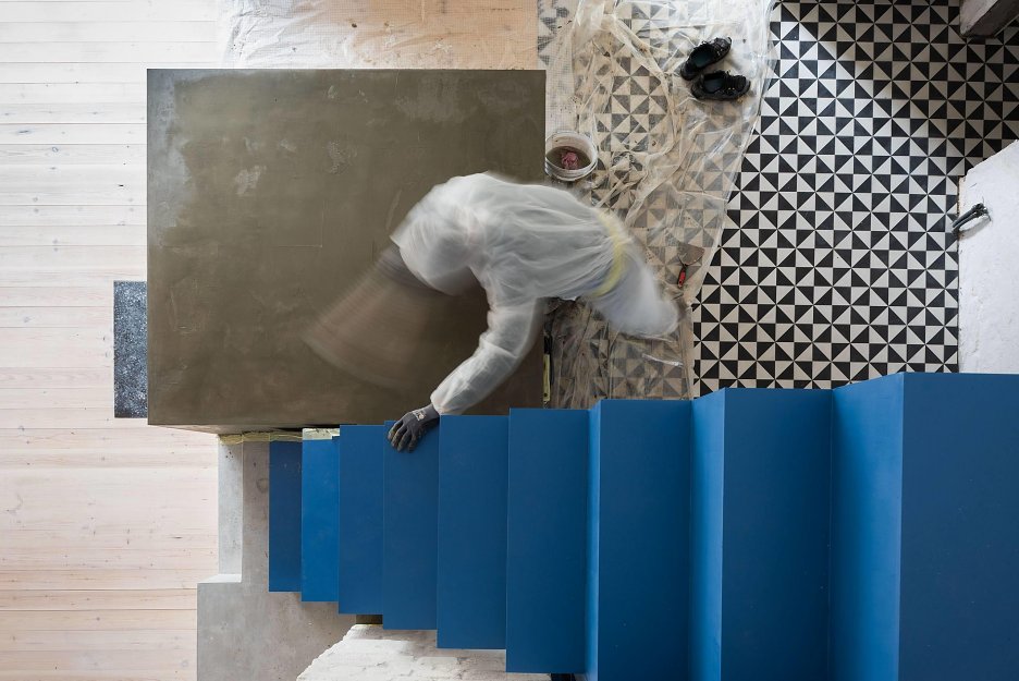 Pamätám si deň, keď mi v notebooku ukázala prvý vizuál priestoru, ktorému dominovali modré samonosné schody. Bol to šok, ale okamžite som sa do tej predstavy zamiloval. Videl som ten veľký stôl, za ktorým môže sedieť štáb a robiť si poznámky do scenárov, videl som terasu, kde sa dalo sedieť so scenáristom, miesta na spanie minimálne pre desať ľudí a zrazu to ožilo. Všetko pod modrými schodmi, ktoré som zo žartu nazval alkoholovým detektorom. A som rád, že v jeden deň, keď sa Janka obávala tej modrej a rozmýšľala, že schody by možno mohli byť neutrálnejšie, povedzme čierne, som povedal, že tie modré schody sú dôvod, prečo som sa do tej predstavy zamiloval. A odvtedy nielen ja. Pandémia síce zatiaľ nedovolila organizovať veľké stretnutia, ale už privítala mojich študentov, s ktorými som strávil pár dní výučby v tzv. „škole v prírode“. A tí nesmelo, okrem toho, že boli radi, že sme sa po takom dlhom čase videli naživo, poznamenali: „A chceli sme vám povedať, že to tu máte ozaj pekné a cítili sme sa tu príjemne.“