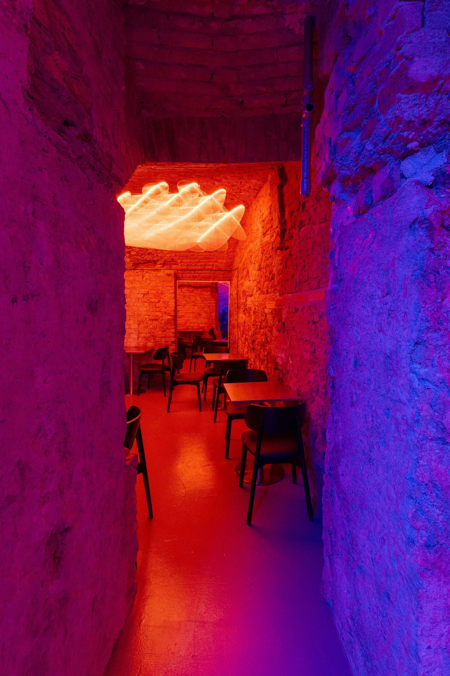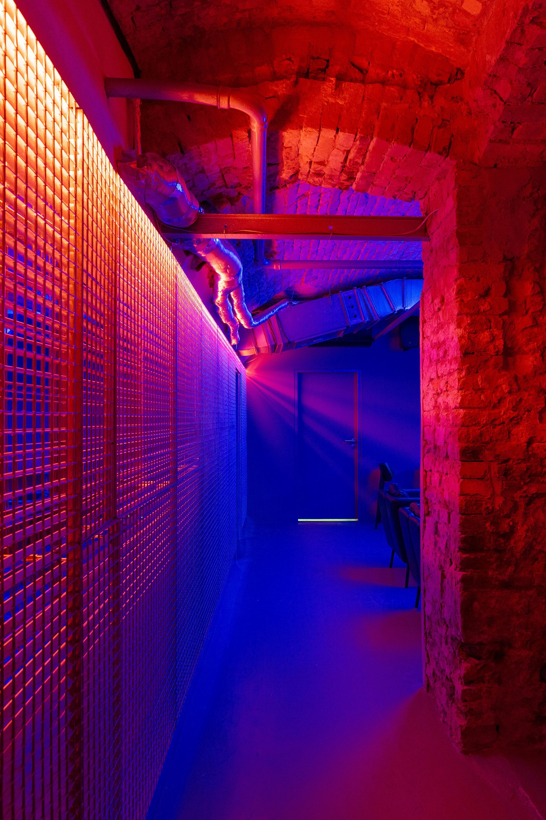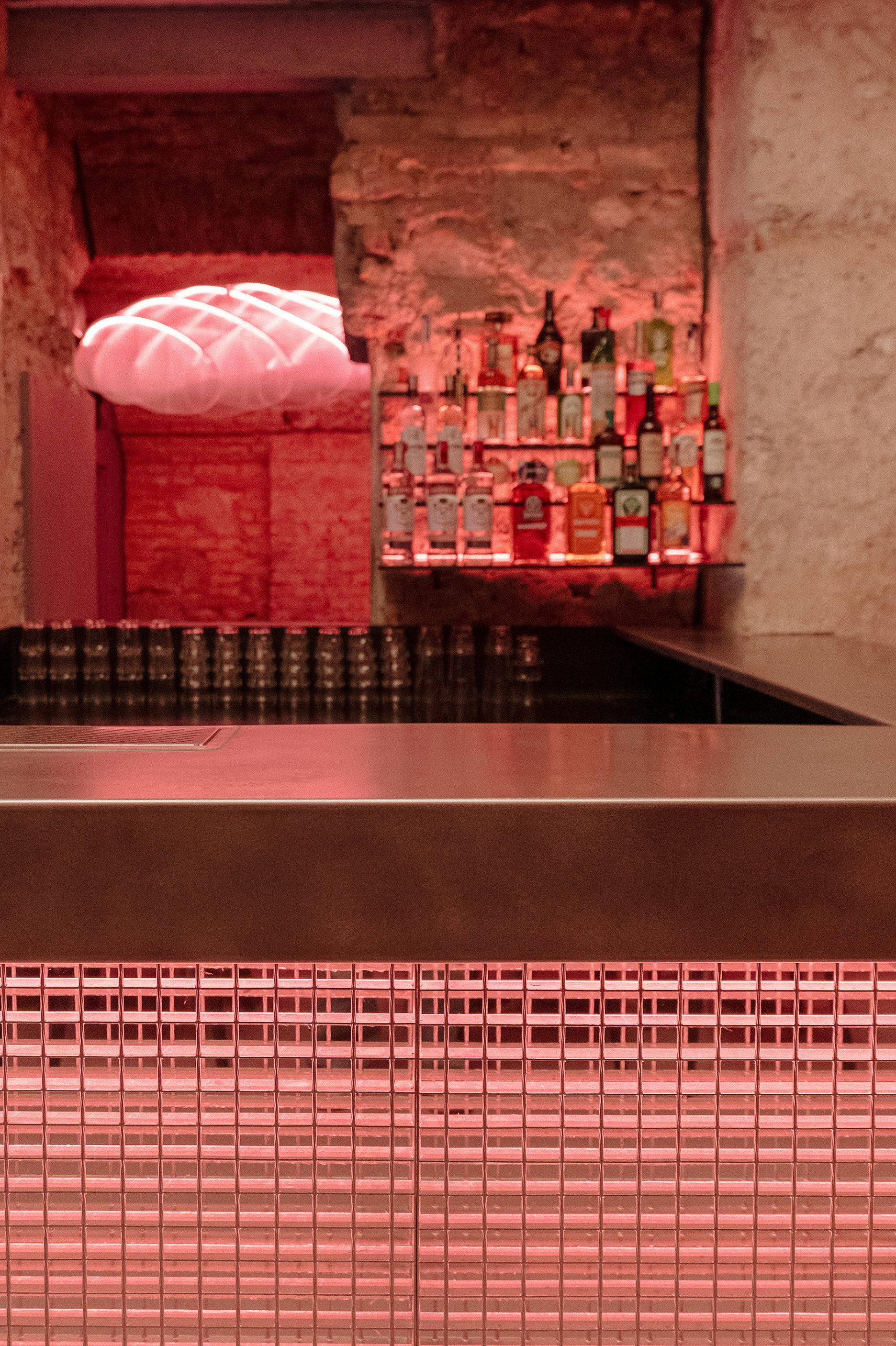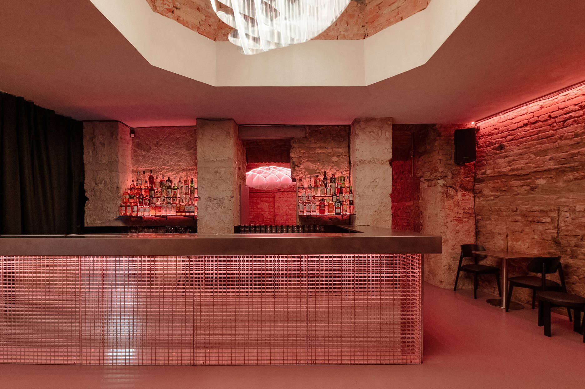 BACKSTAGE BAR z dielne ateliéru NOIZ architekti vznikol adaptáciou desaťročia zanedbaných priestorov práčovne a technického zázemia v podzemí bývalého hotela Krym (1893).