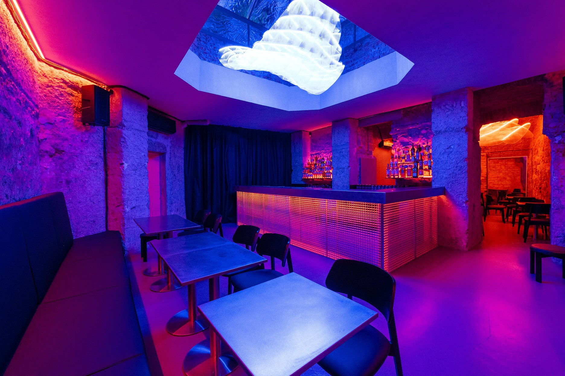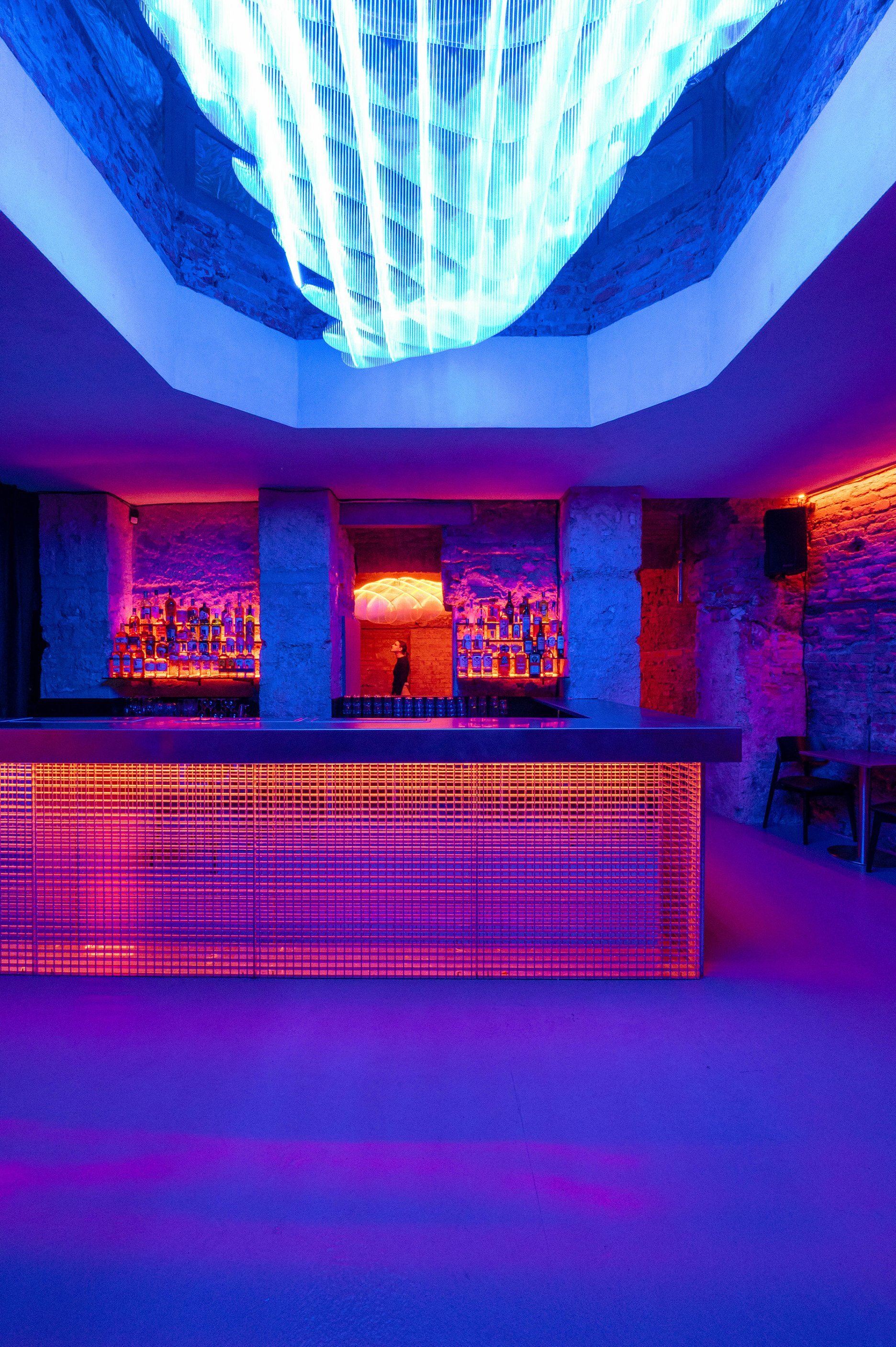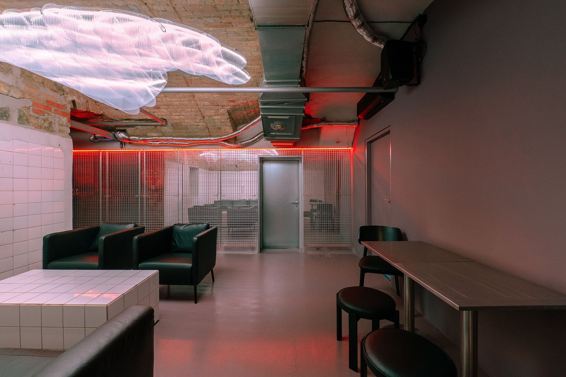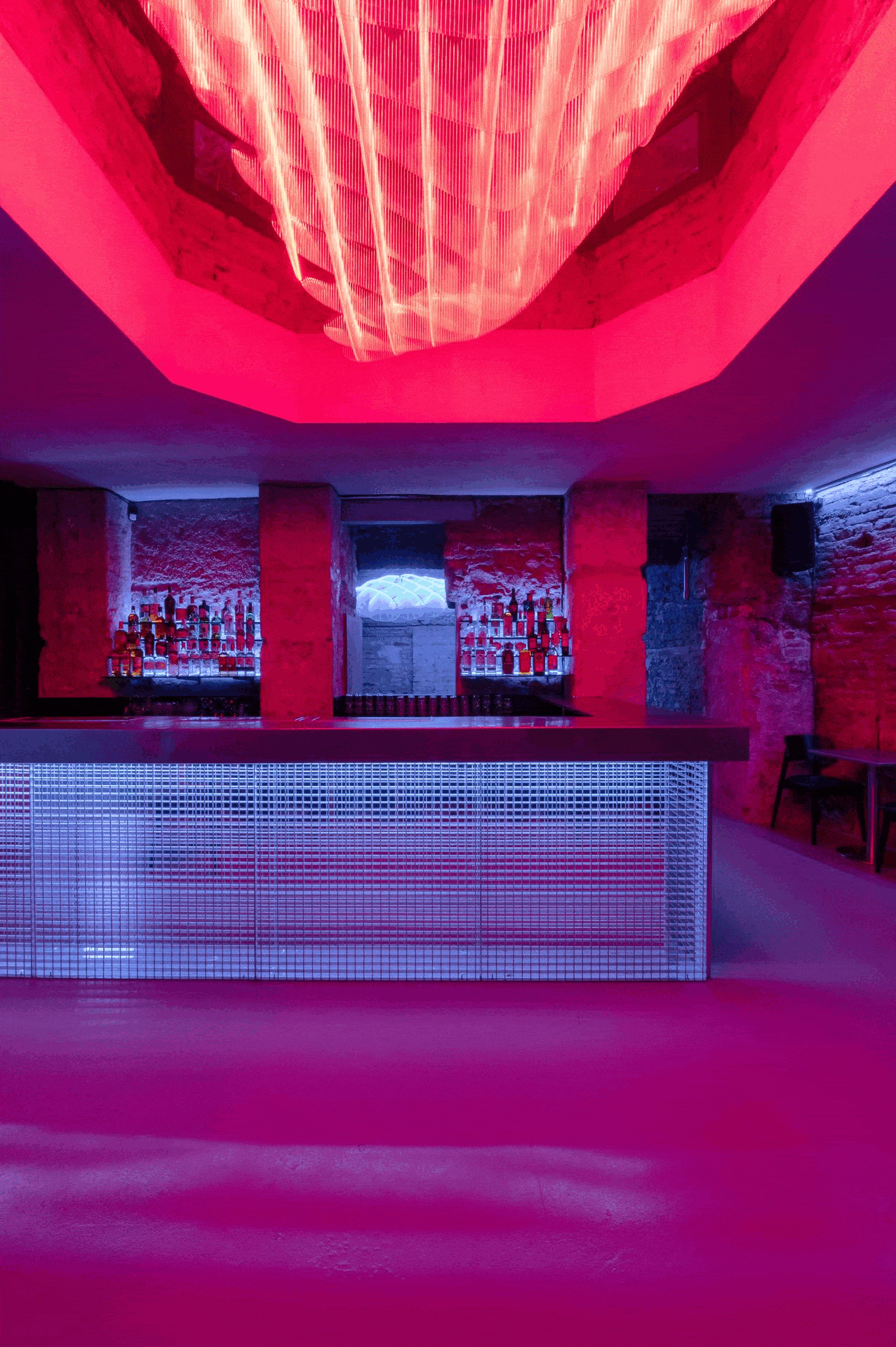 BACKSTAGE BAR z dielne ateliéru NOIZ architekti vznikol adaptáciou desaťročia zanedbaných priestorov práčovne a technického zázemia v podzemí bývalého hotela Krym (1893).